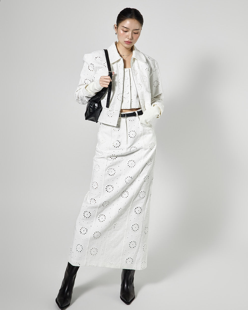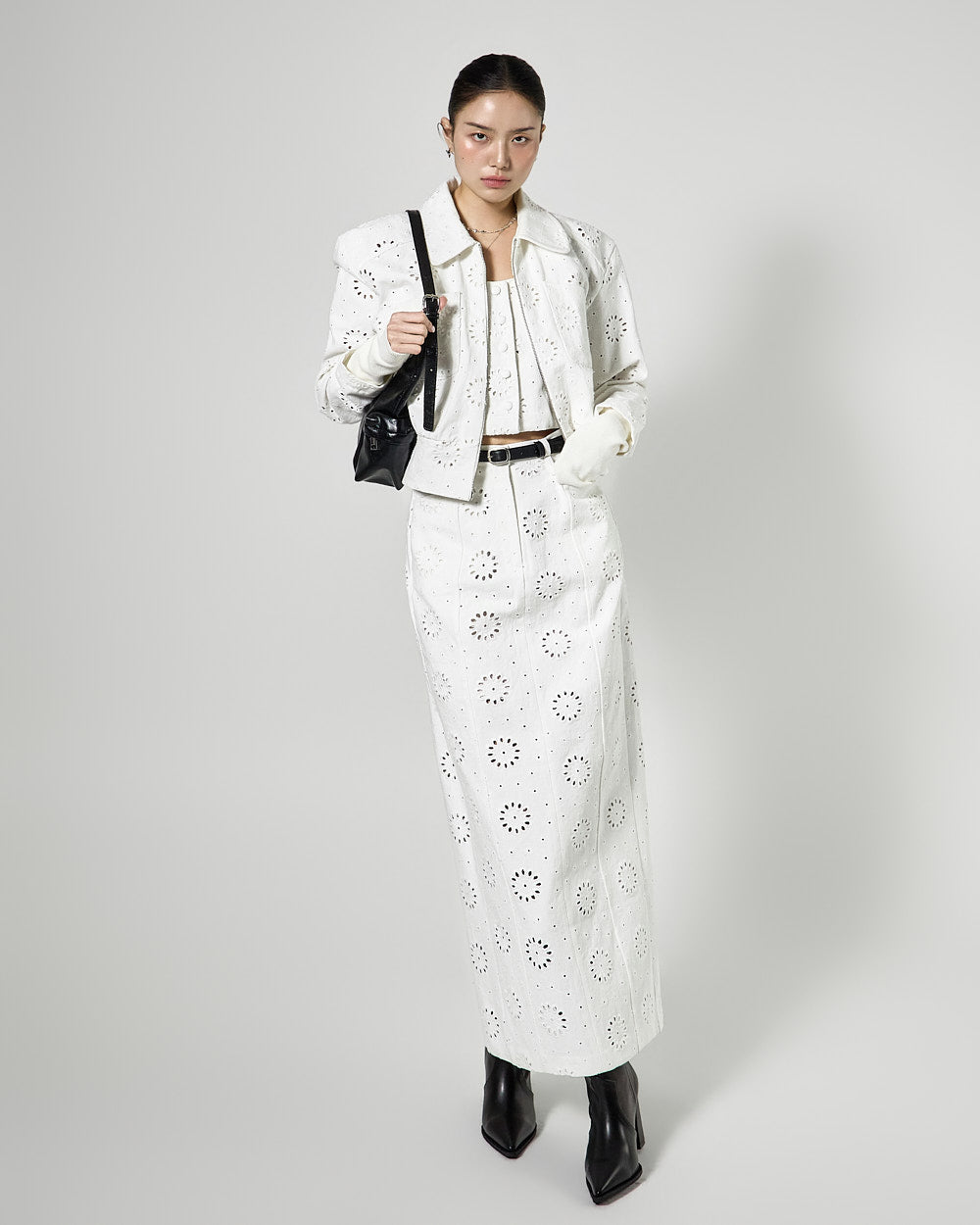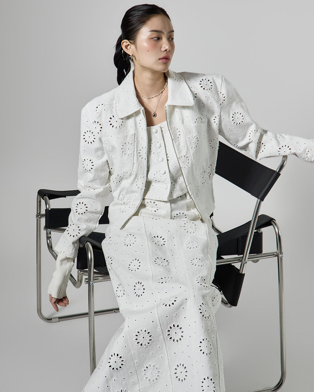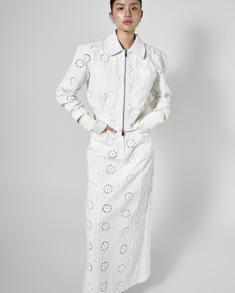 The 171cm model is wearing size ONE in WHITE.
