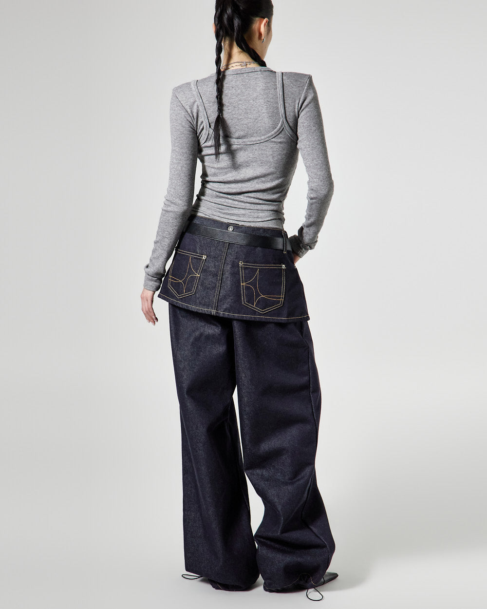 デニム素材の場合、素材の特性上水が抜ける場合がございます。
