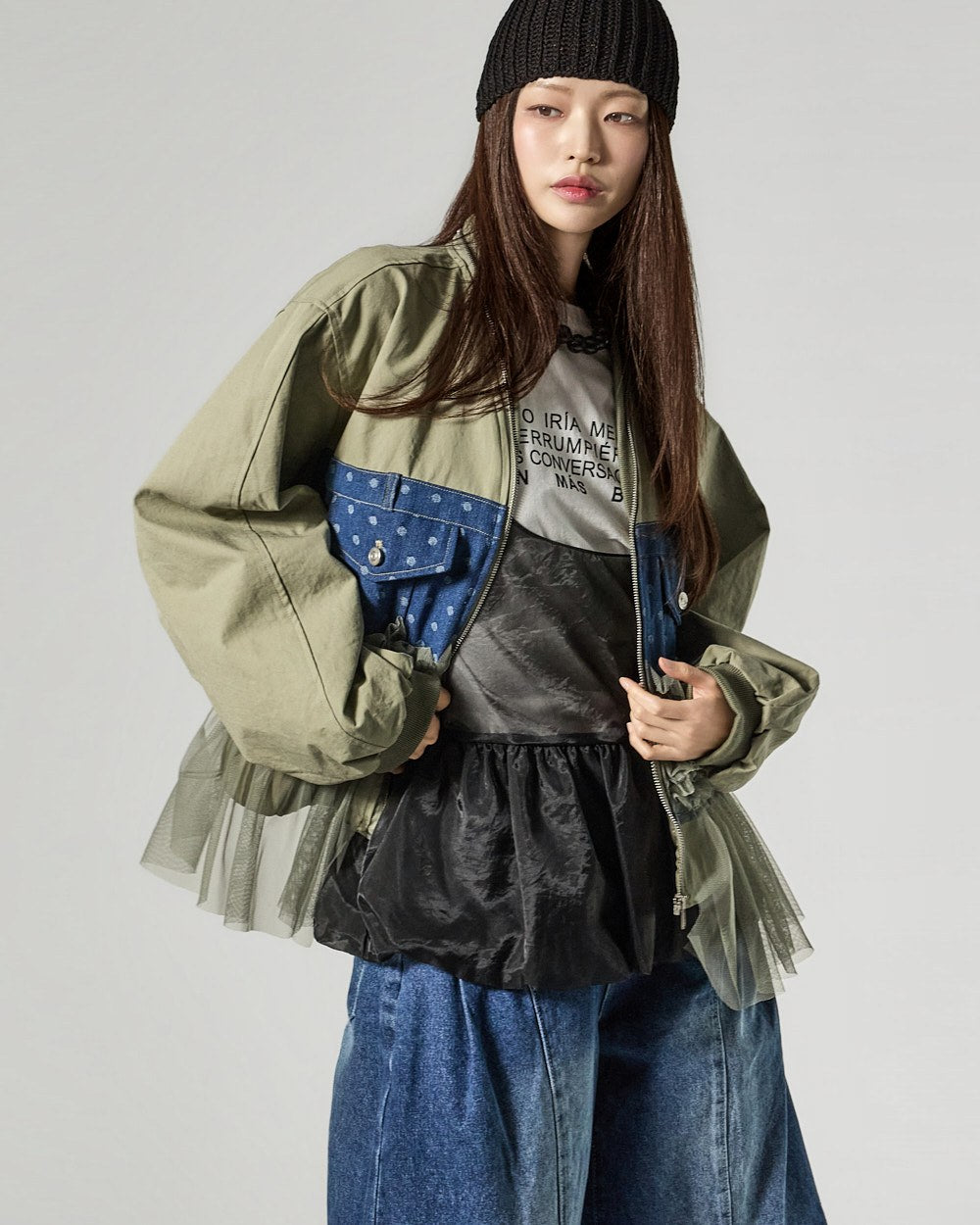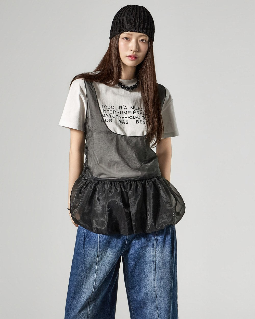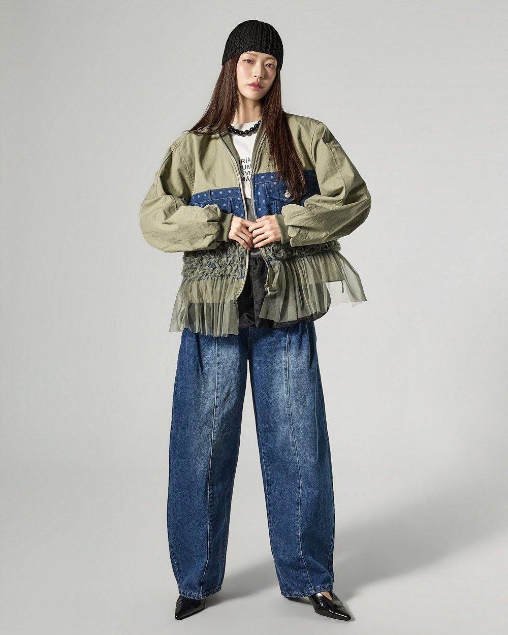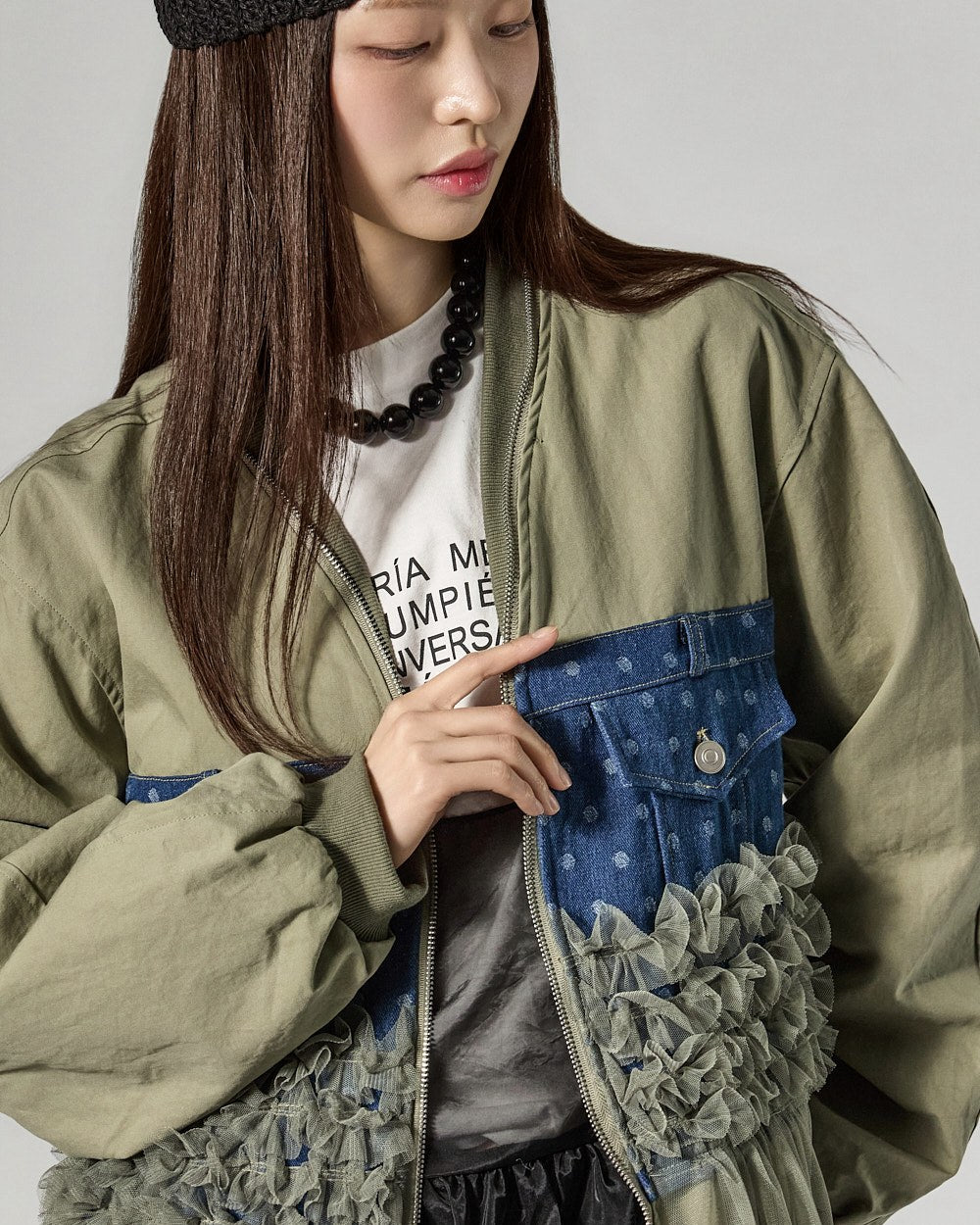 The 171cm model is wearing size ONE in IVORY.