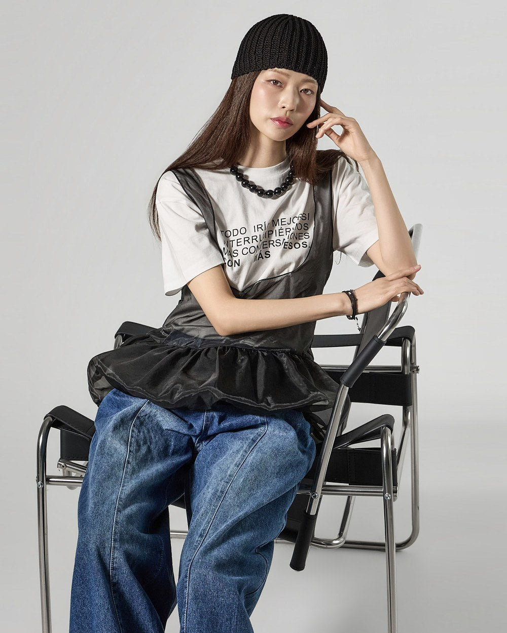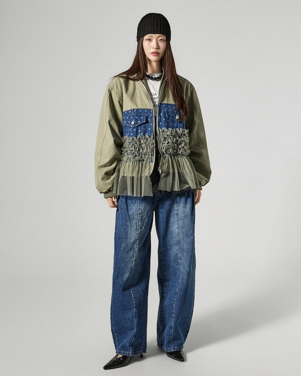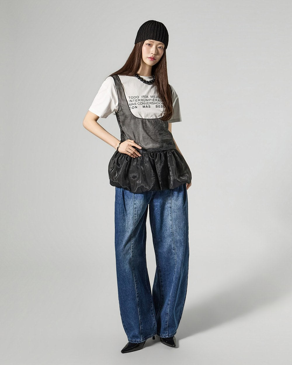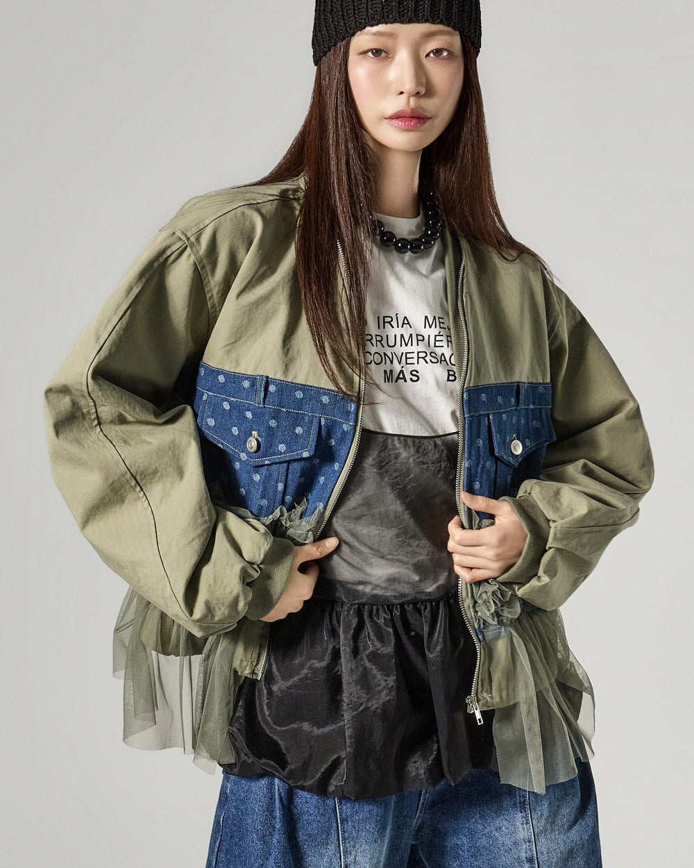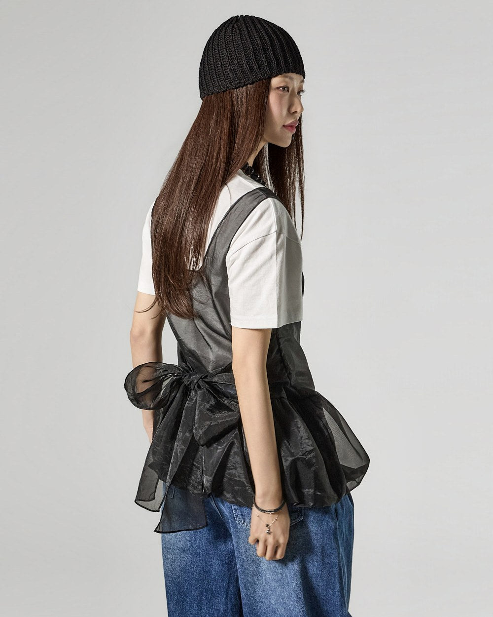 The 171cm model is wearing size ONE in IVORY.