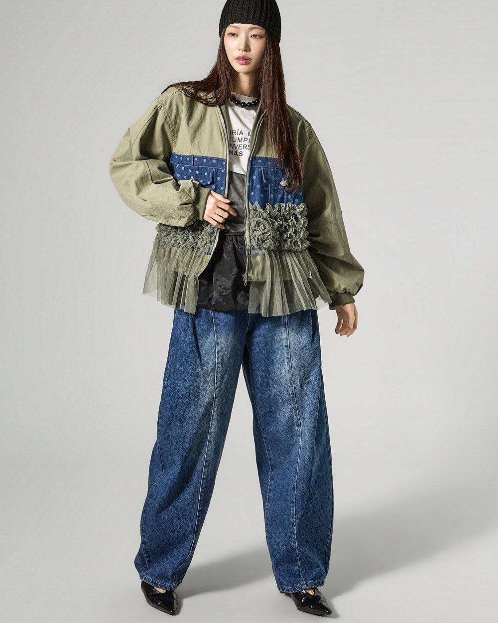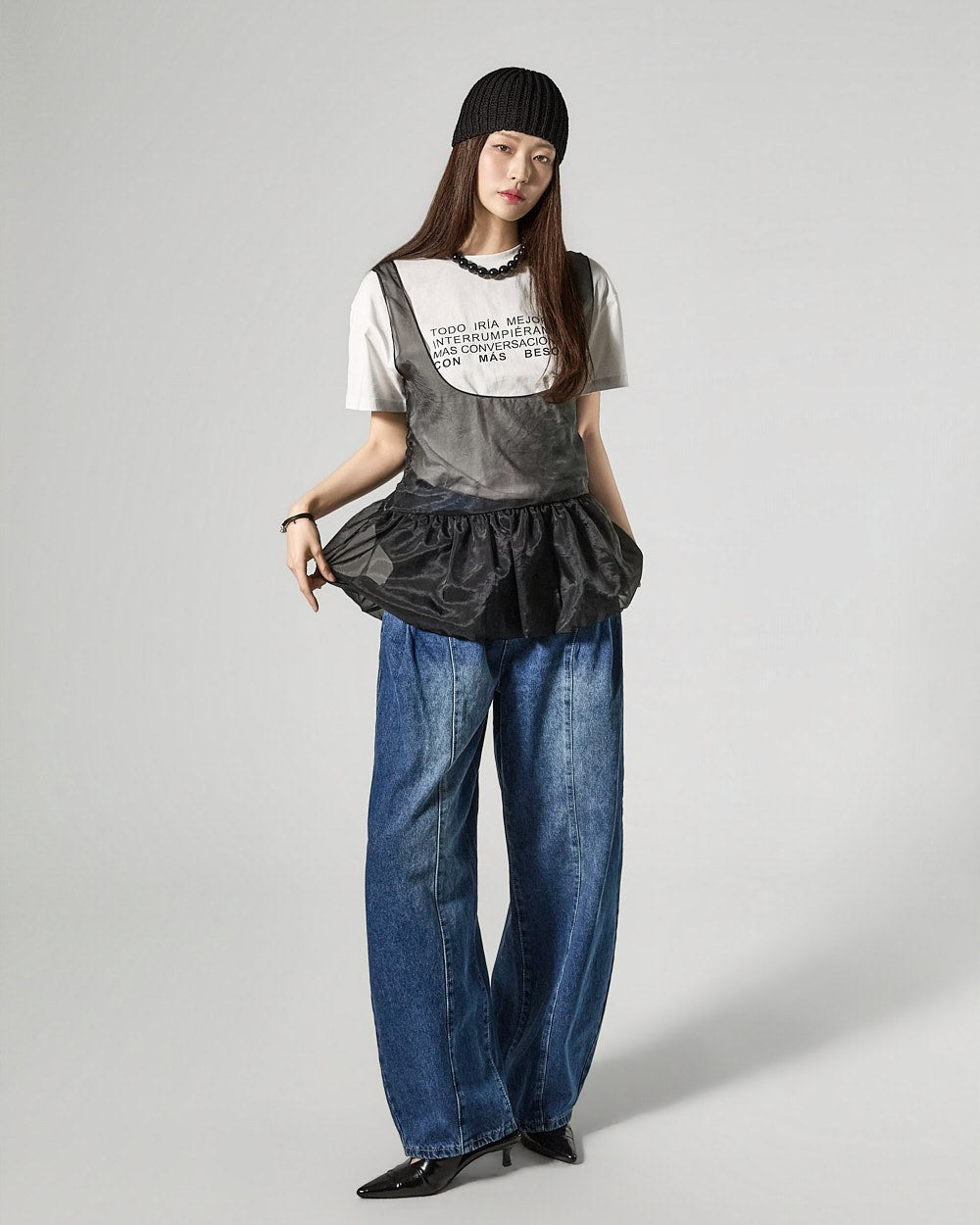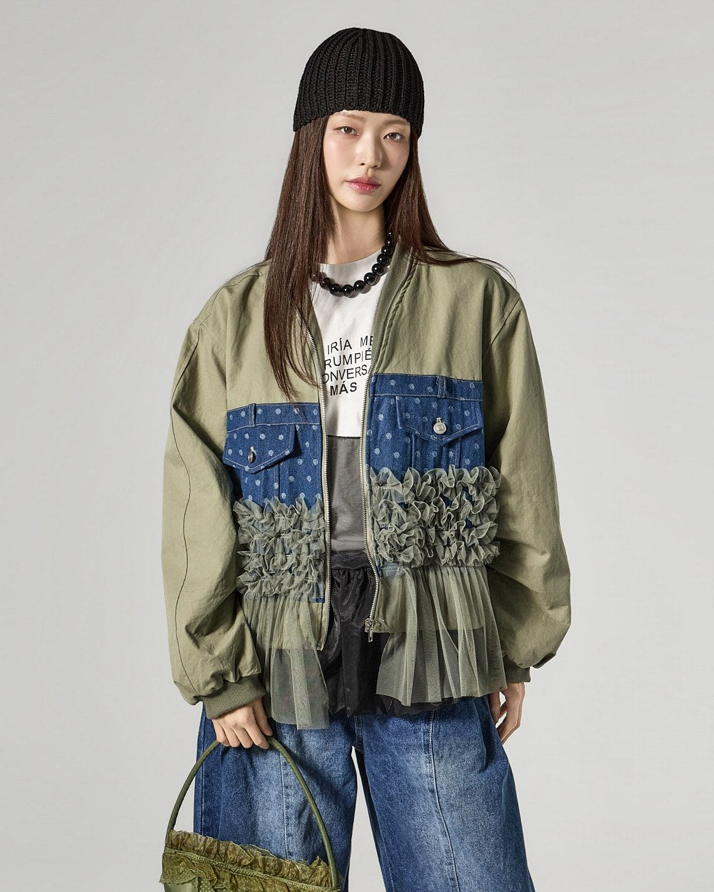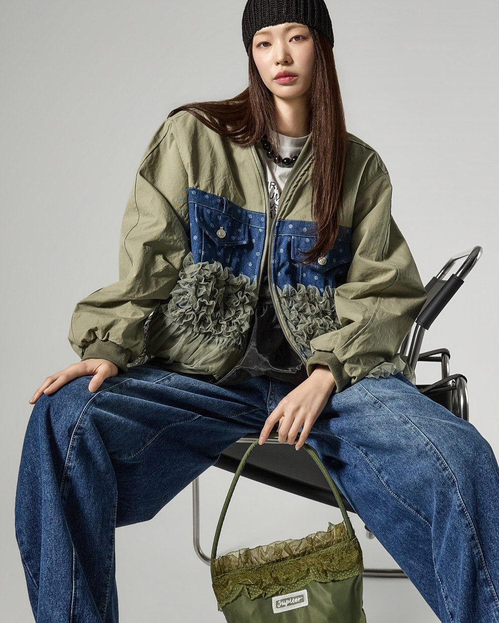 The 171cm model is wearing size ONE in IVORY.