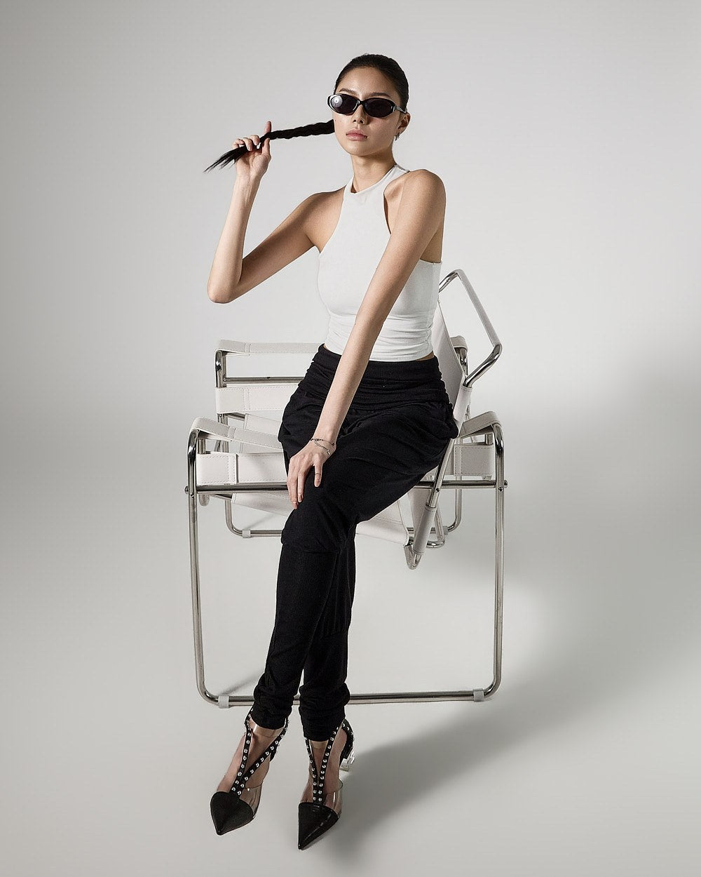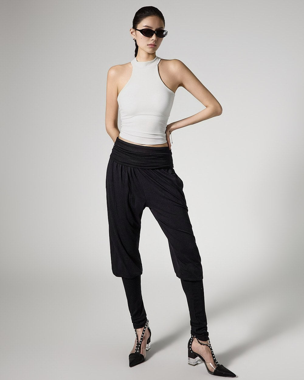 and as a halter-neck cropped sleeveless top,