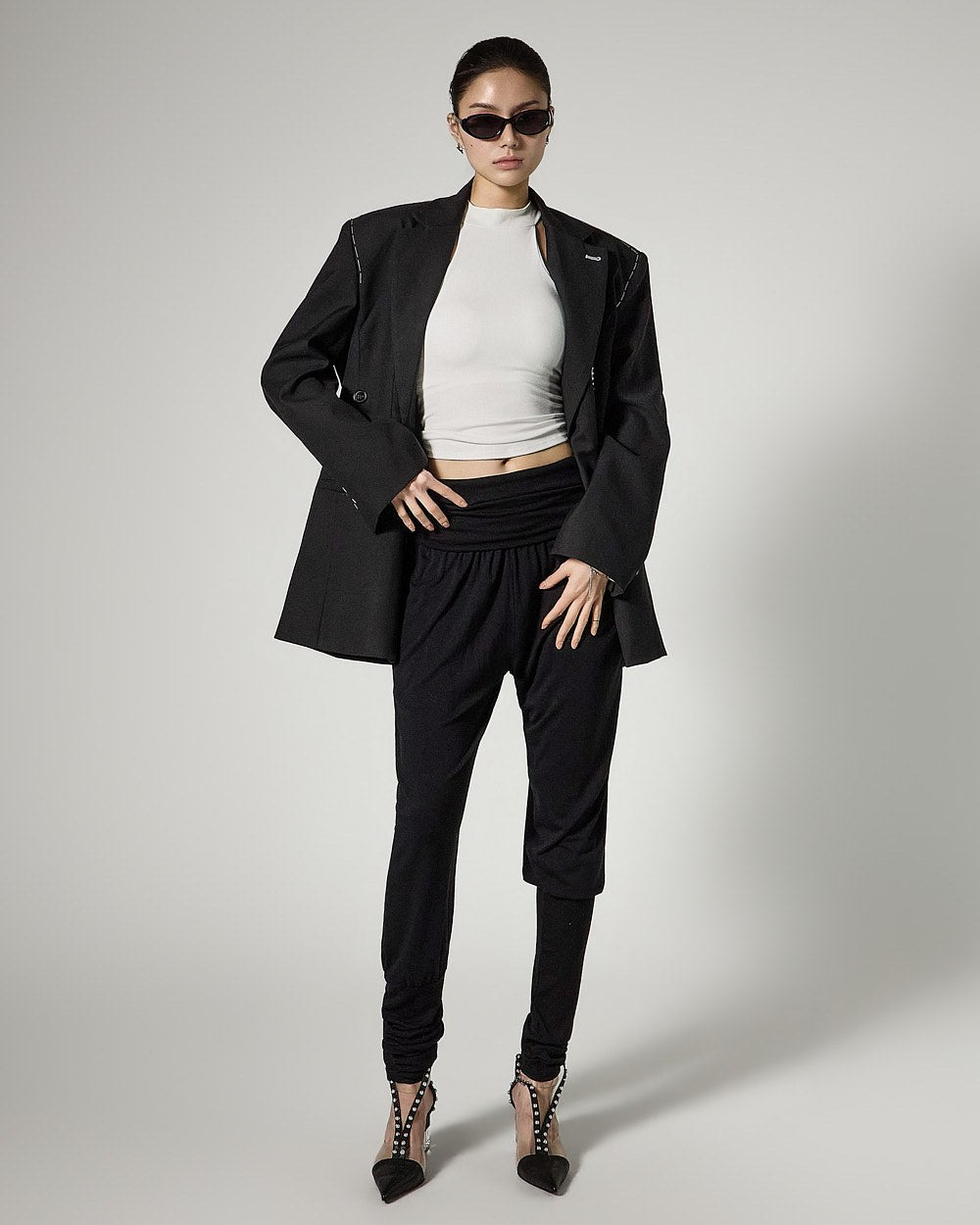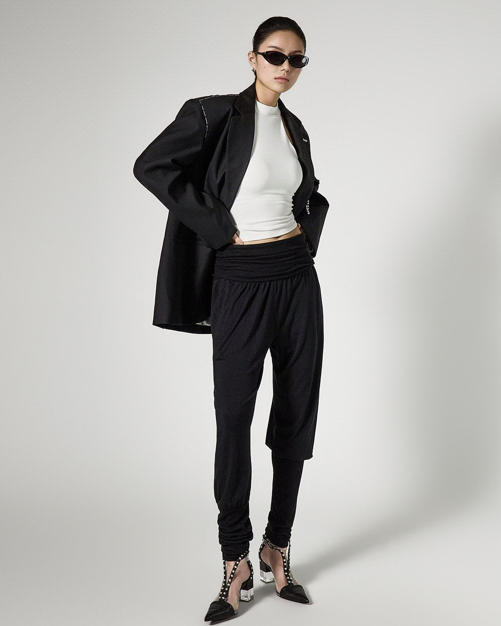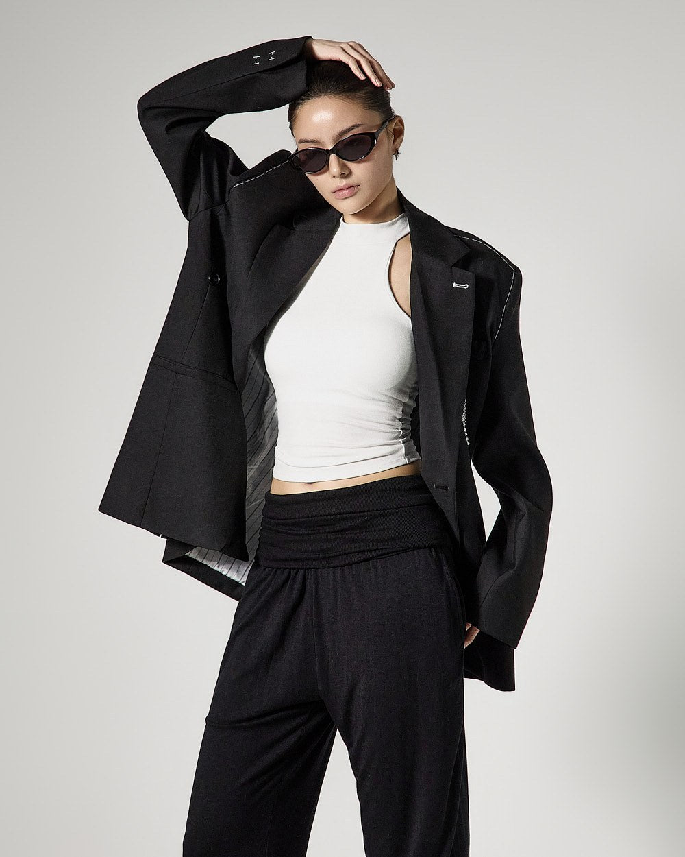 The semi-cropped length and slim fit line neatly accentuate the body line, creating a stylish look.