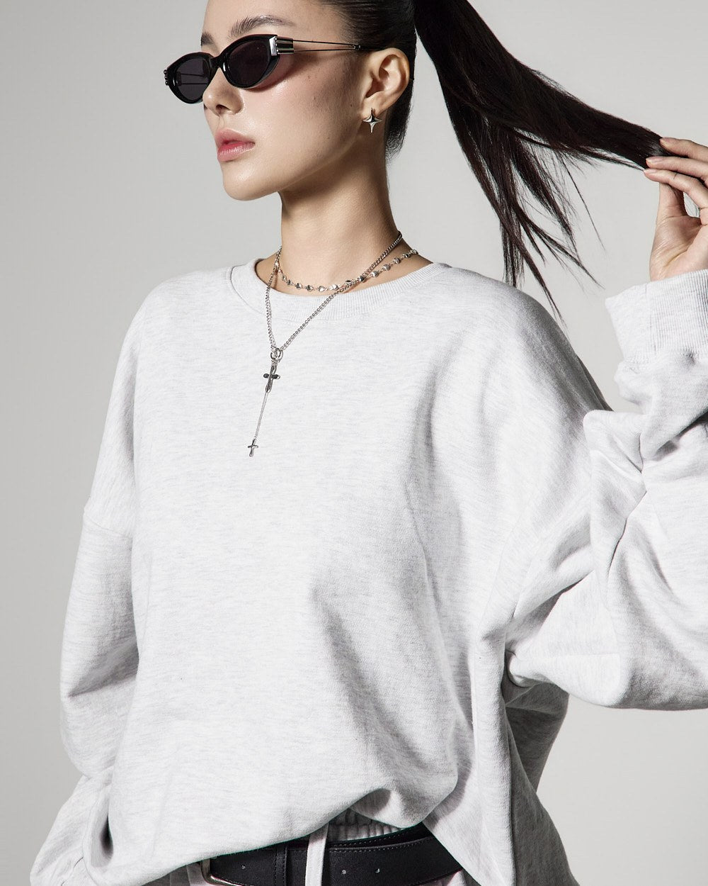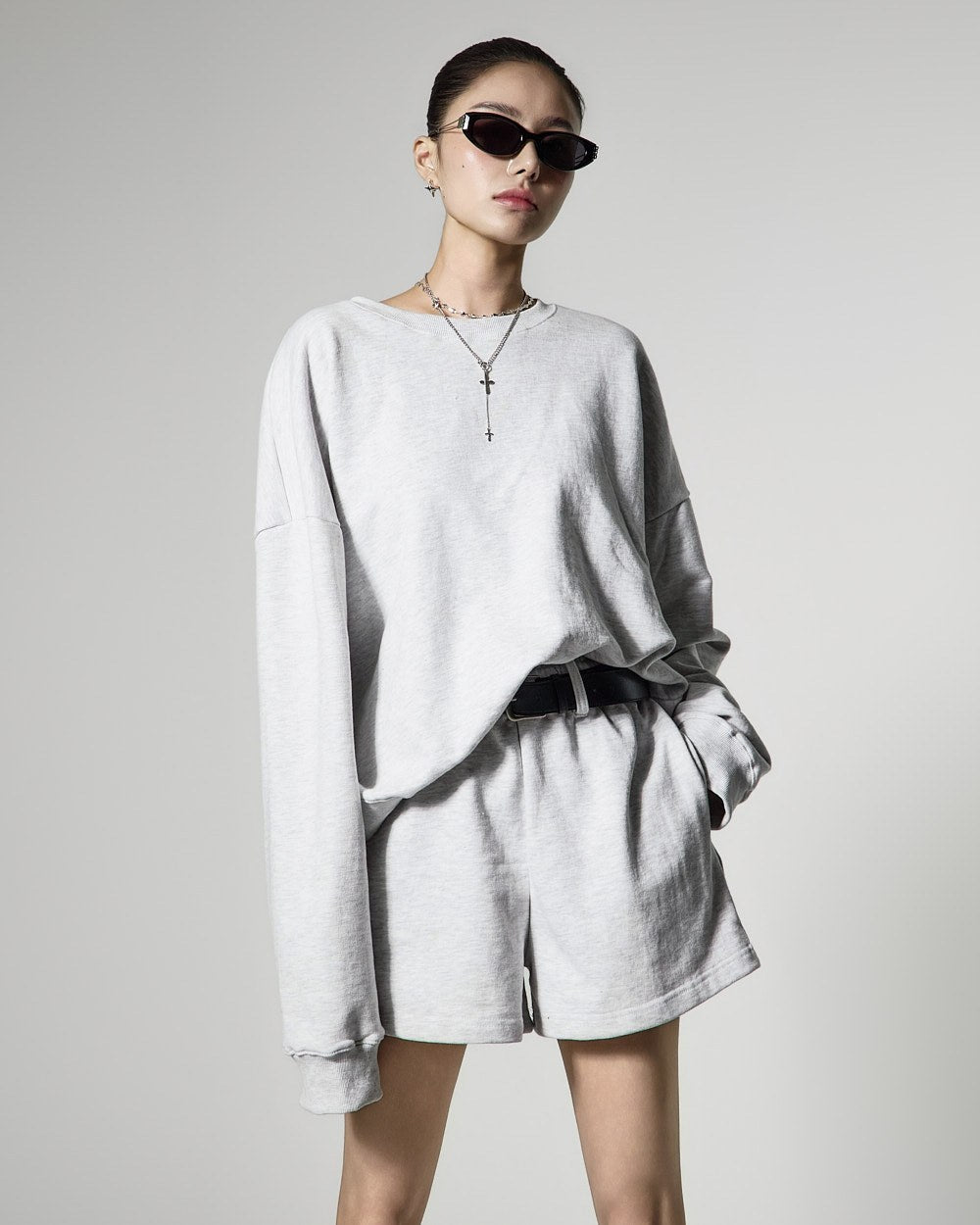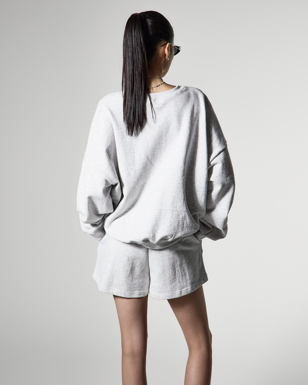 モデル(身長171cm)はメランジグレーのONEサイズを着用しています。