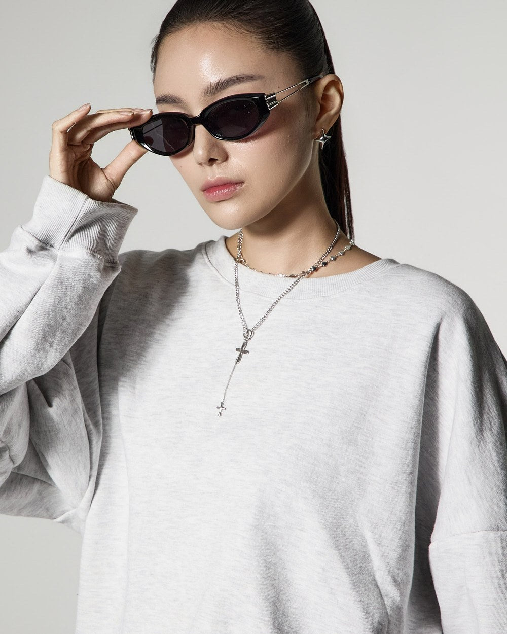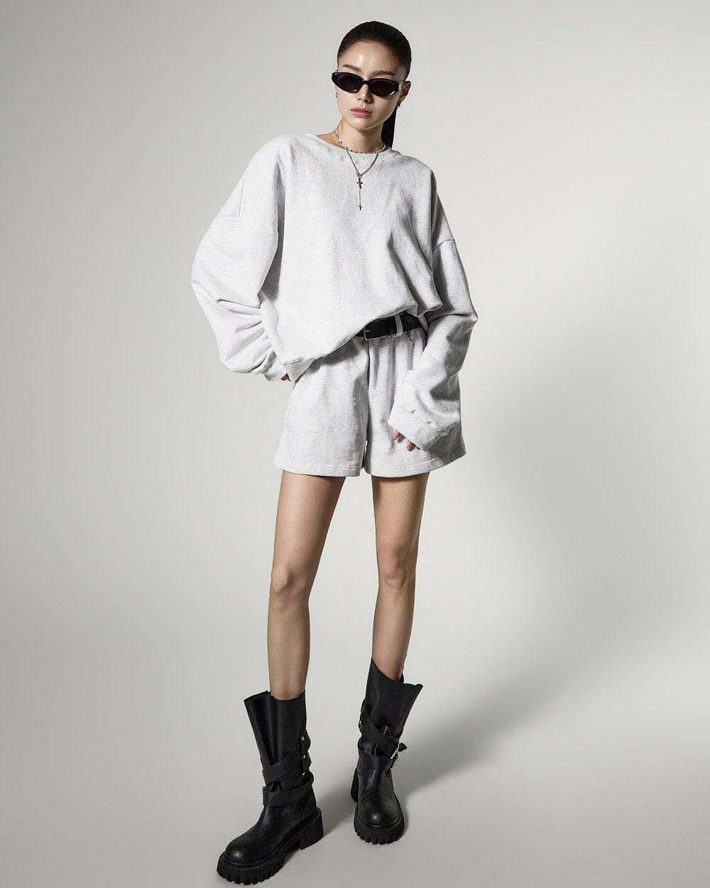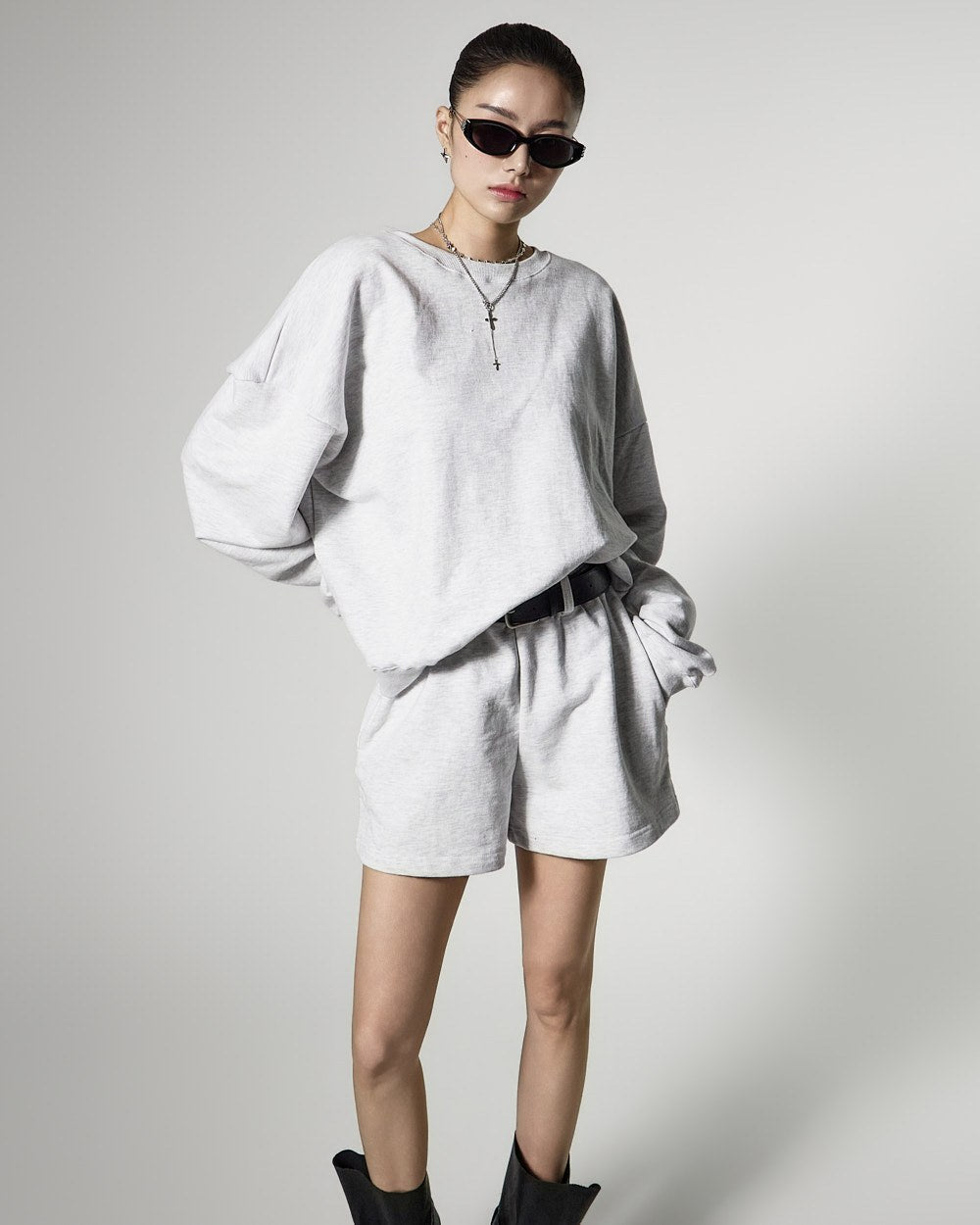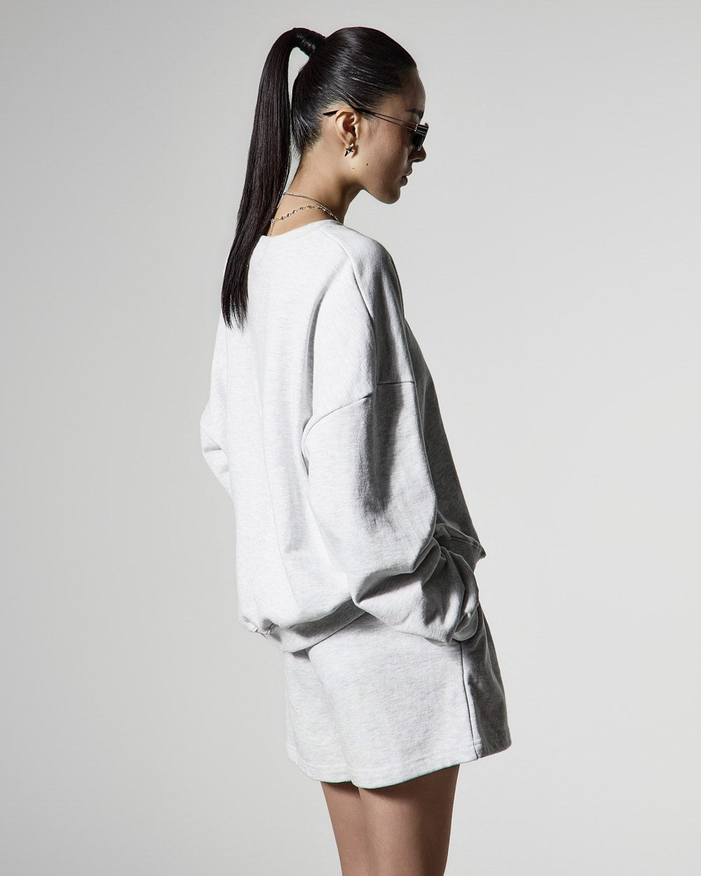 モデル(身長171cm)はメランジグレーのONEサイズを着用しています。