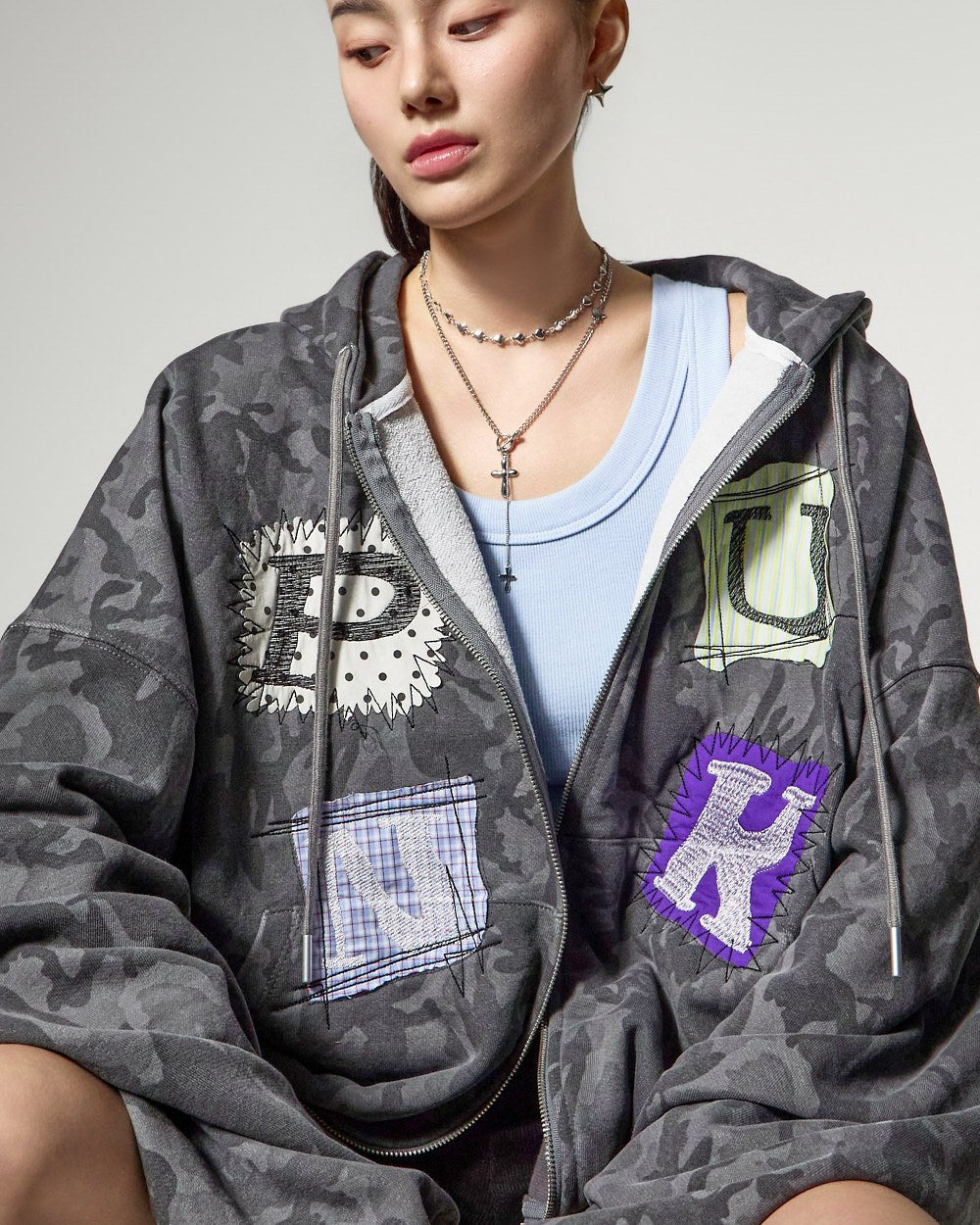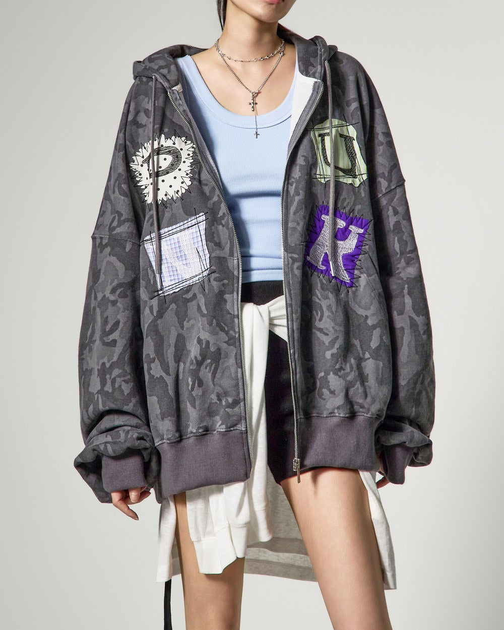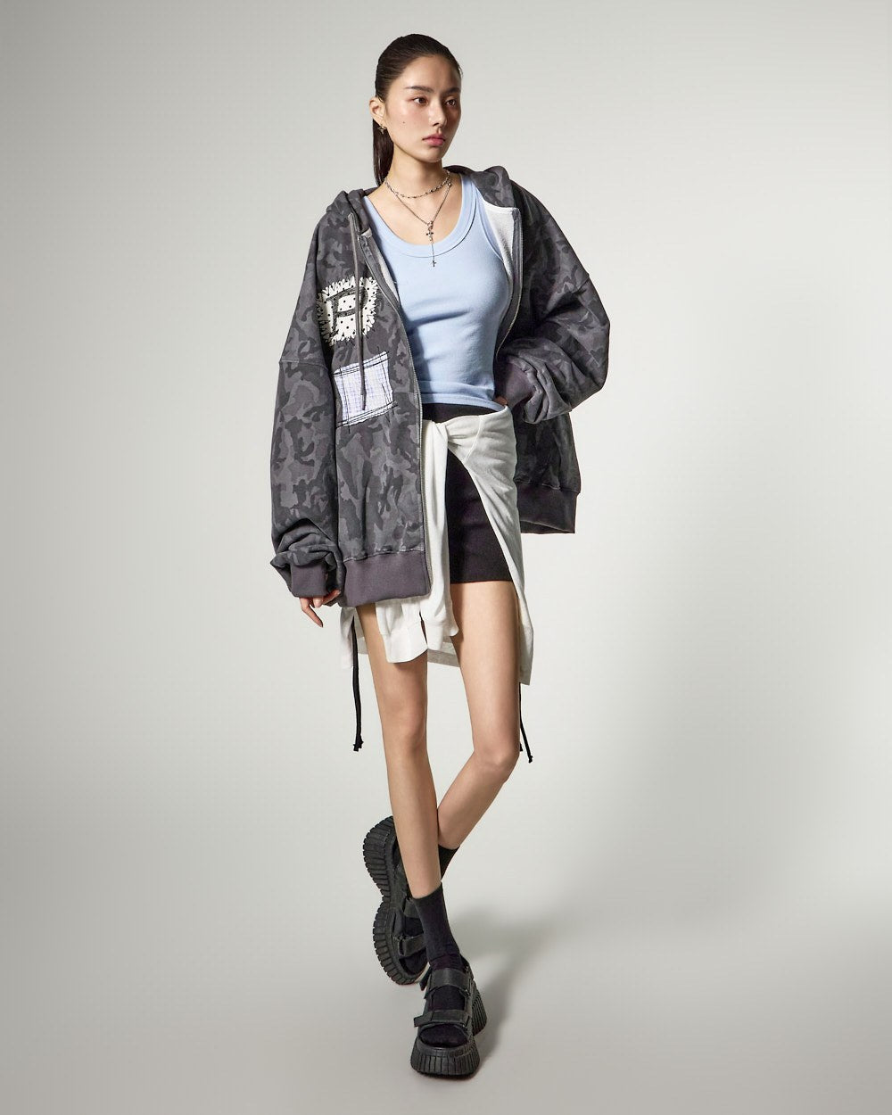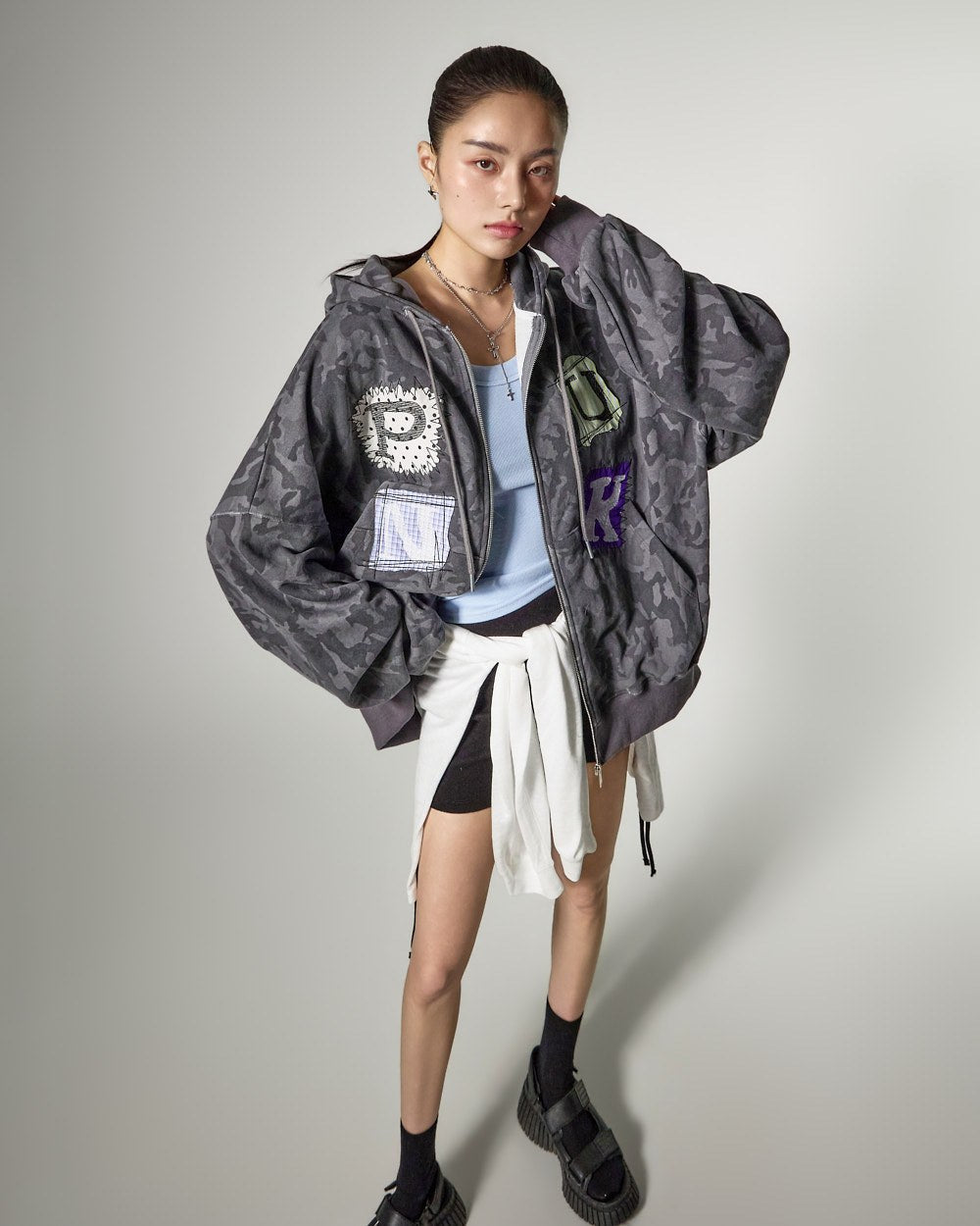 ゆったりとしたフィット感と長めの袖丈が自然な流れるようなシルエットを完成させ、
