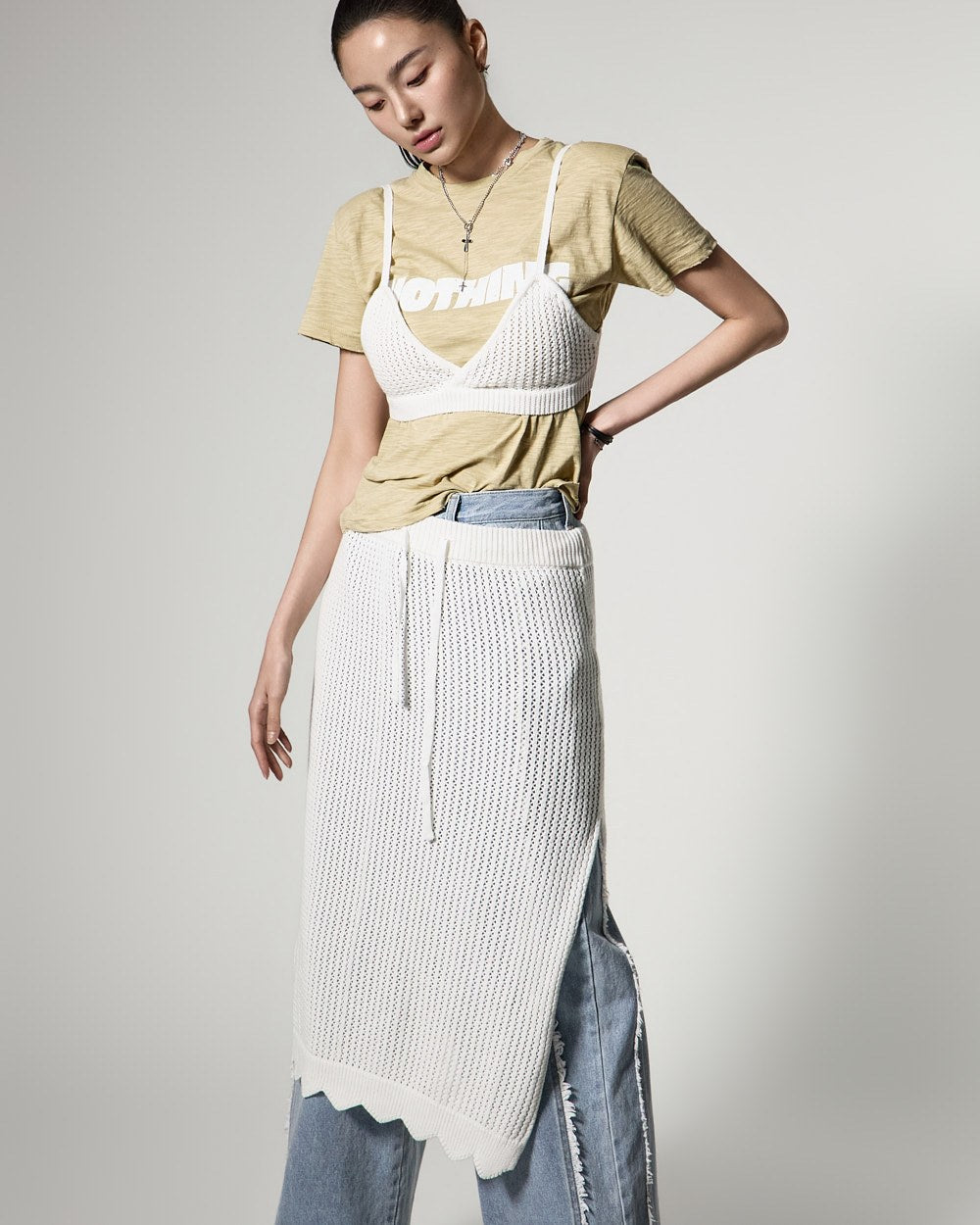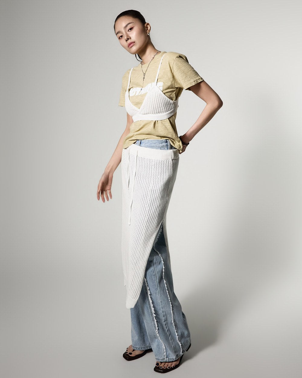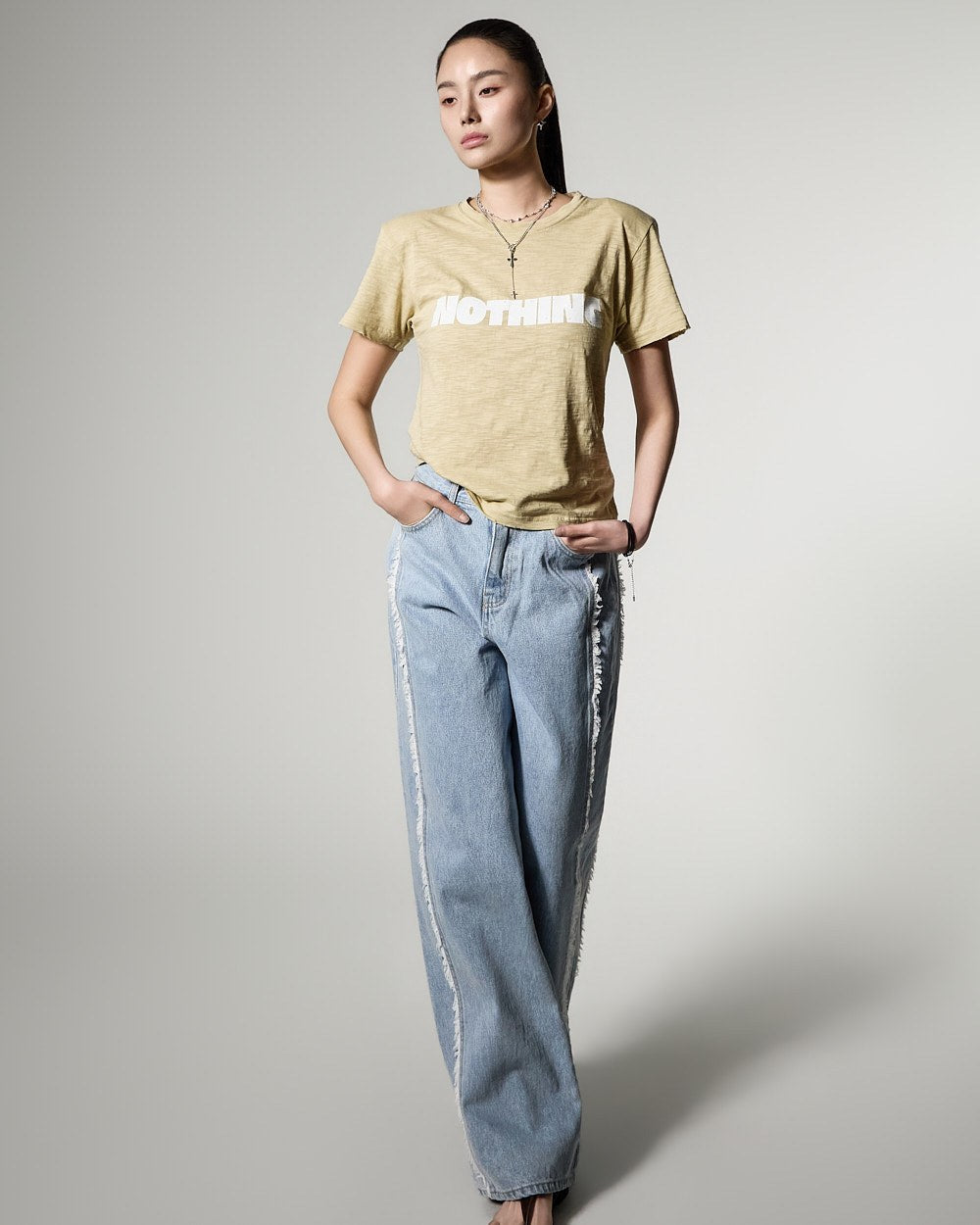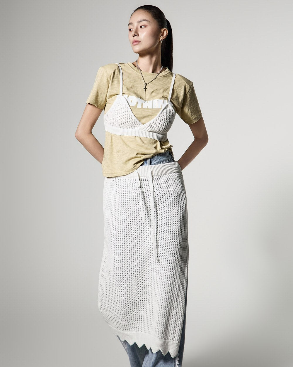 171cmのモデルがONEサイズ、ライトイエローカラーを着用しています。