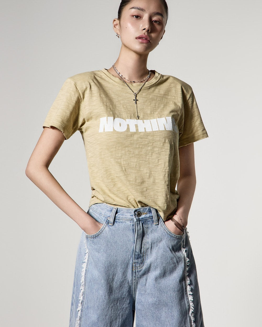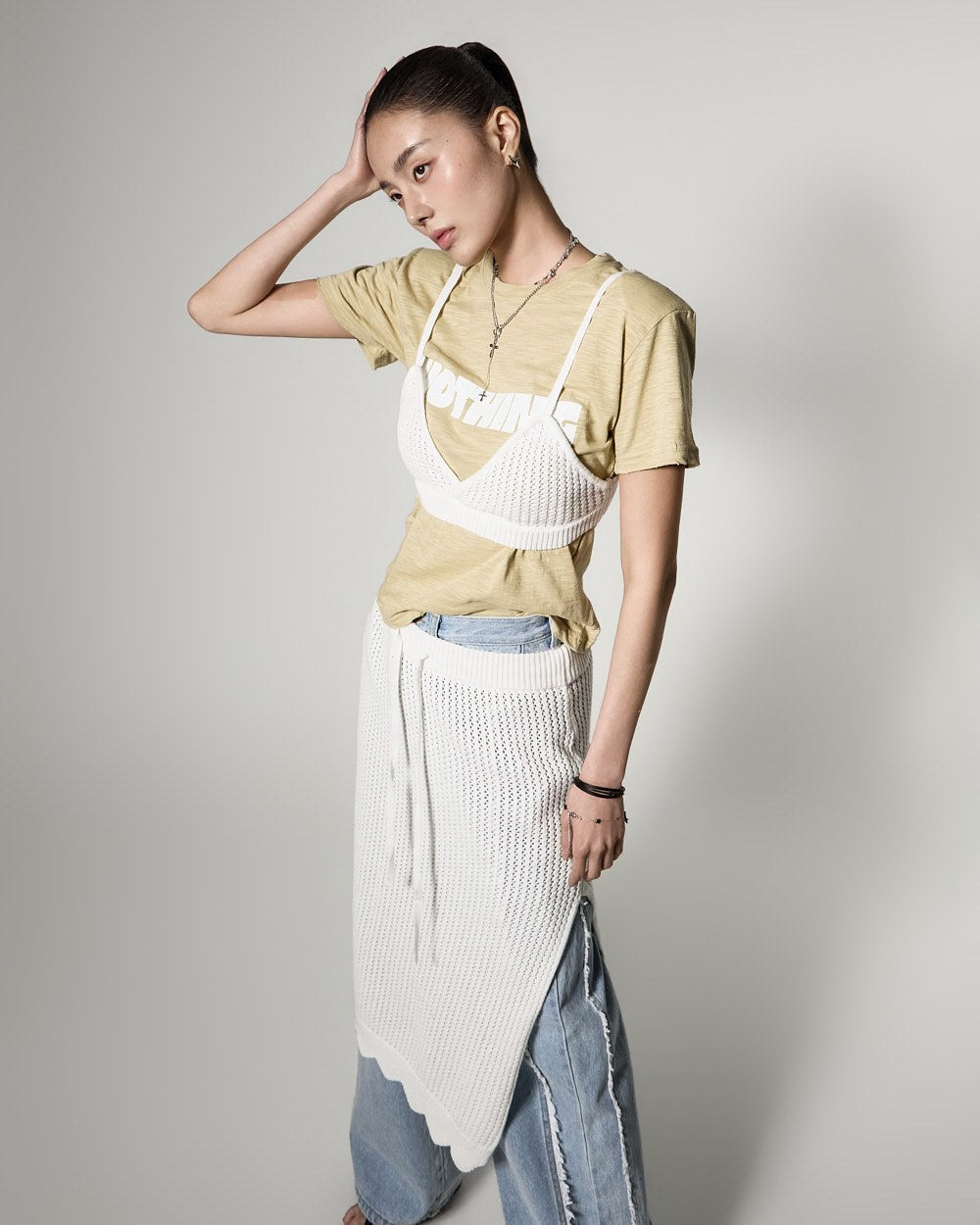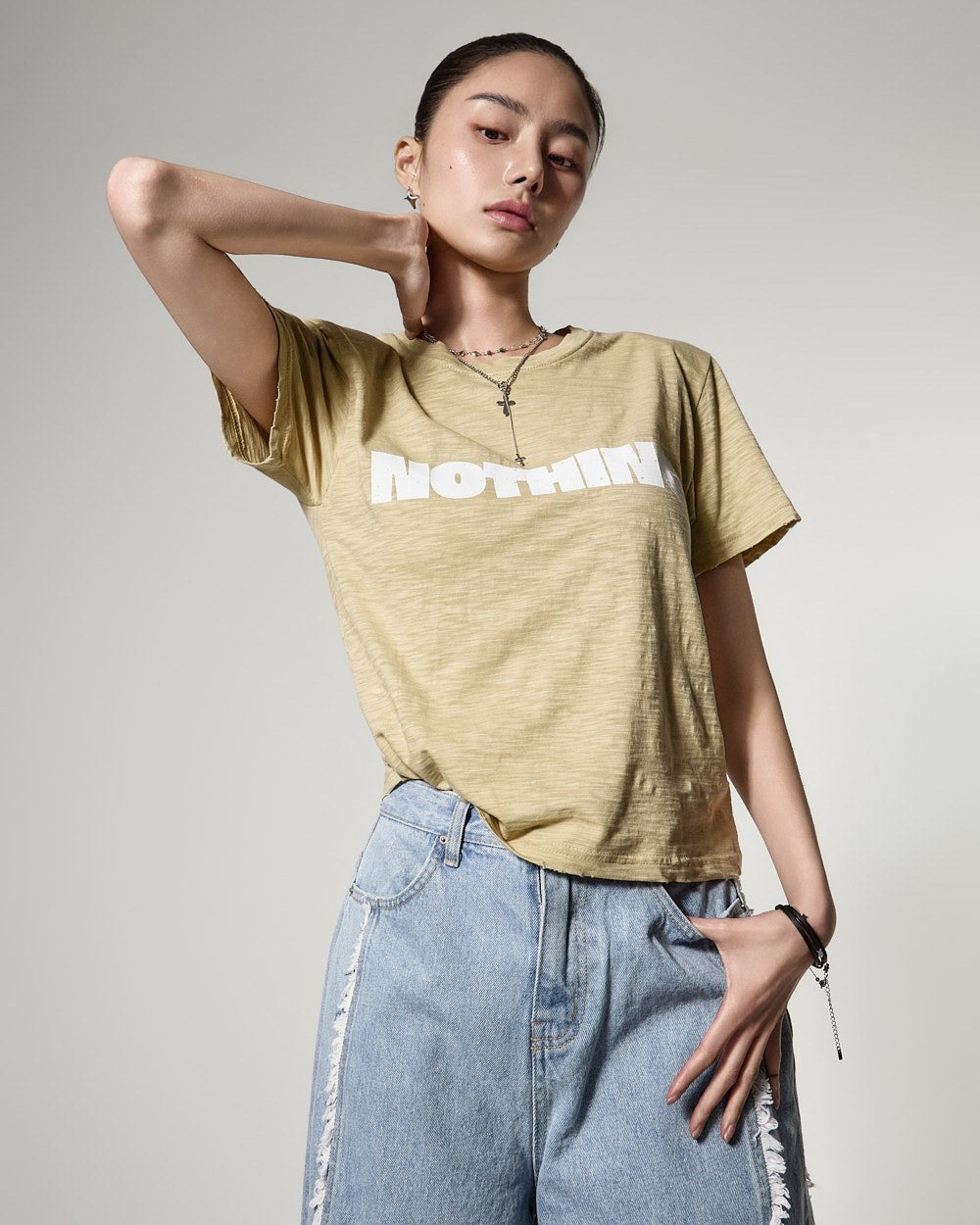 171cmのモデルがONEサイズ、ライトイエローカラーを着用しています。