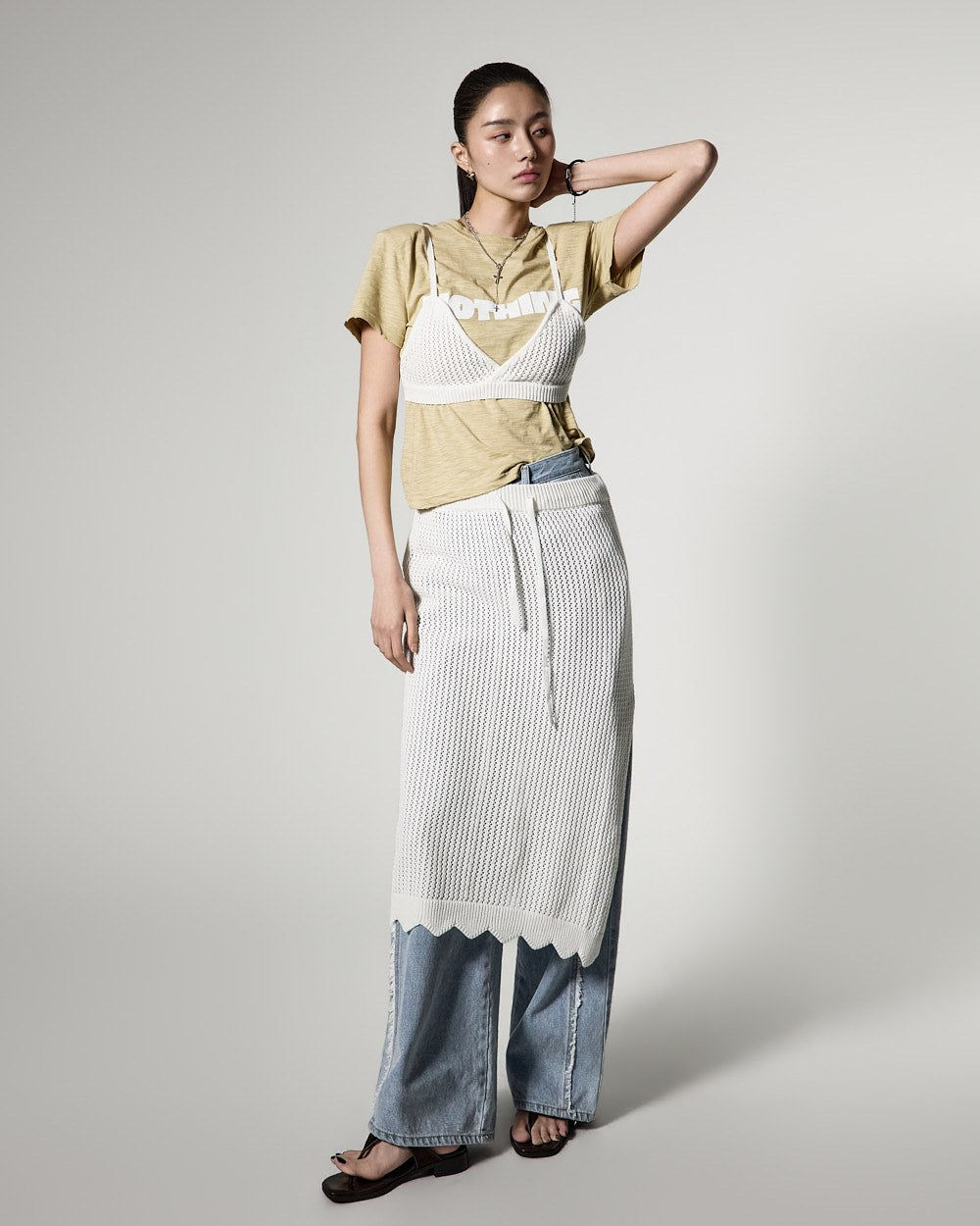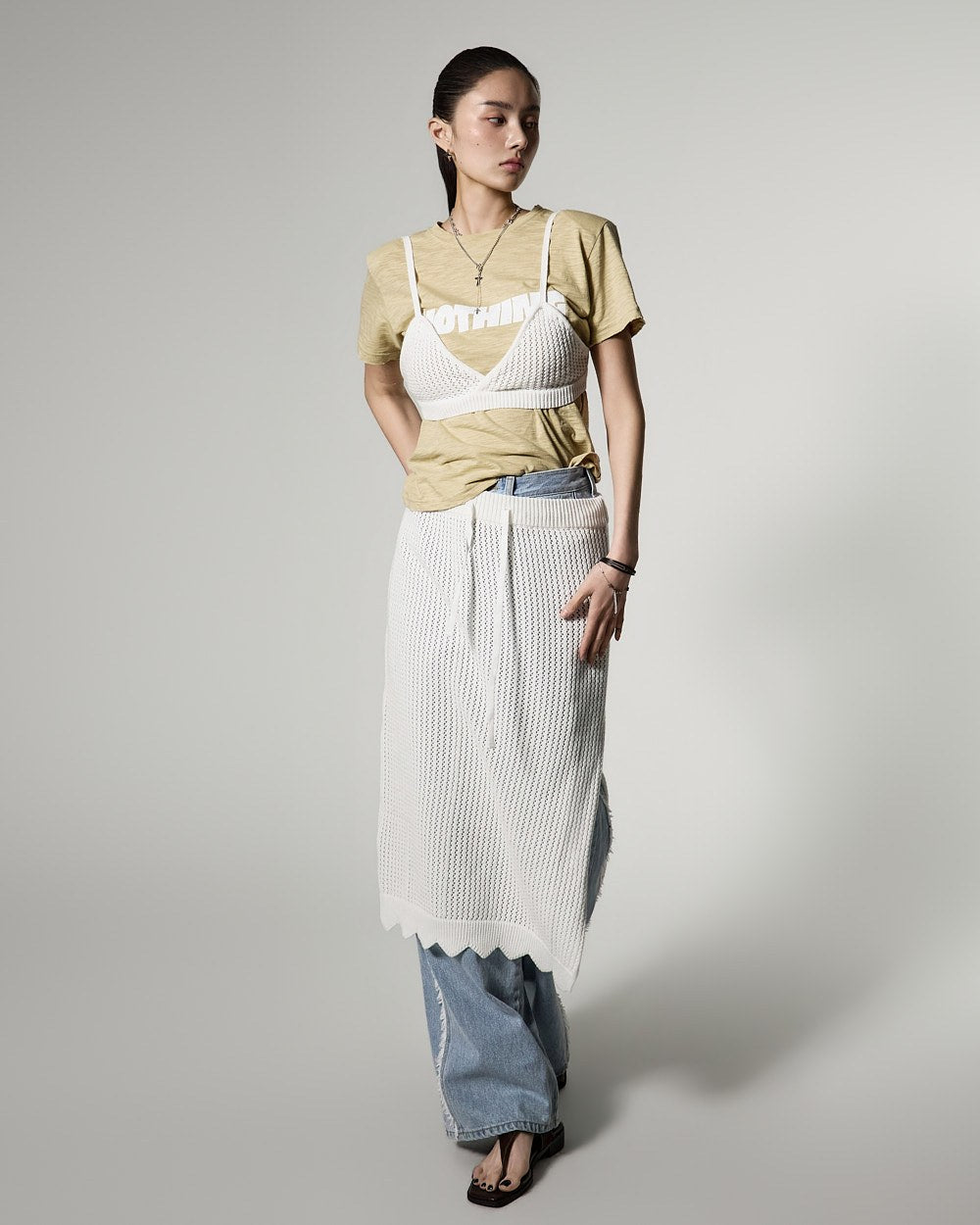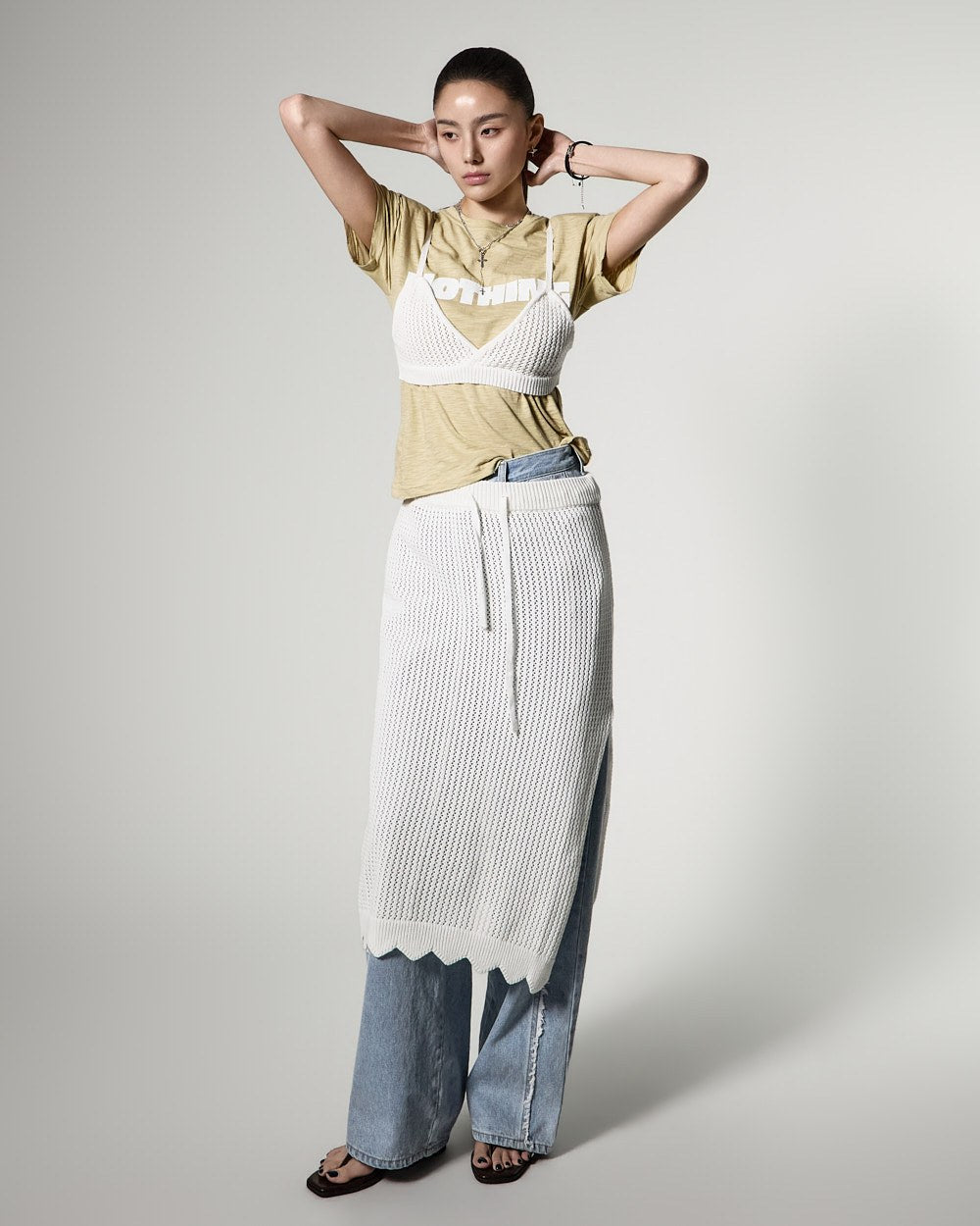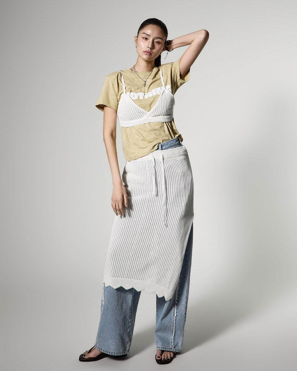 171cmのモデルがONEサイズ、ライトイエローカラーを着用しています。