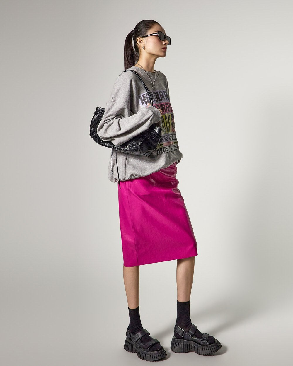 171cmのモデルがGRAYのONEサイズを着用しています。
