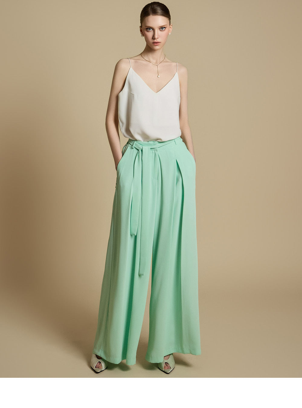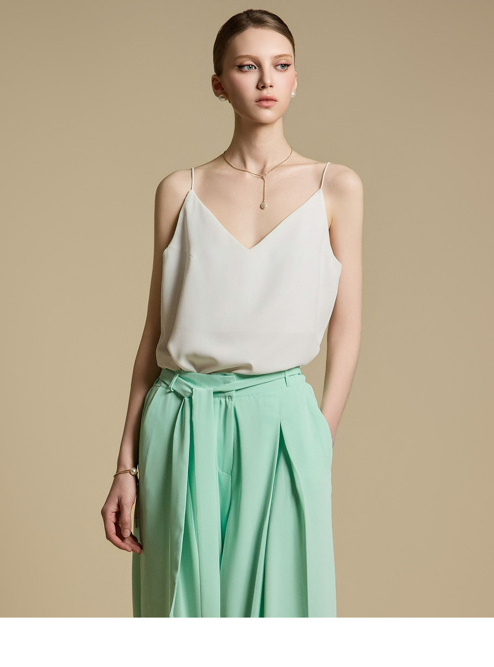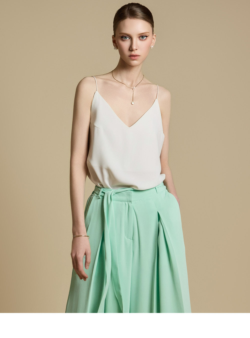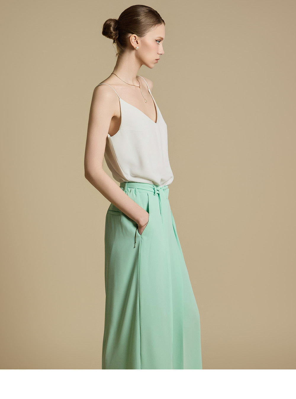 洗練されたシルエットを演出するショルダーストラップのストリングディテールも魅力。