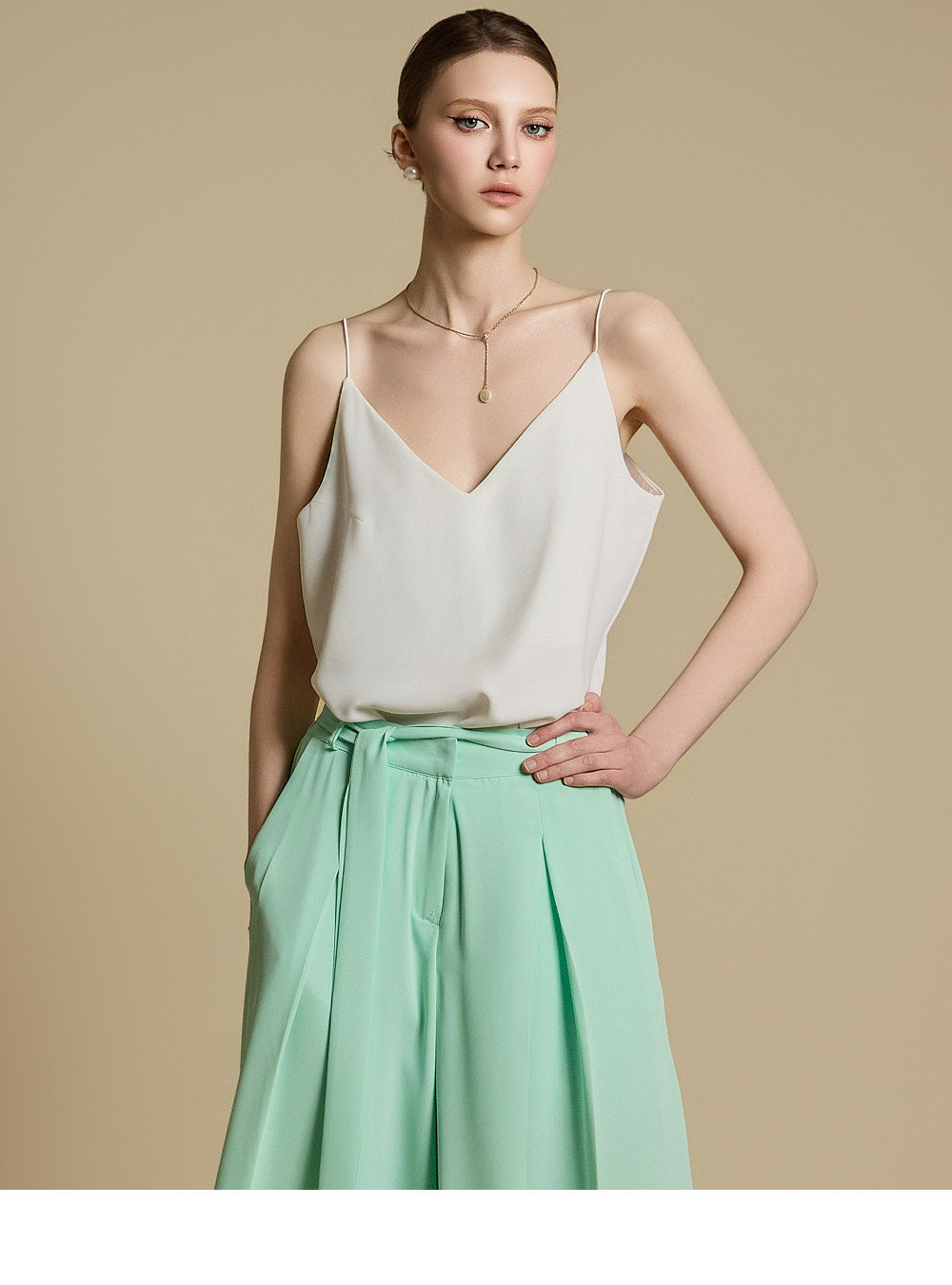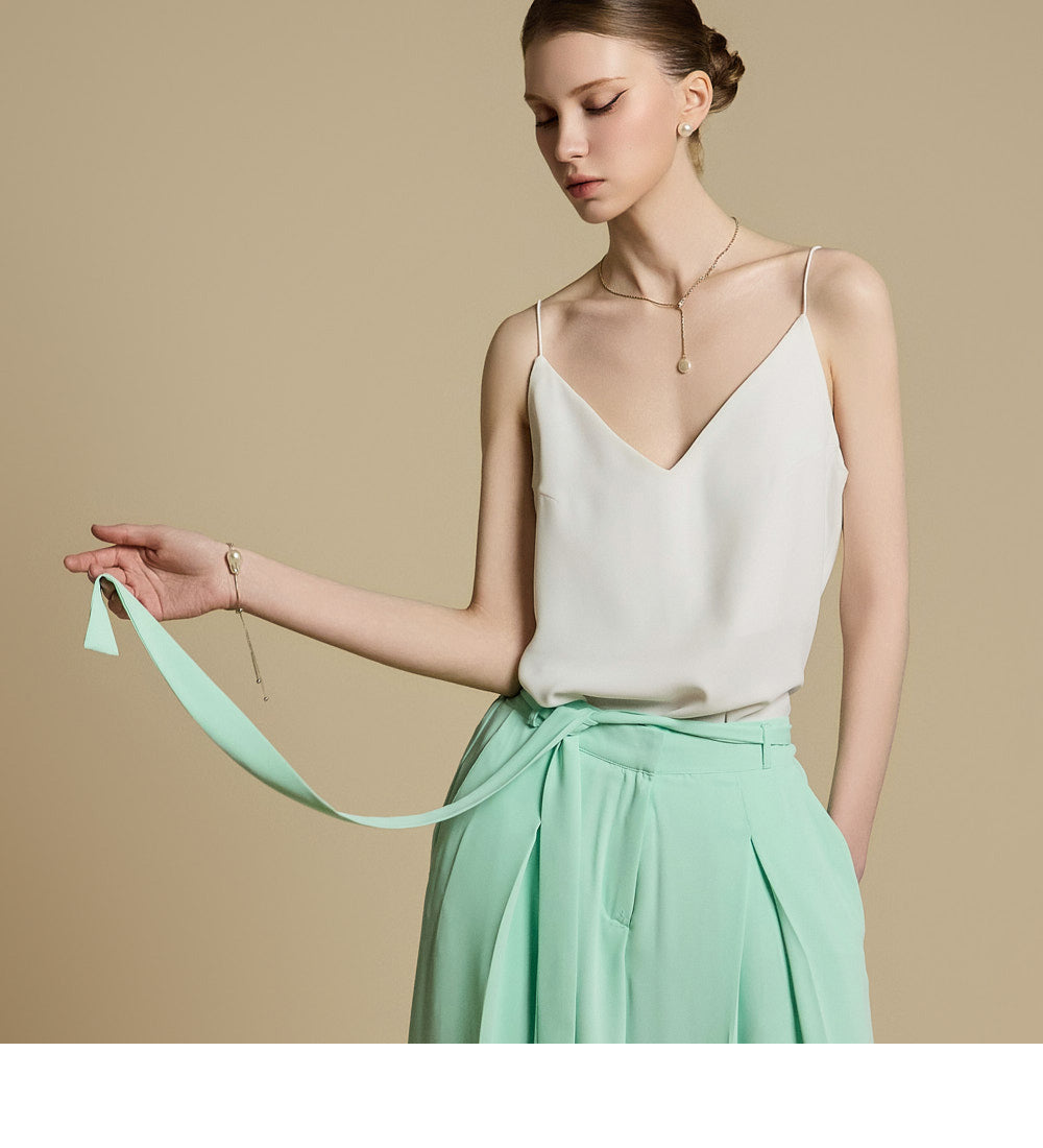 E9031 Vネックノースリーブトップス