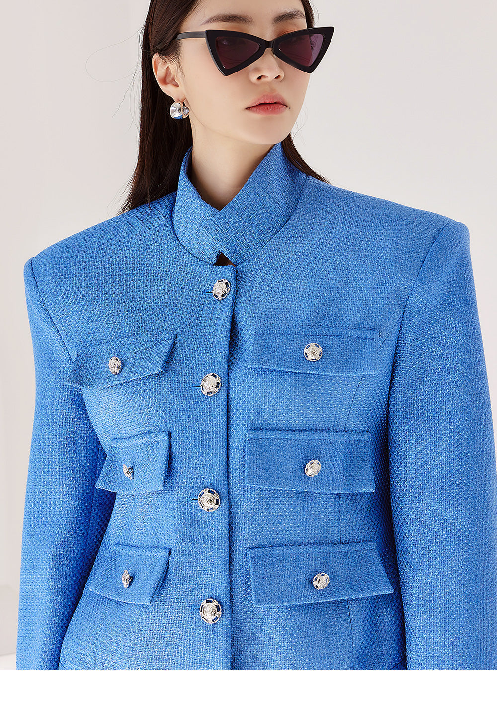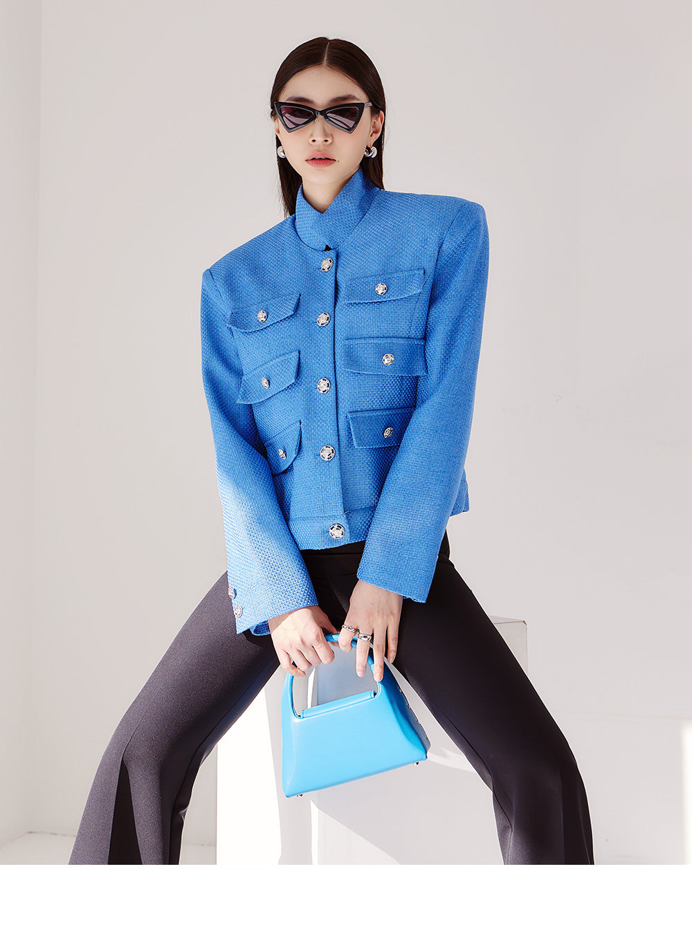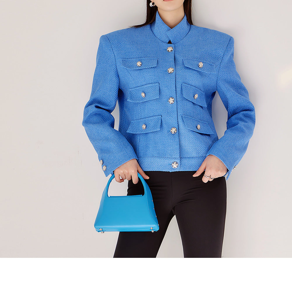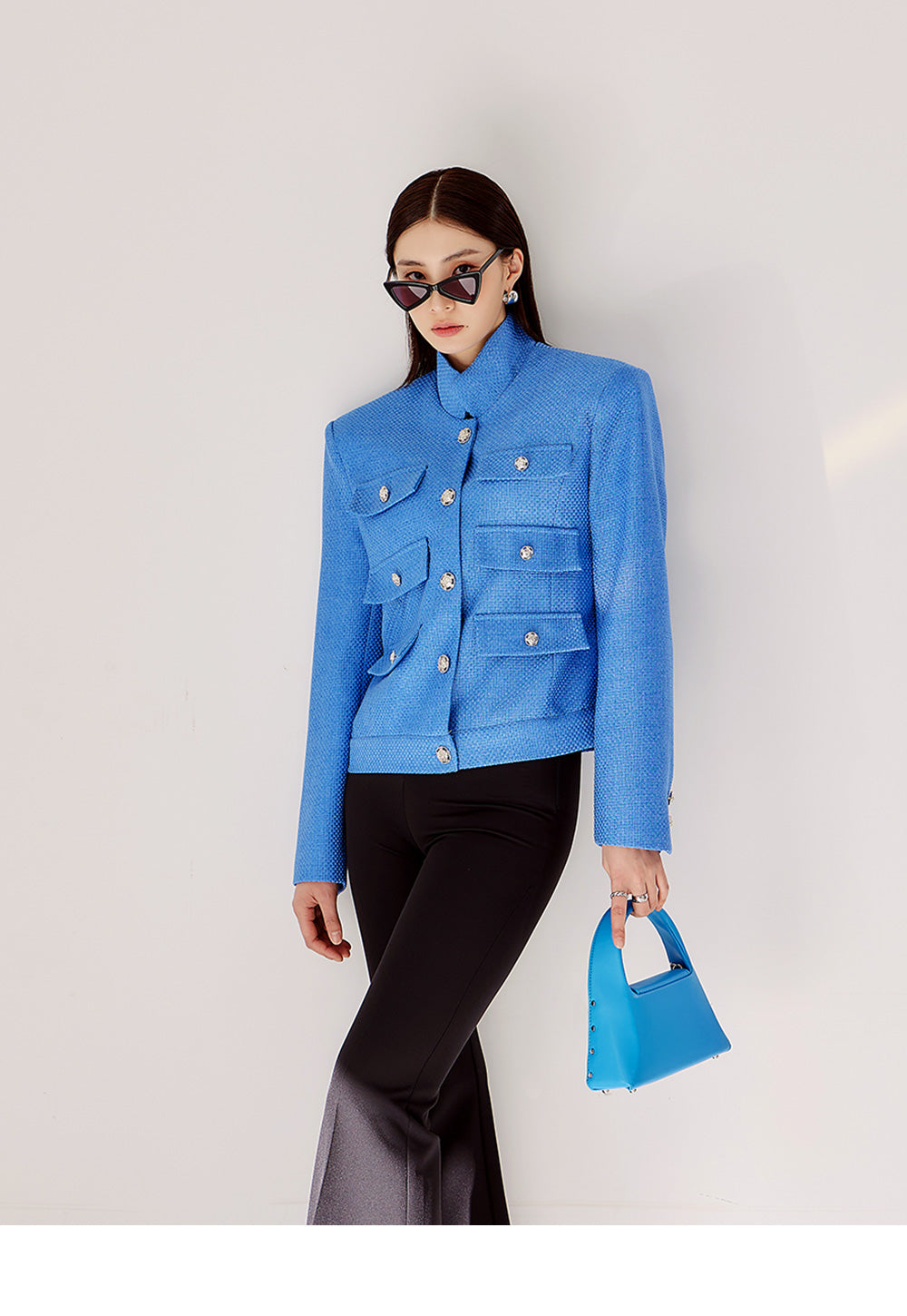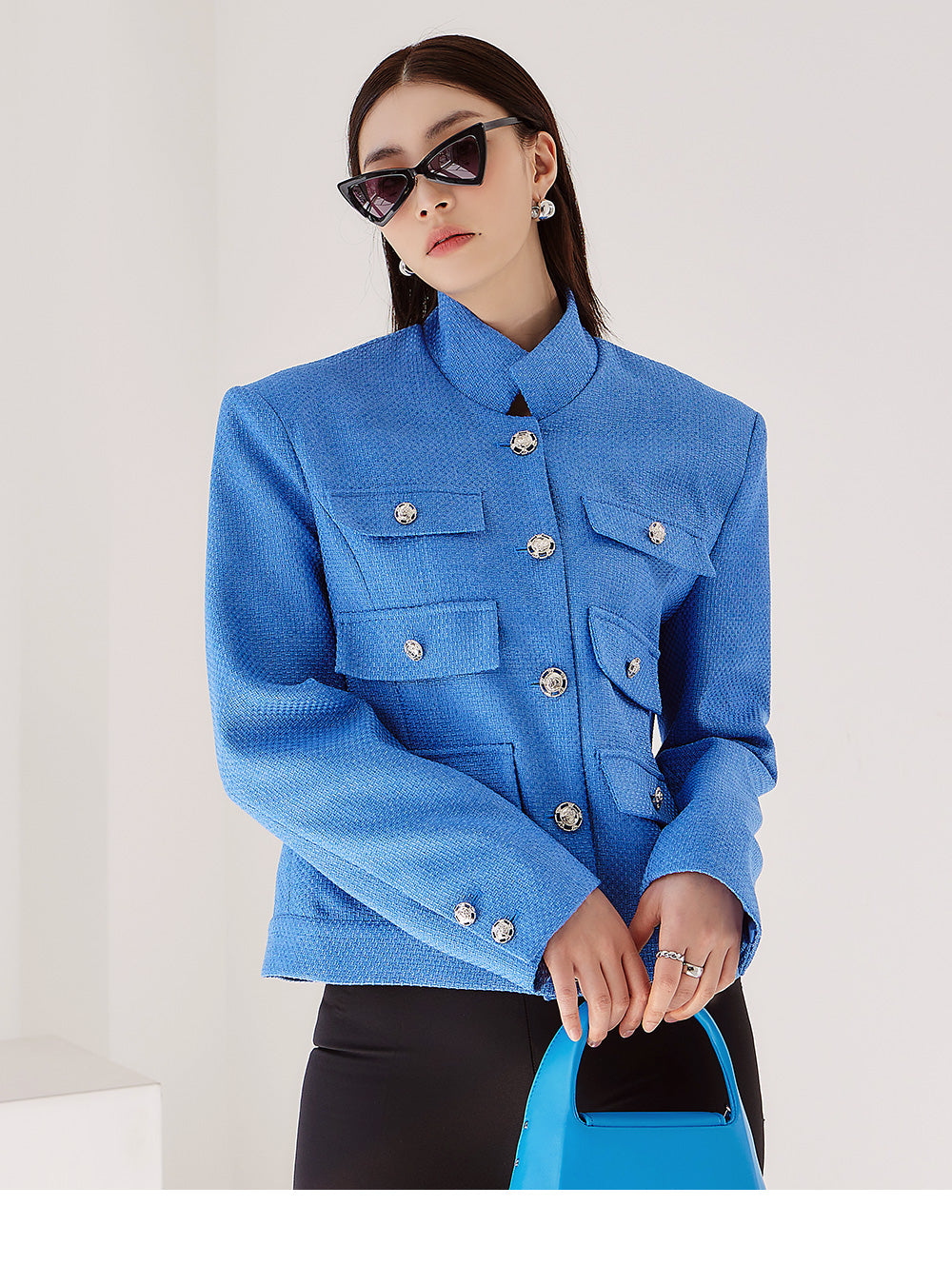 ハーフハイネックのネックラインが独特な雰囲気を醸し出し、