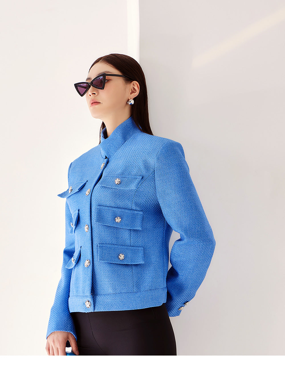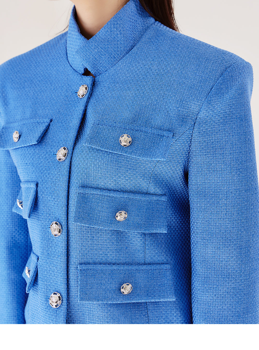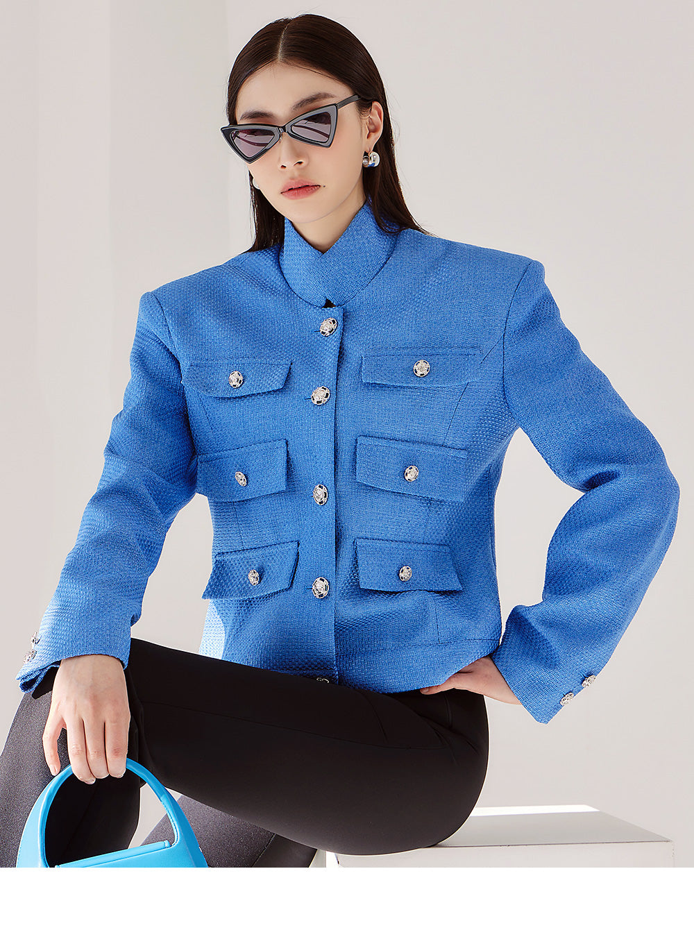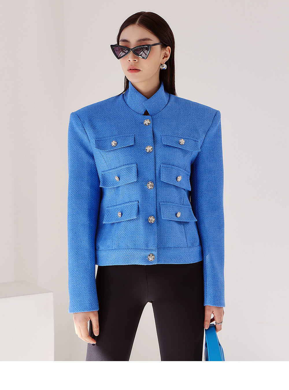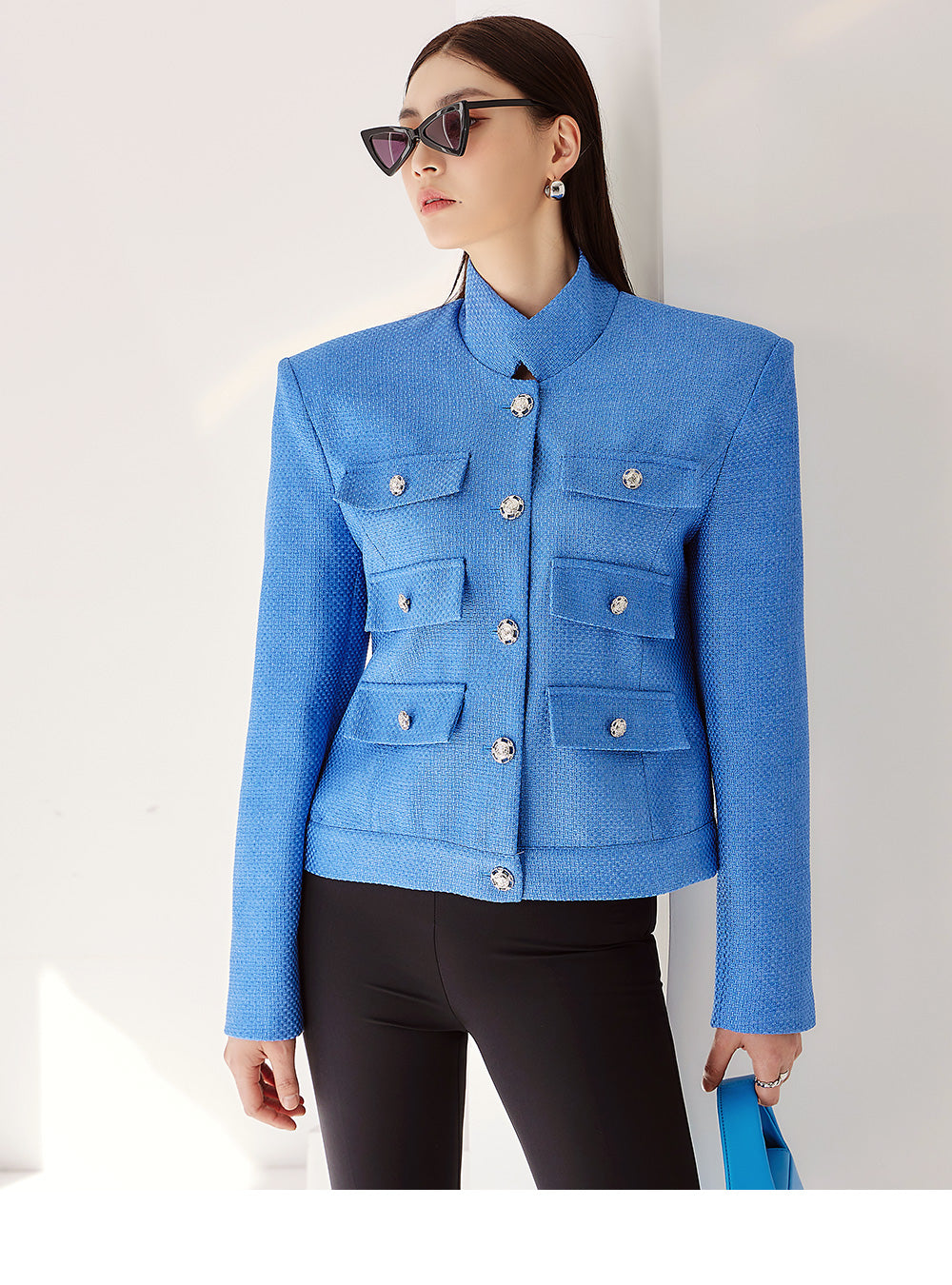 ハーフハイネックのネックラインが独特な雰囲気を醸し出し、