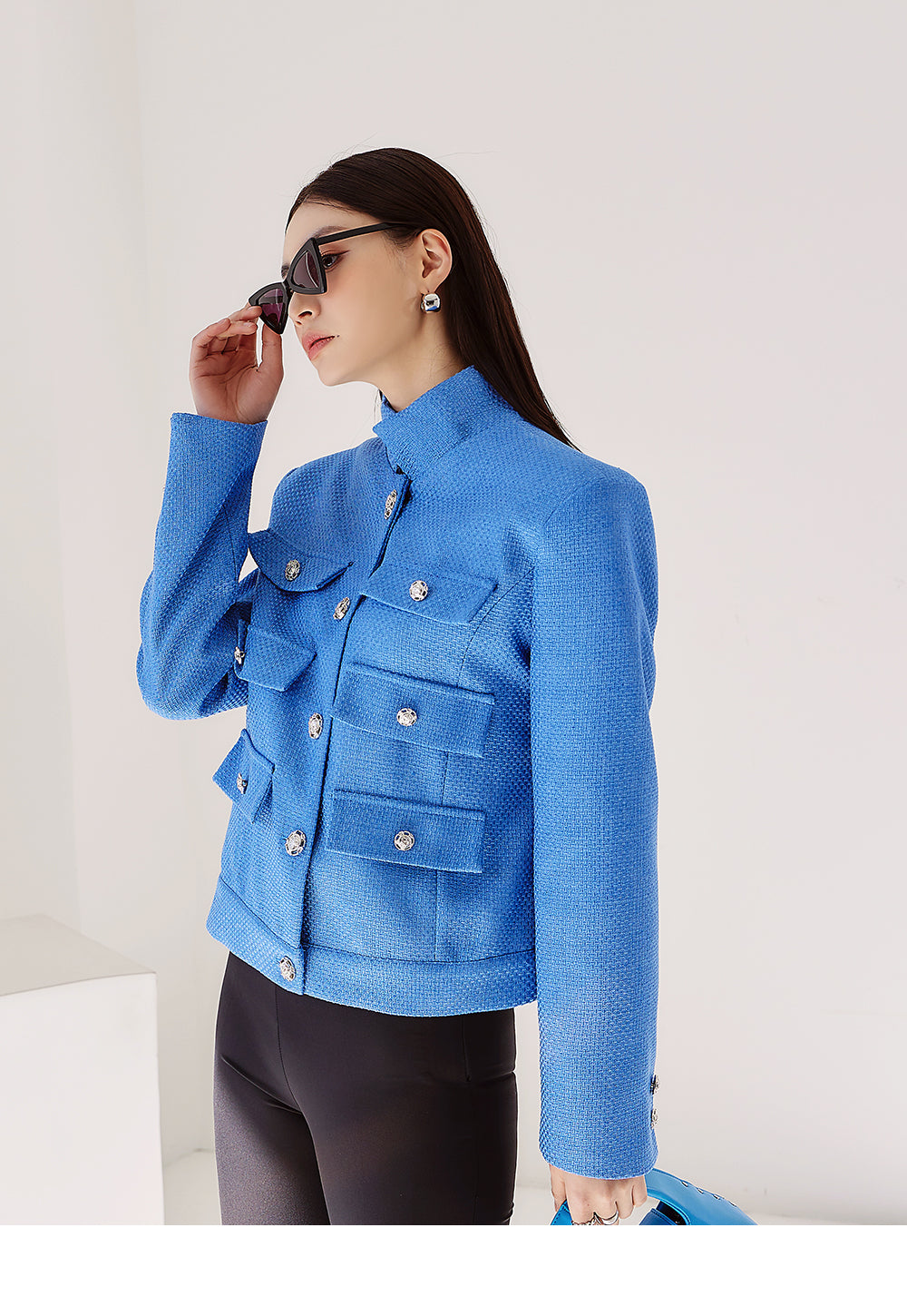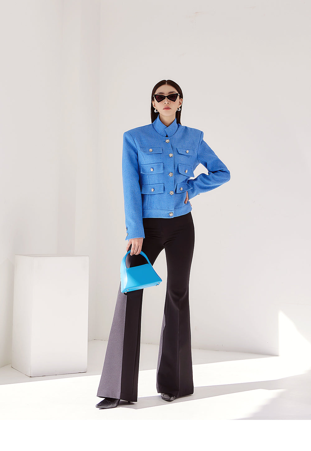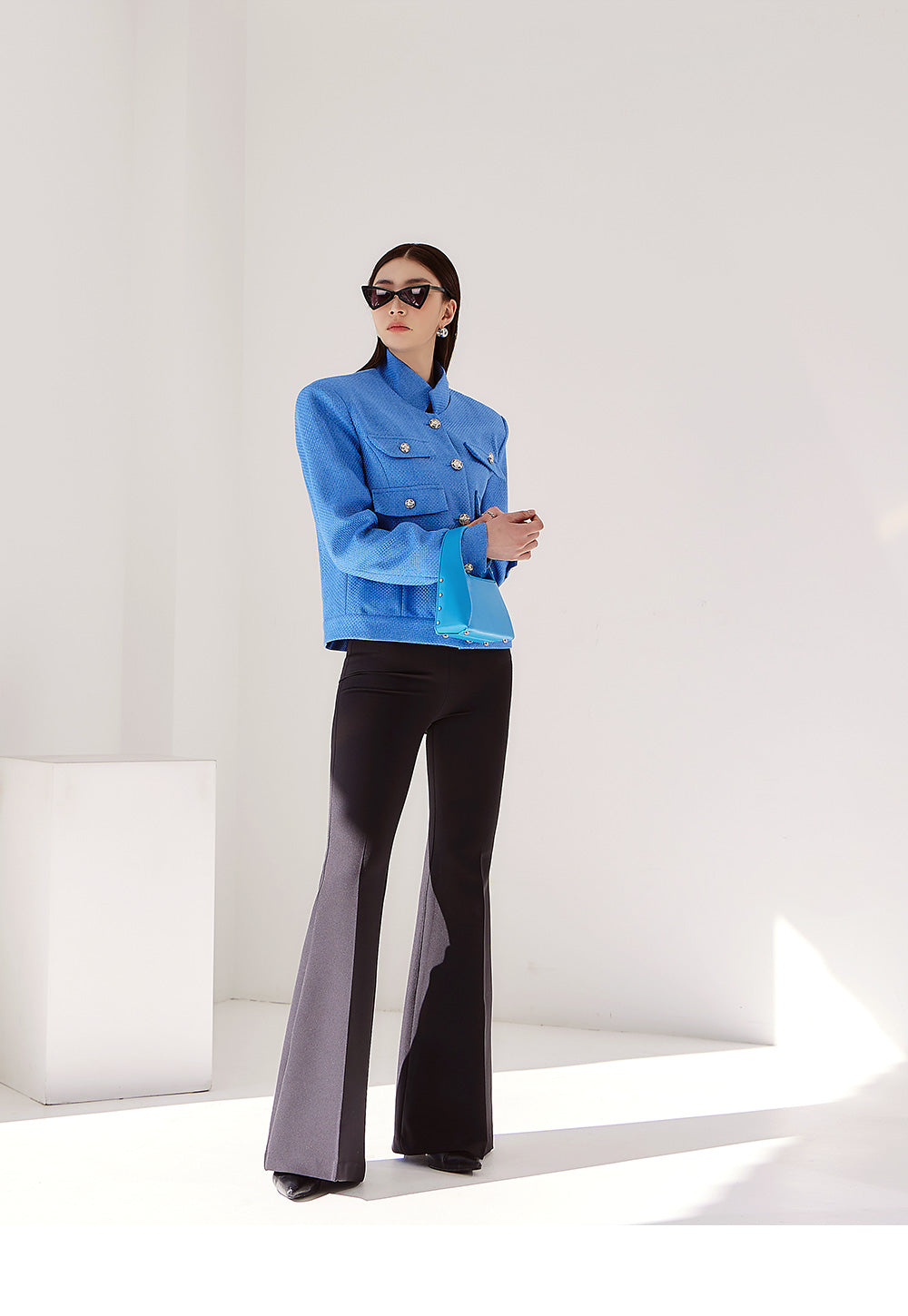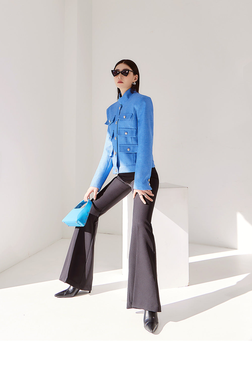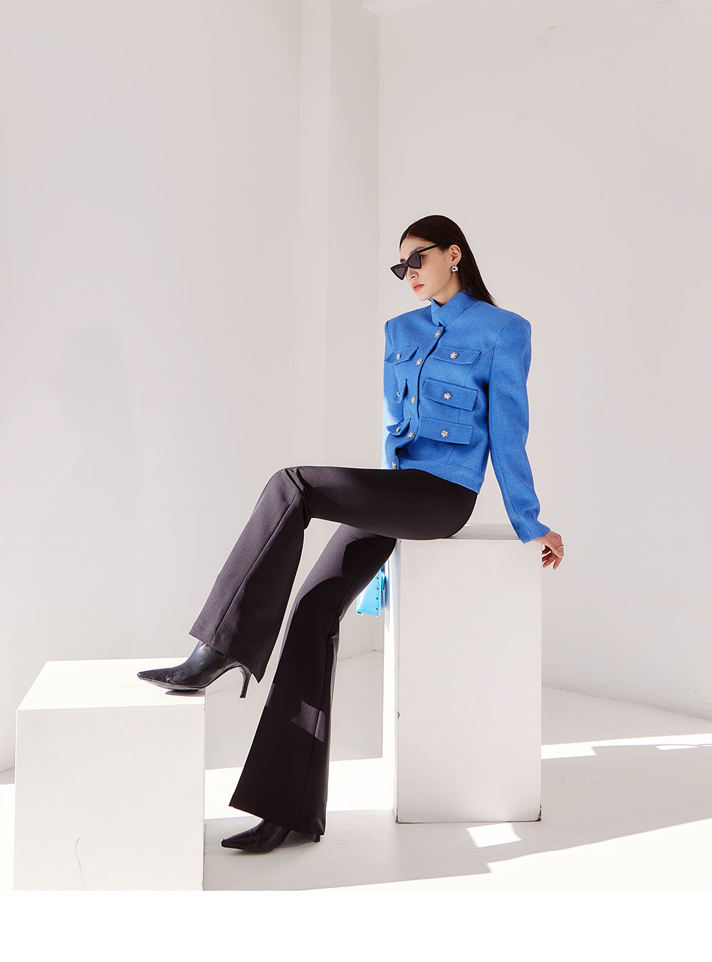 フロントのフェイクポケットデザインがスタイリッシュなコーディネートを演出します。