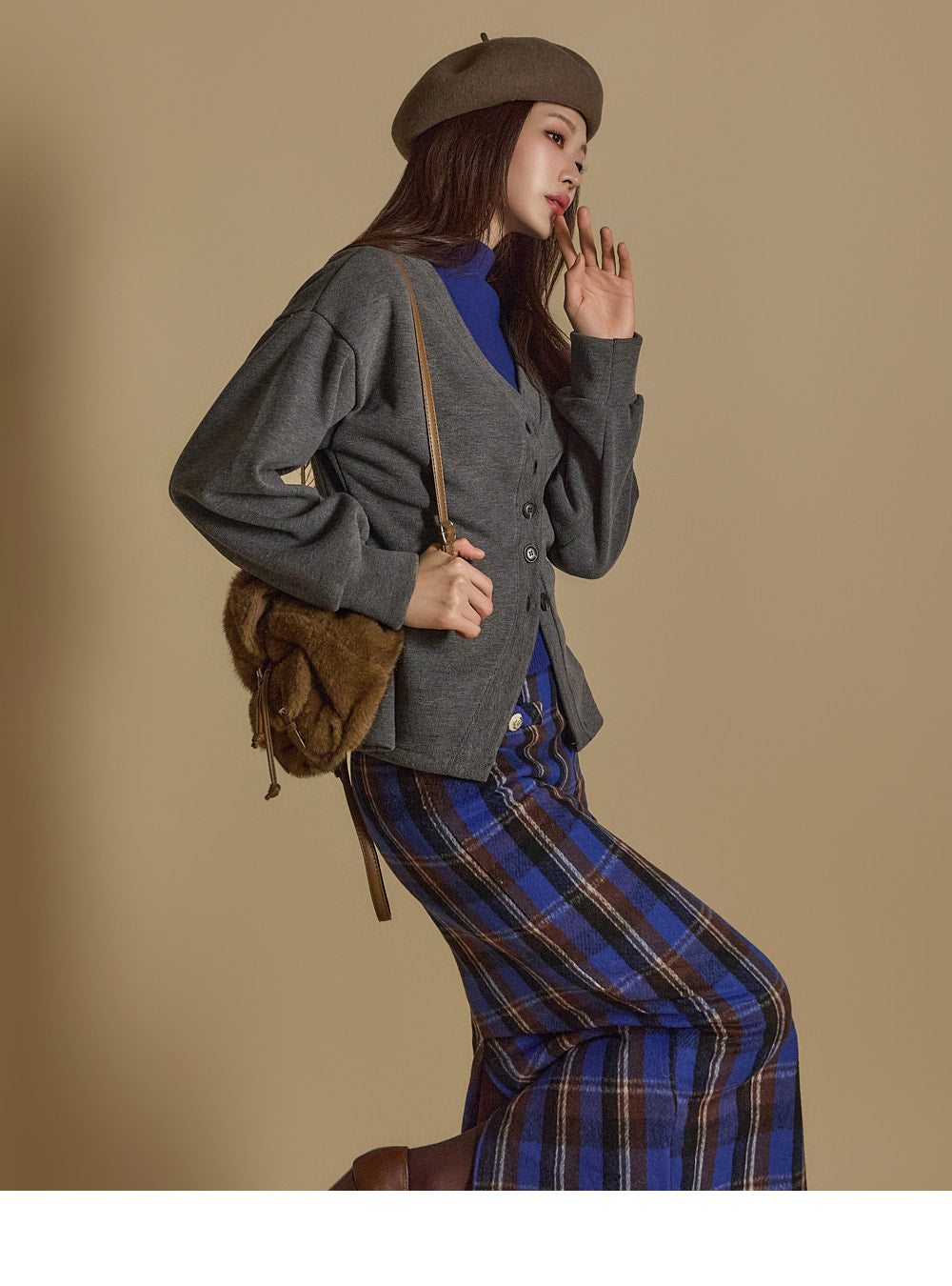 このデイリーカーディガンはポリエステルとレーヨンの柔らかい混紡素材で作られています。