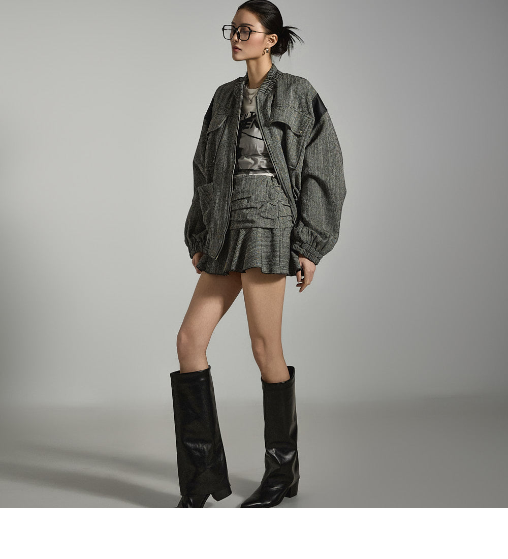 双方向ジッパーを備え、スタイリングの調整が可能。