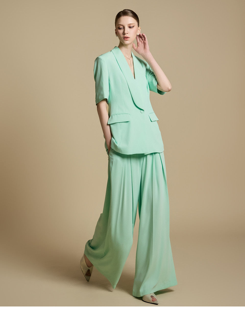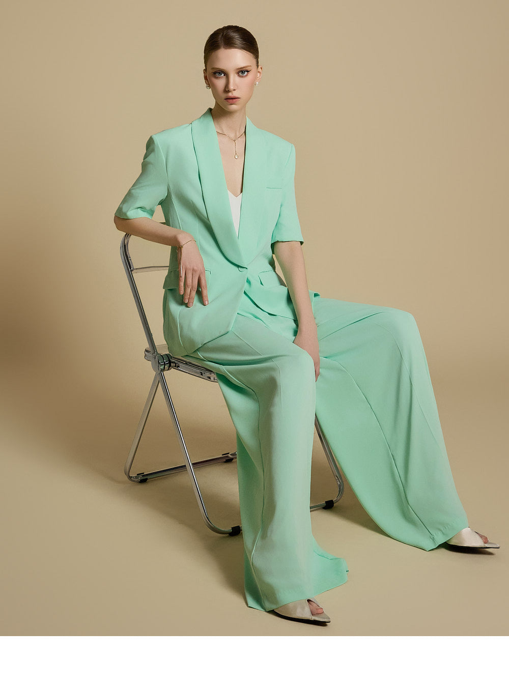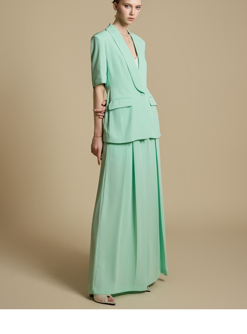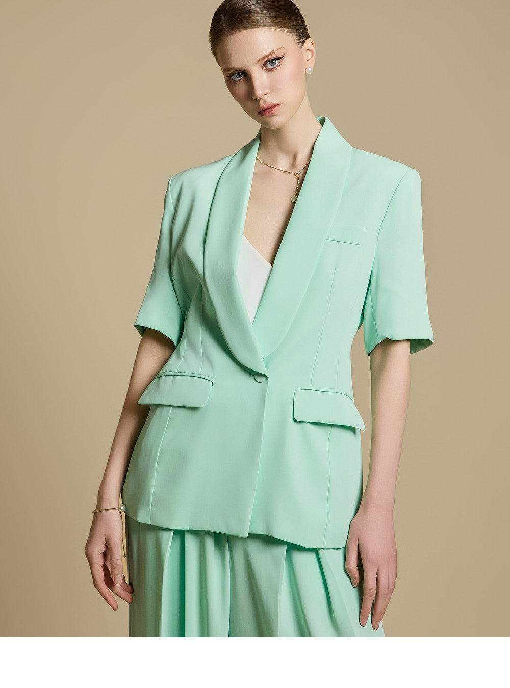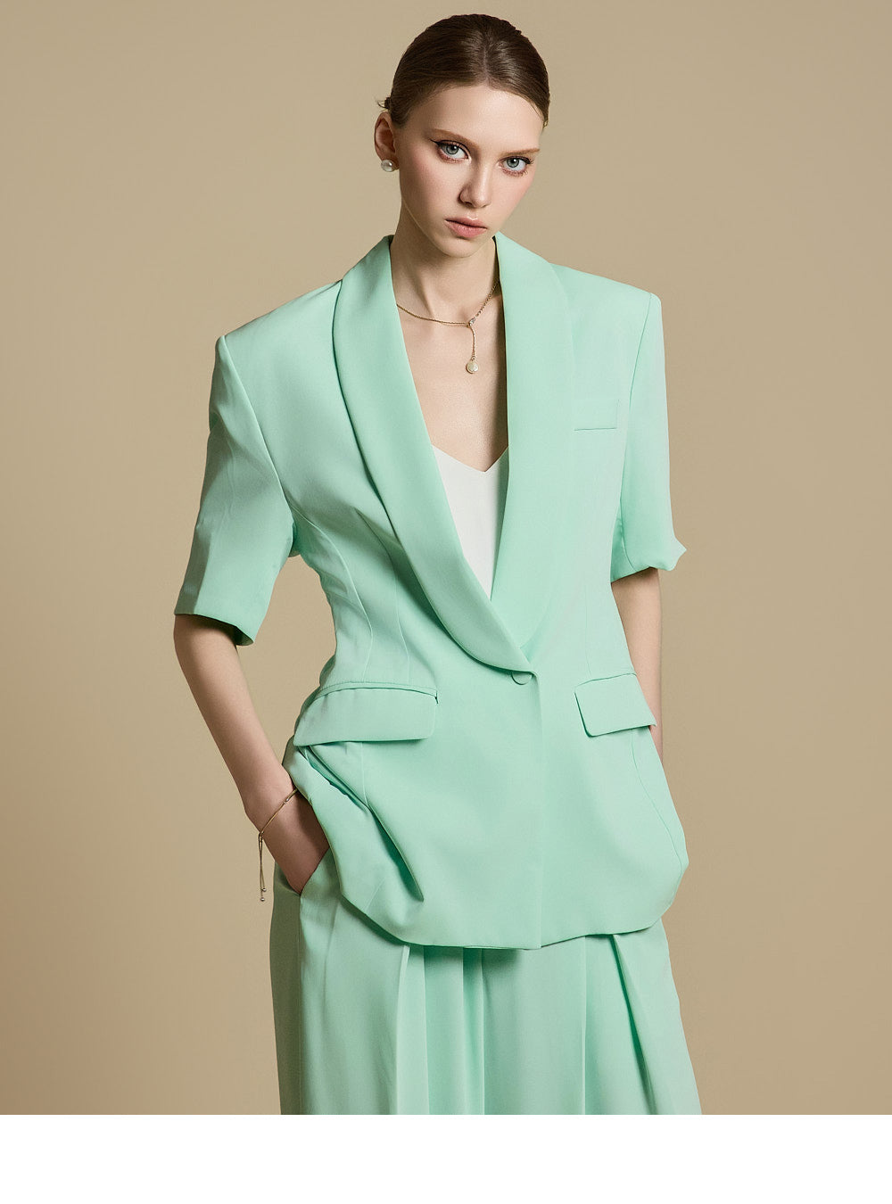 適度にパッドを入れた肩により、すっきりとしたシルエットが実現しました。
