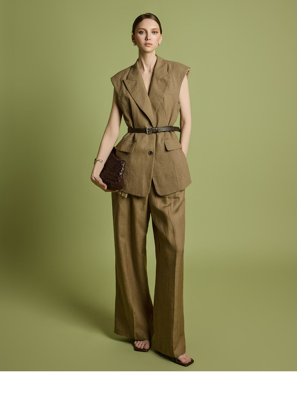 軽くパッドを入れた肩が構造的なシルエットを作り出します。