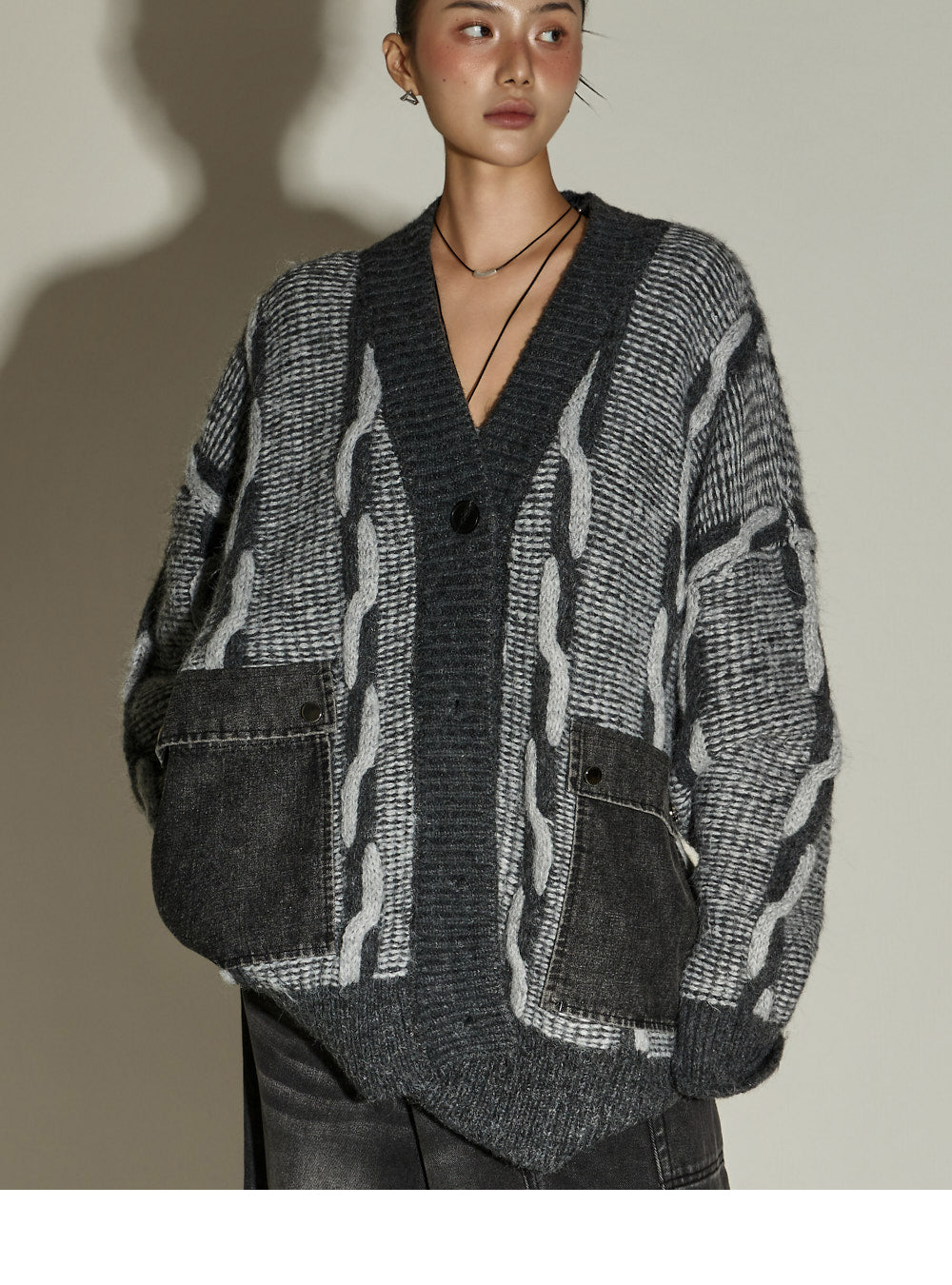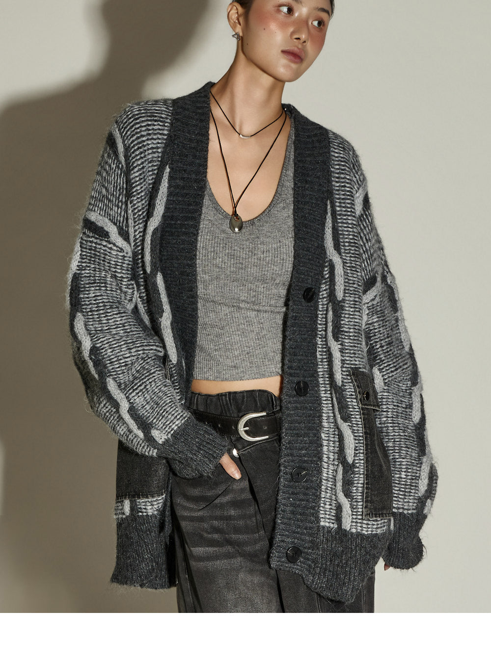 The loose-fitting silhouette features a twisted color blocking for a stylish touch,