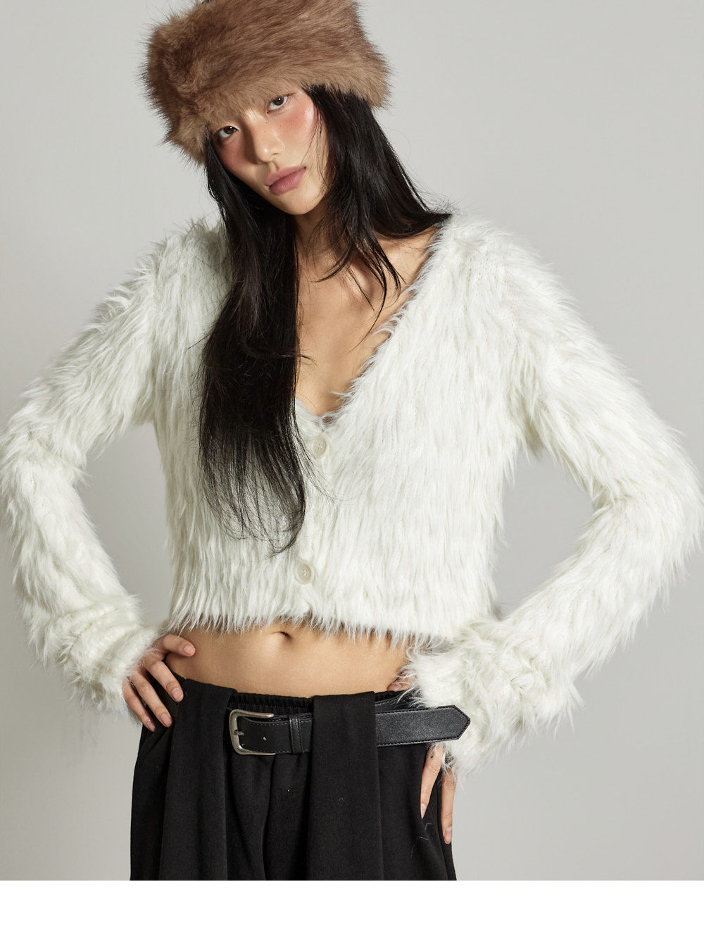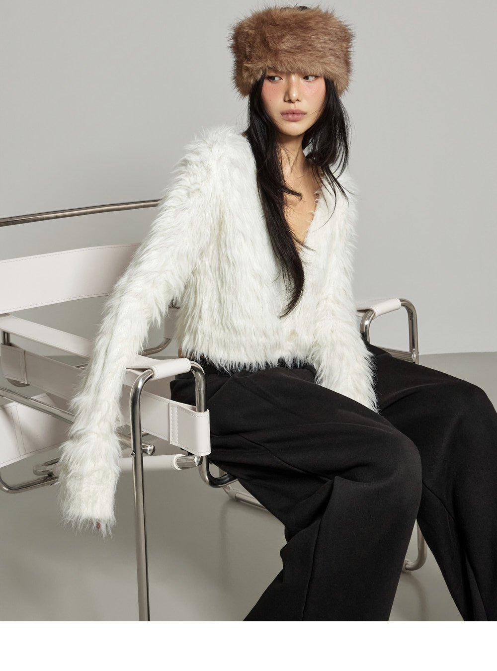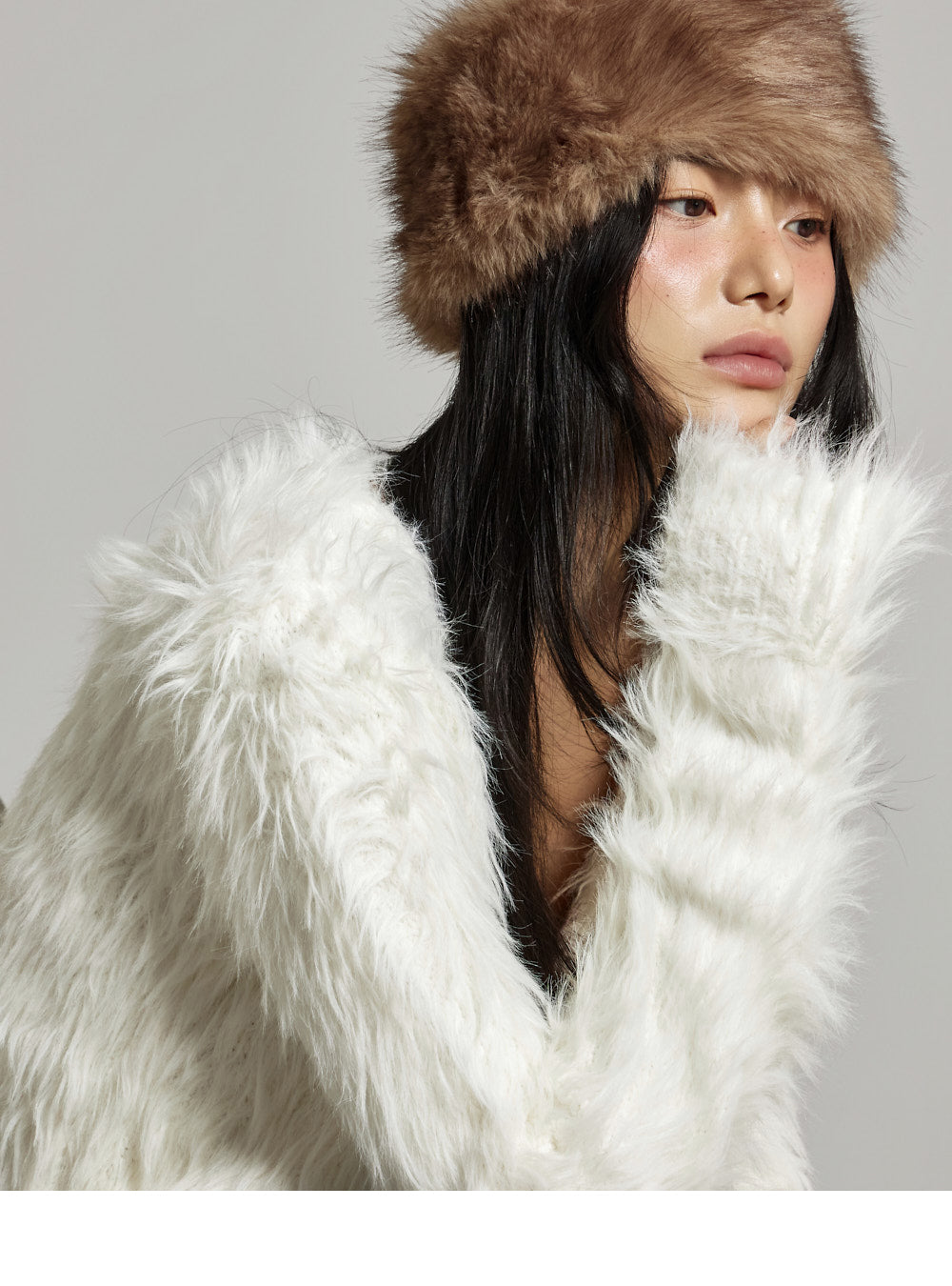 The nylon material is blended with angora texture, creating a soft and cozy feel.