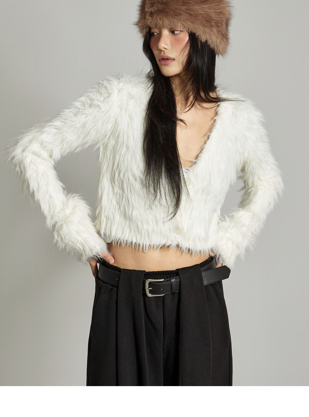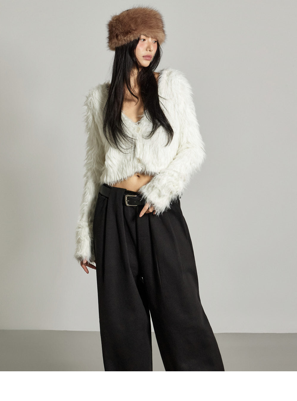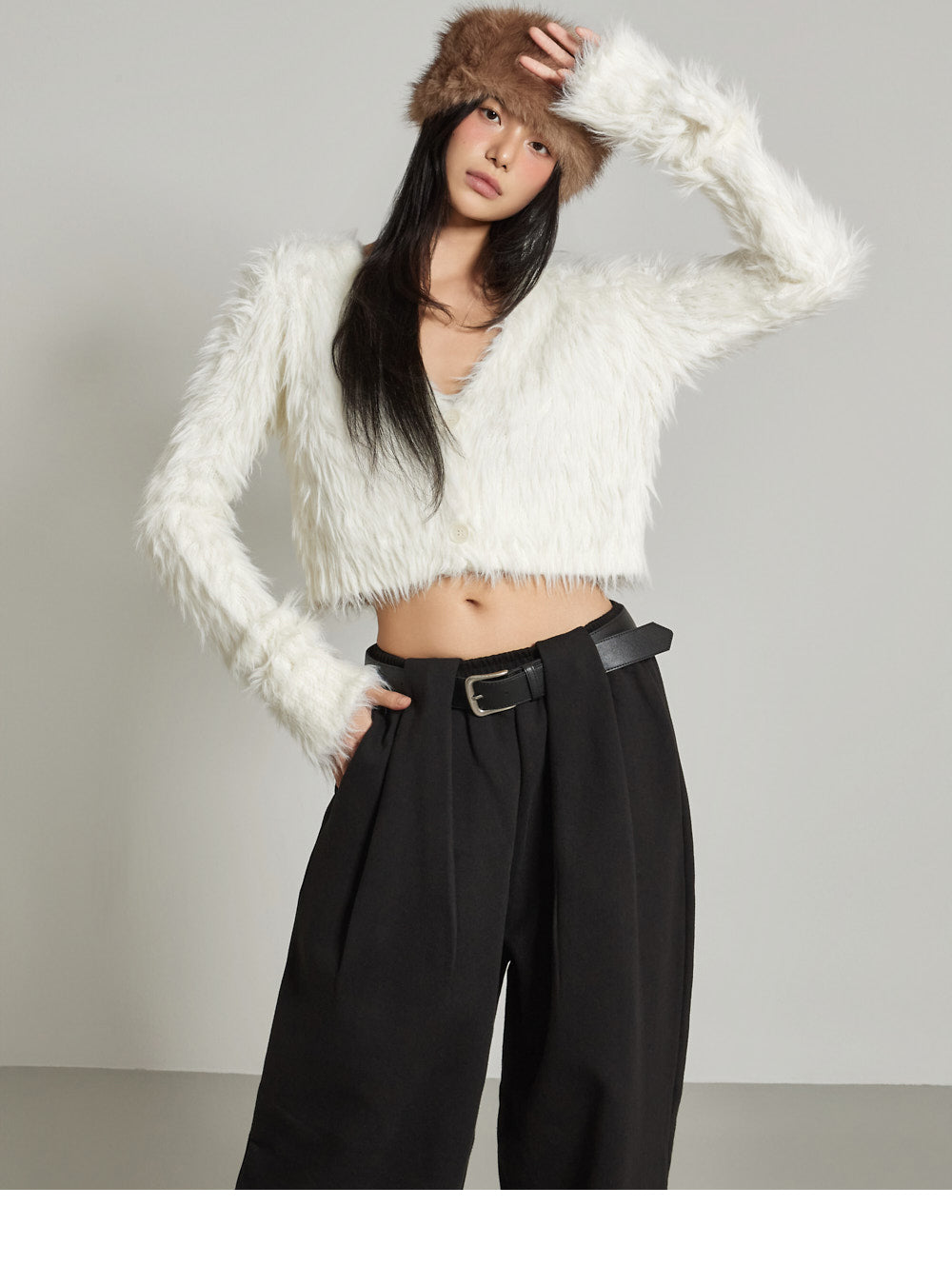 The nylon material is blended with angora texture, creating a soft and cozy feel.