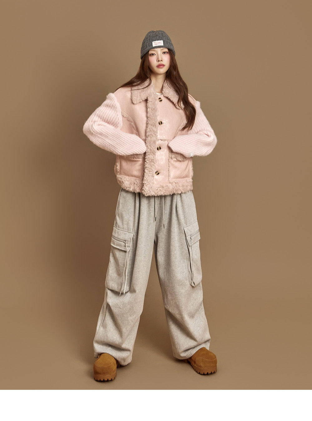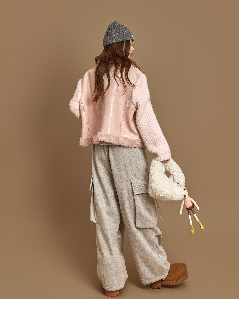 The pocket plate accents and two-tone knit sleeves create a lovely yet unique look.
