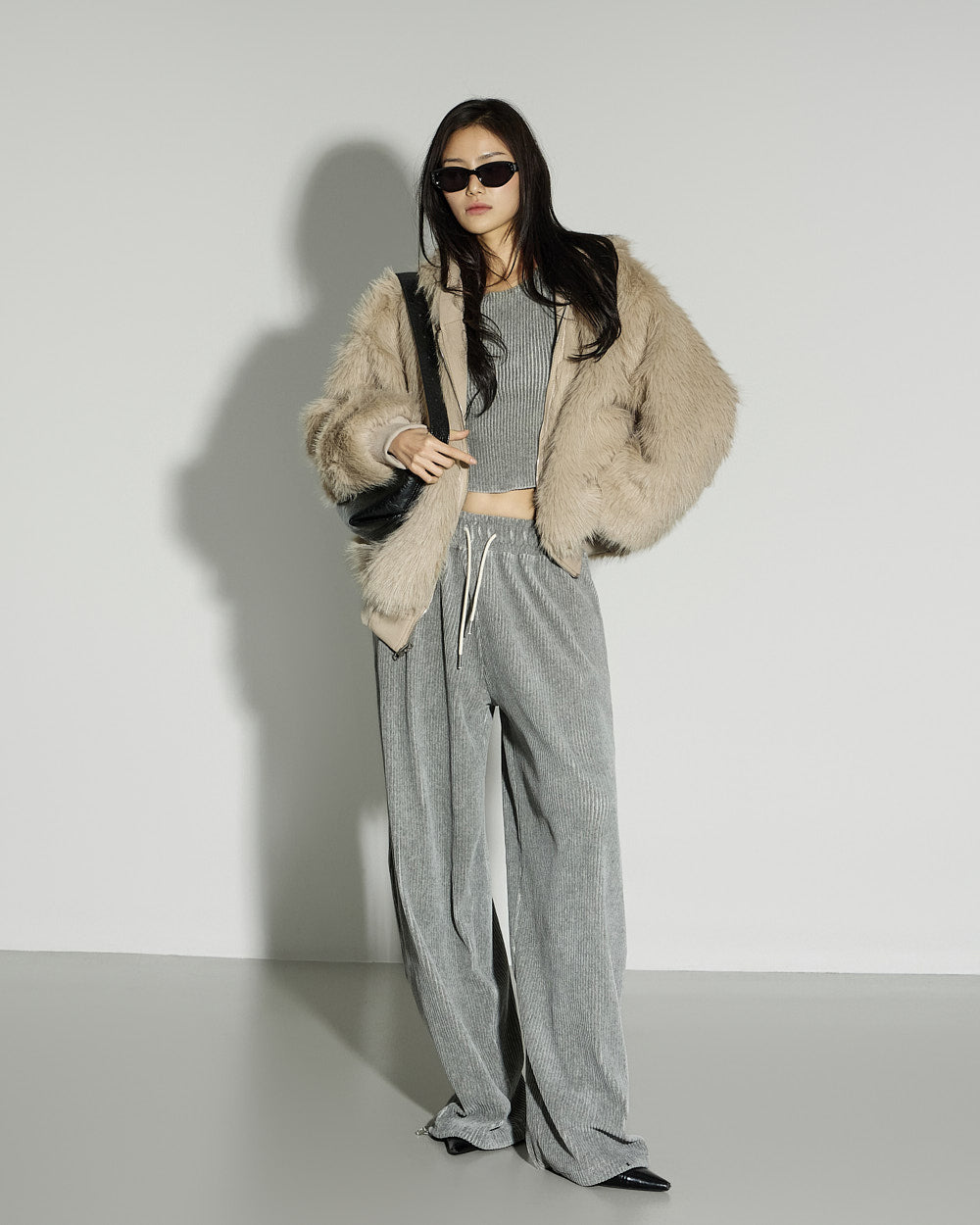 and the front zipper closure and two side pockets add practicality to this jumper.