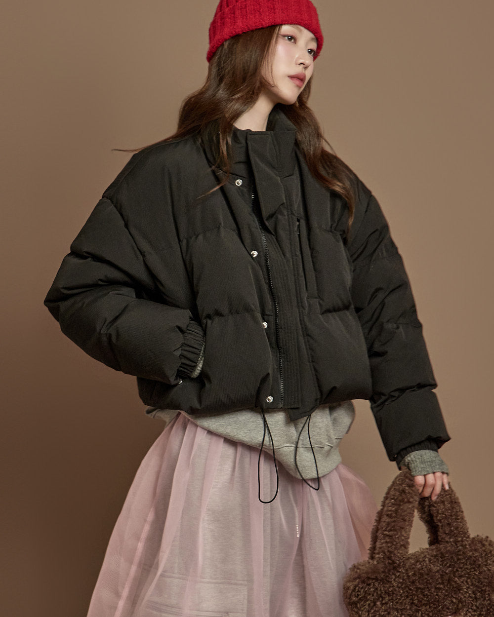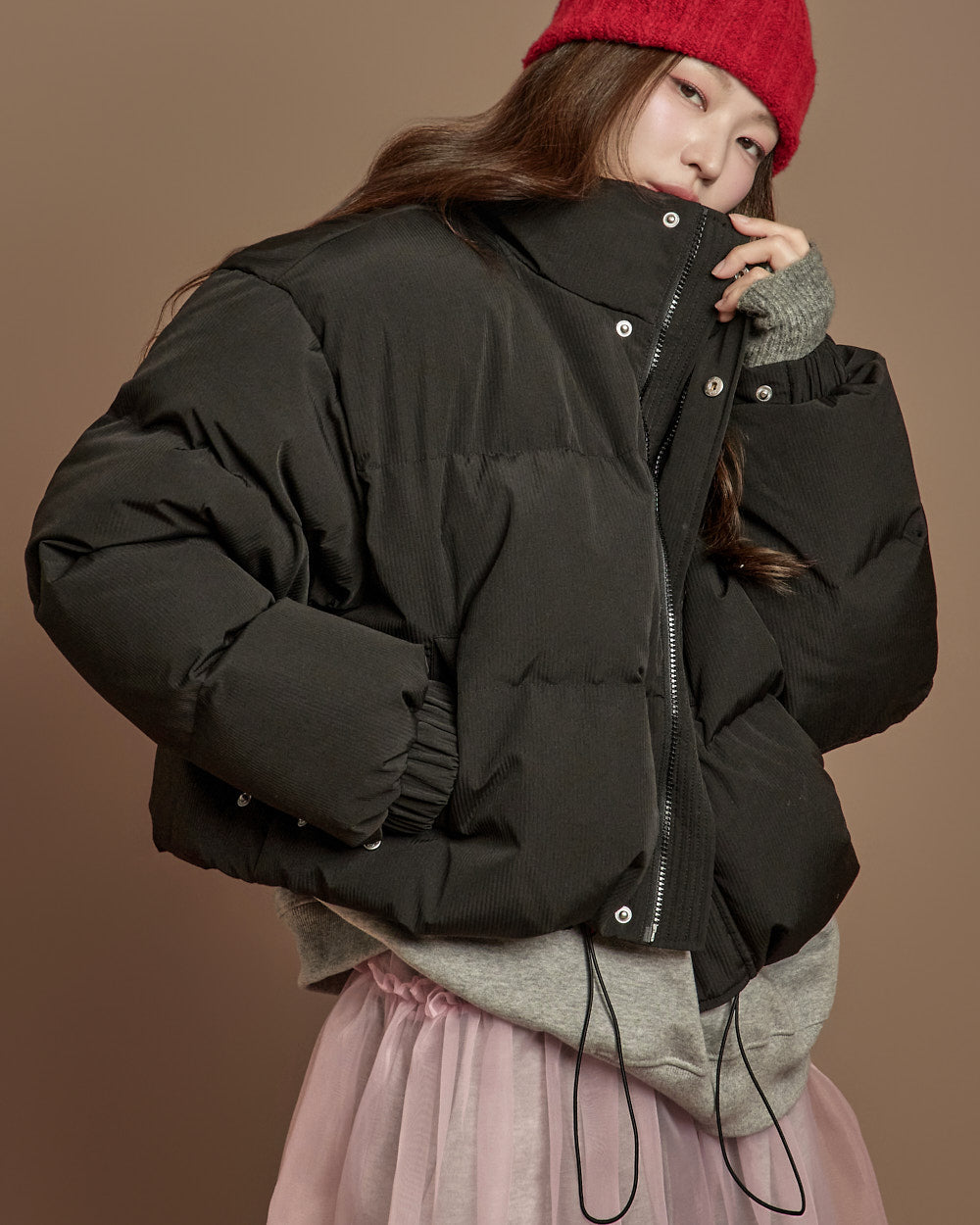 Buttons and shirring on the sleeves keep out the cold wind for added warmth.