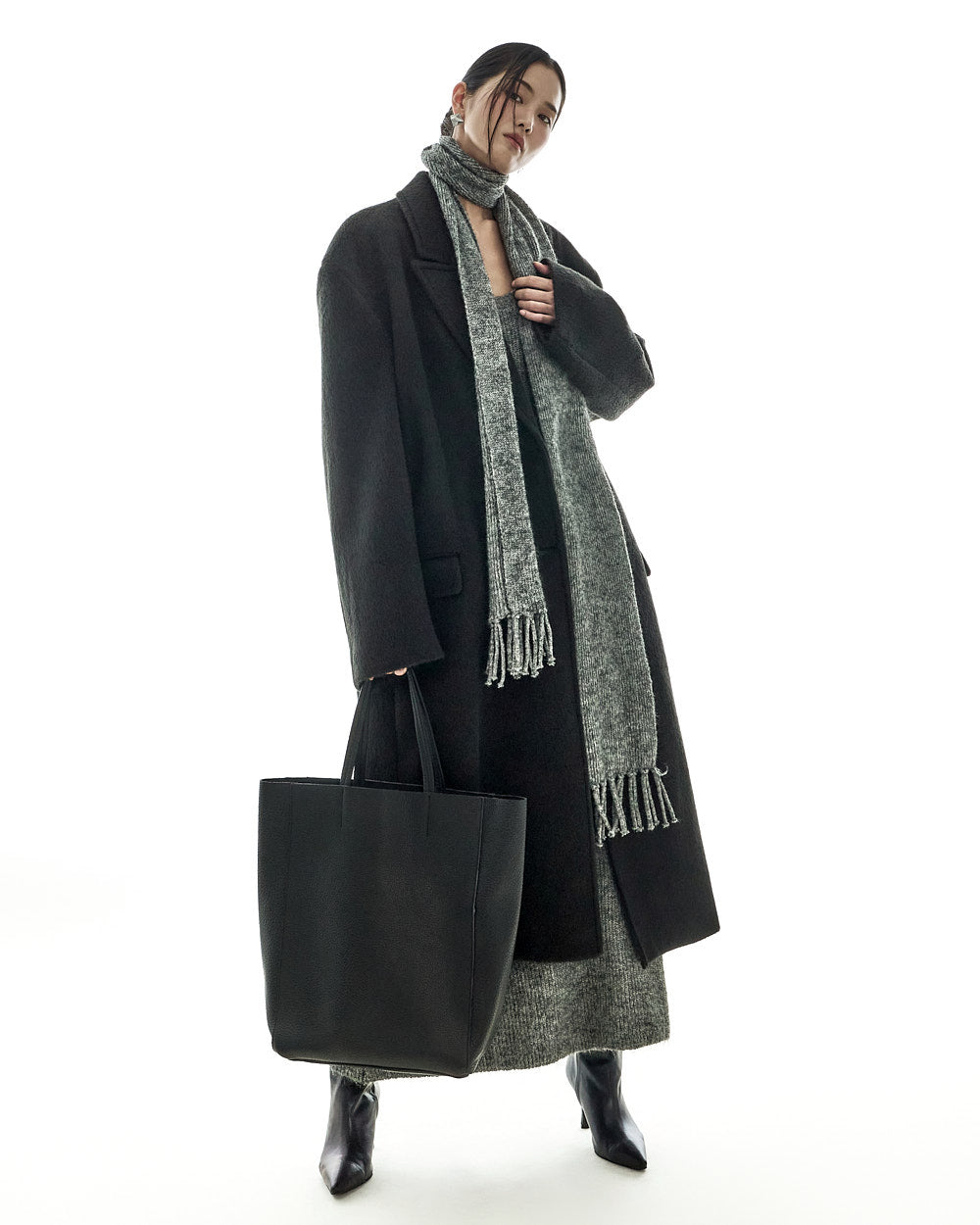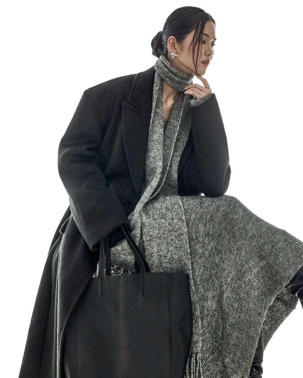 The 173cm model is wearing size ONE in BLACK.
