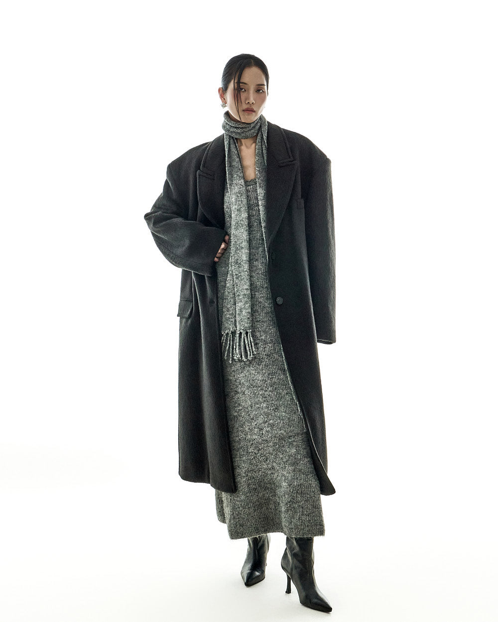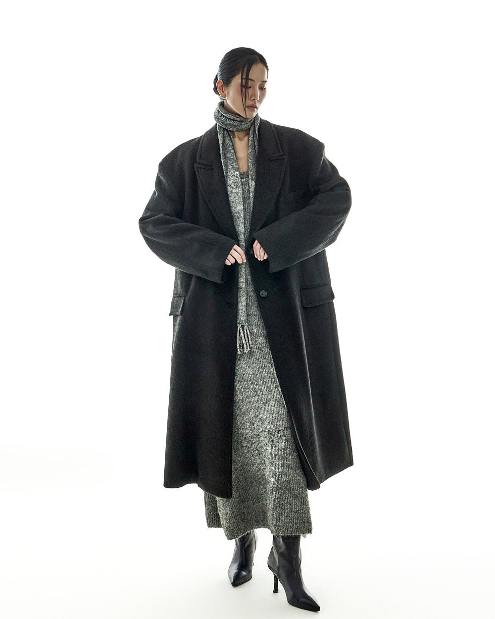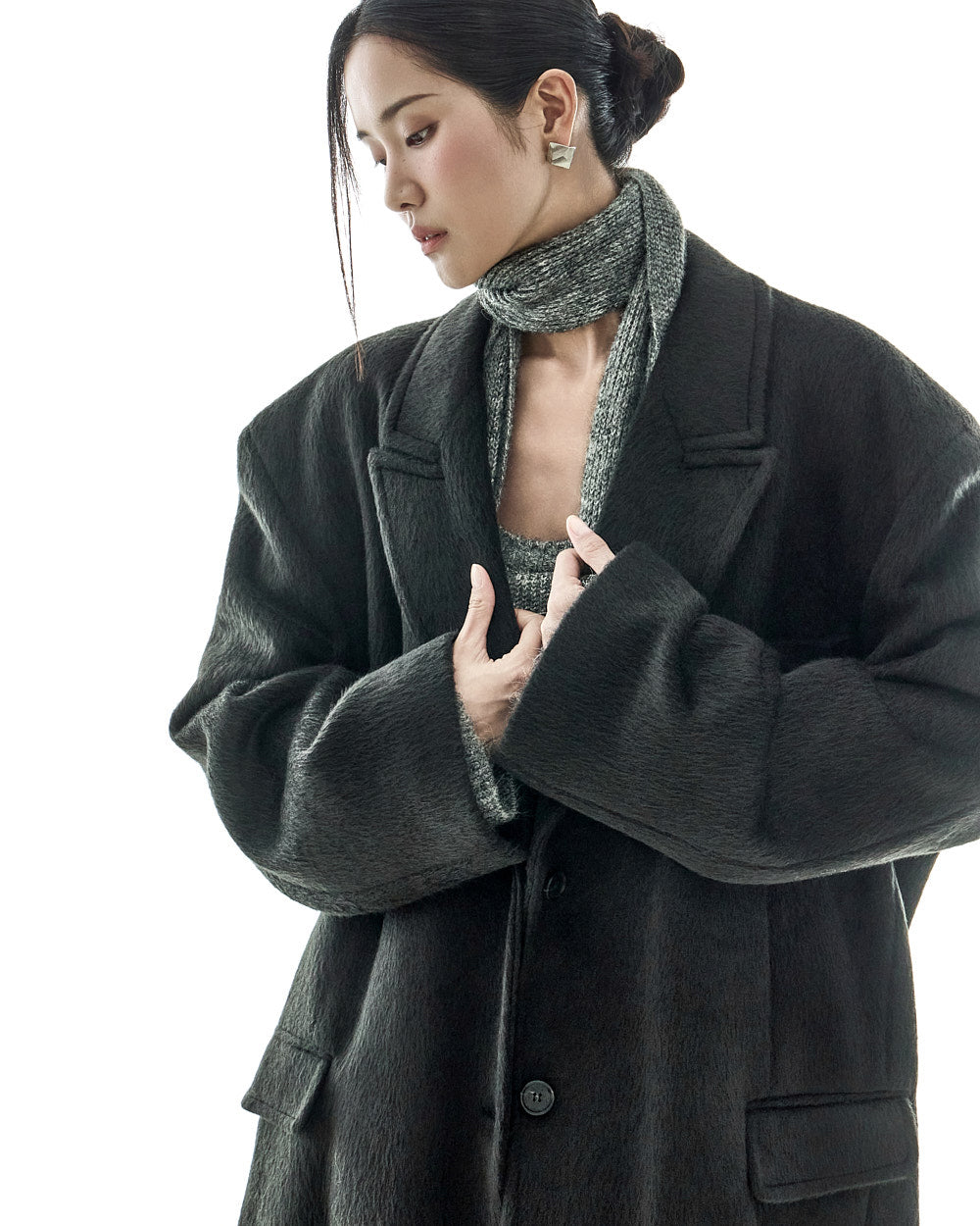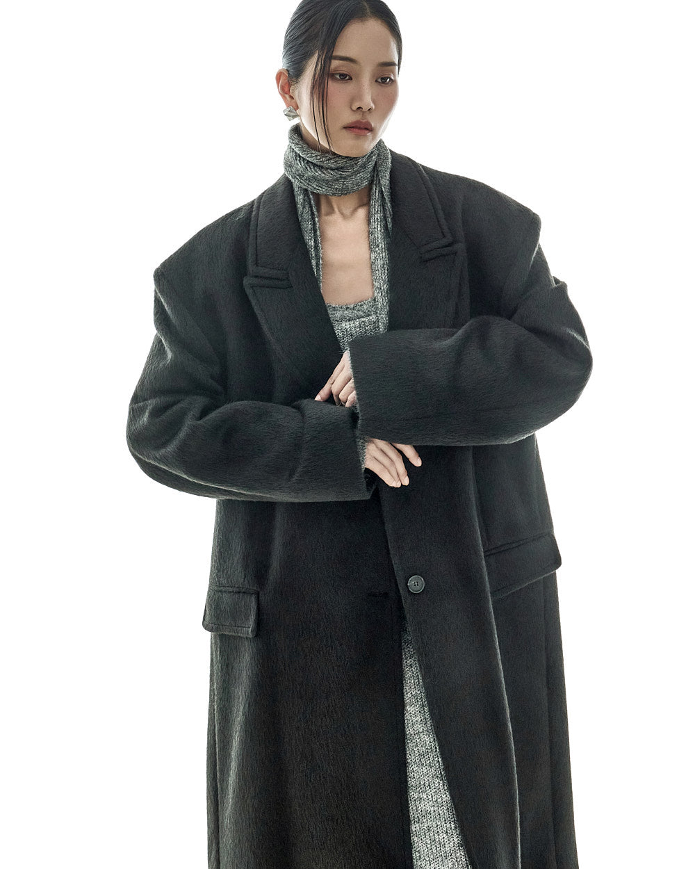The oversized silhouette, with its tailored collar and shoulder pads,