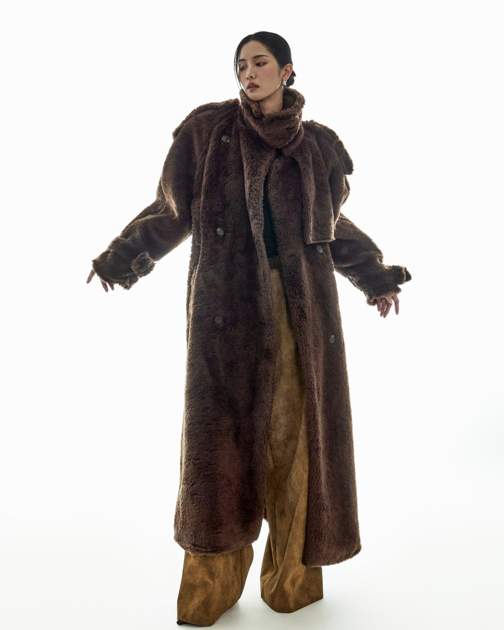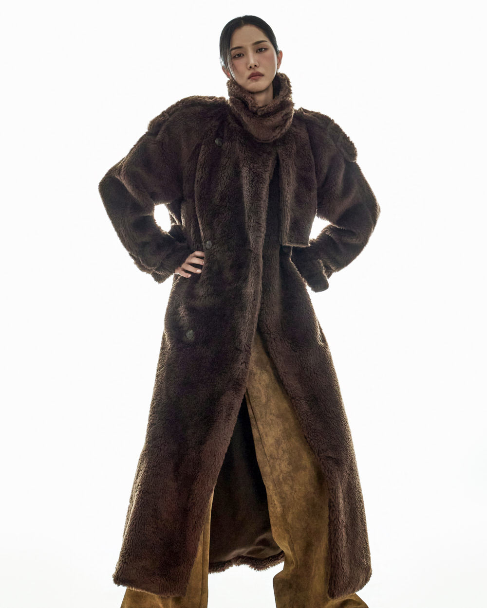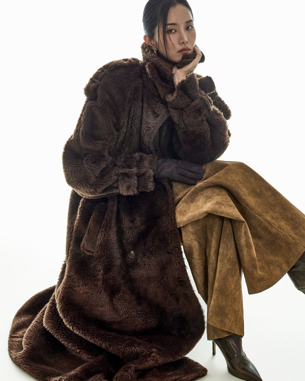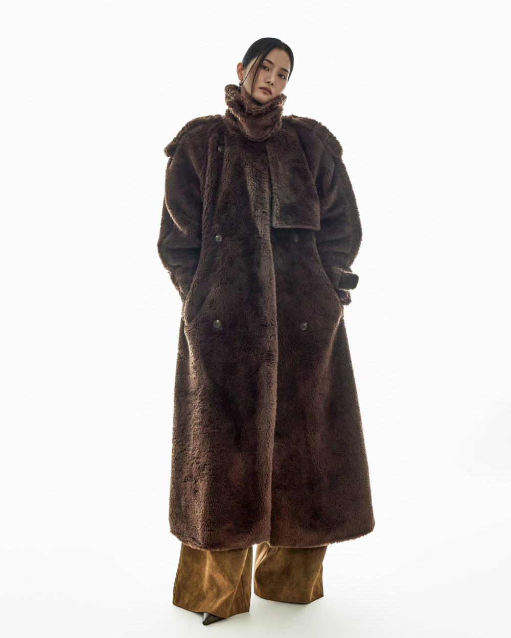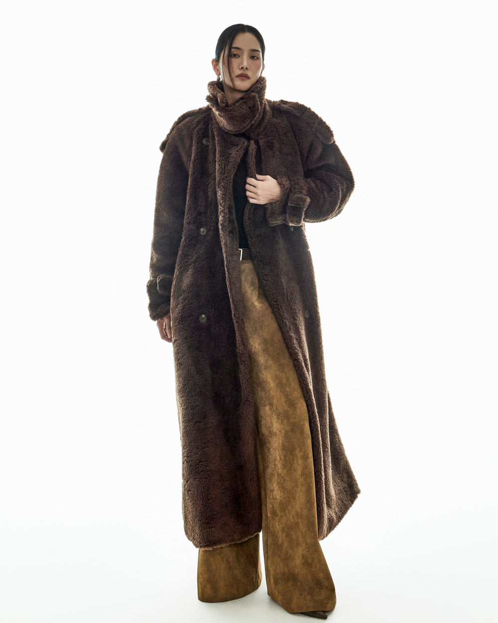 Model is 173cm tall and wearing size ONE, DARK BROWN.