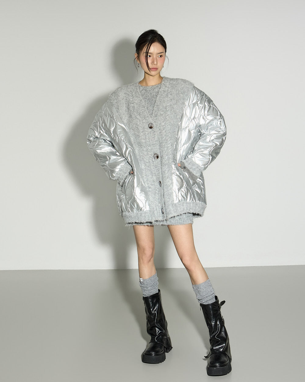 The unique design, combining quilting and knit, is a focal point.