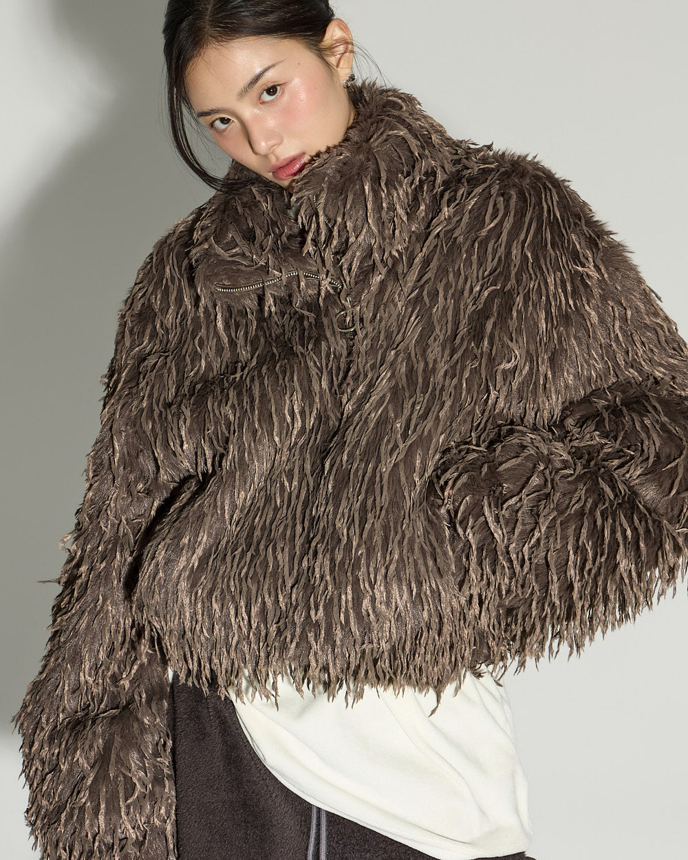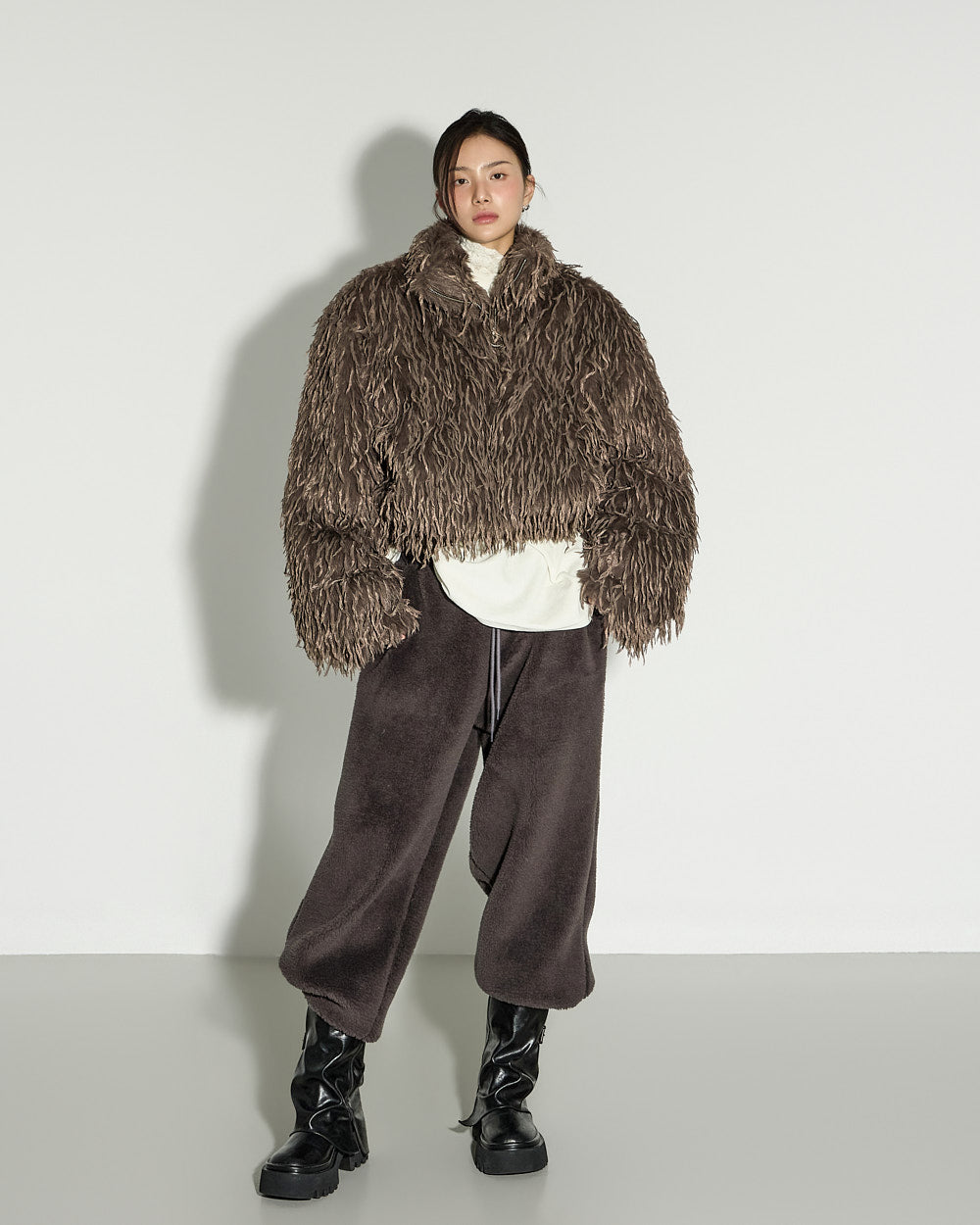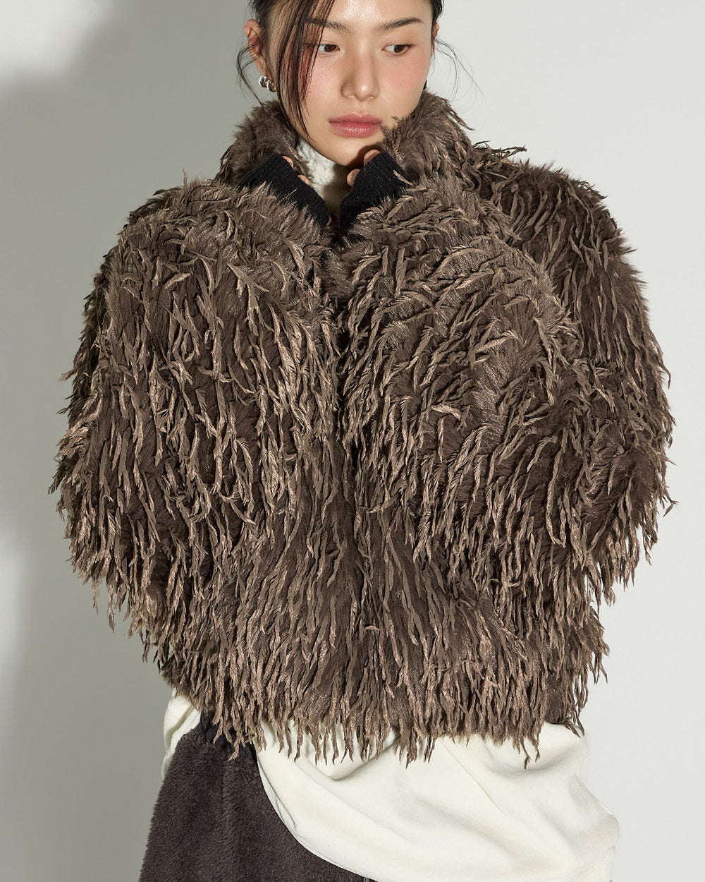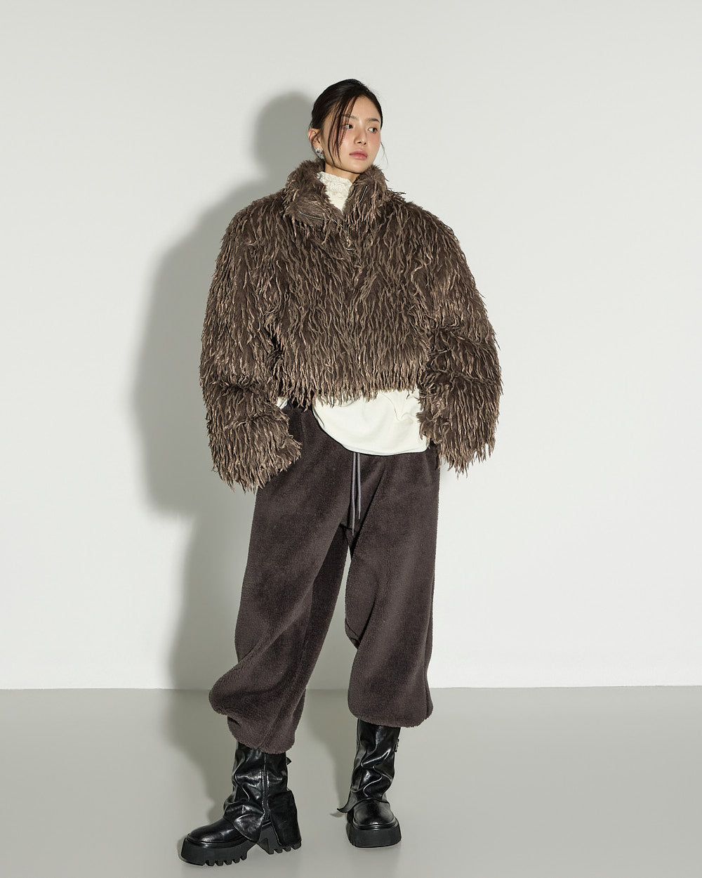 while banding at the sleeve cuffs and hem adds a voluminous shape.