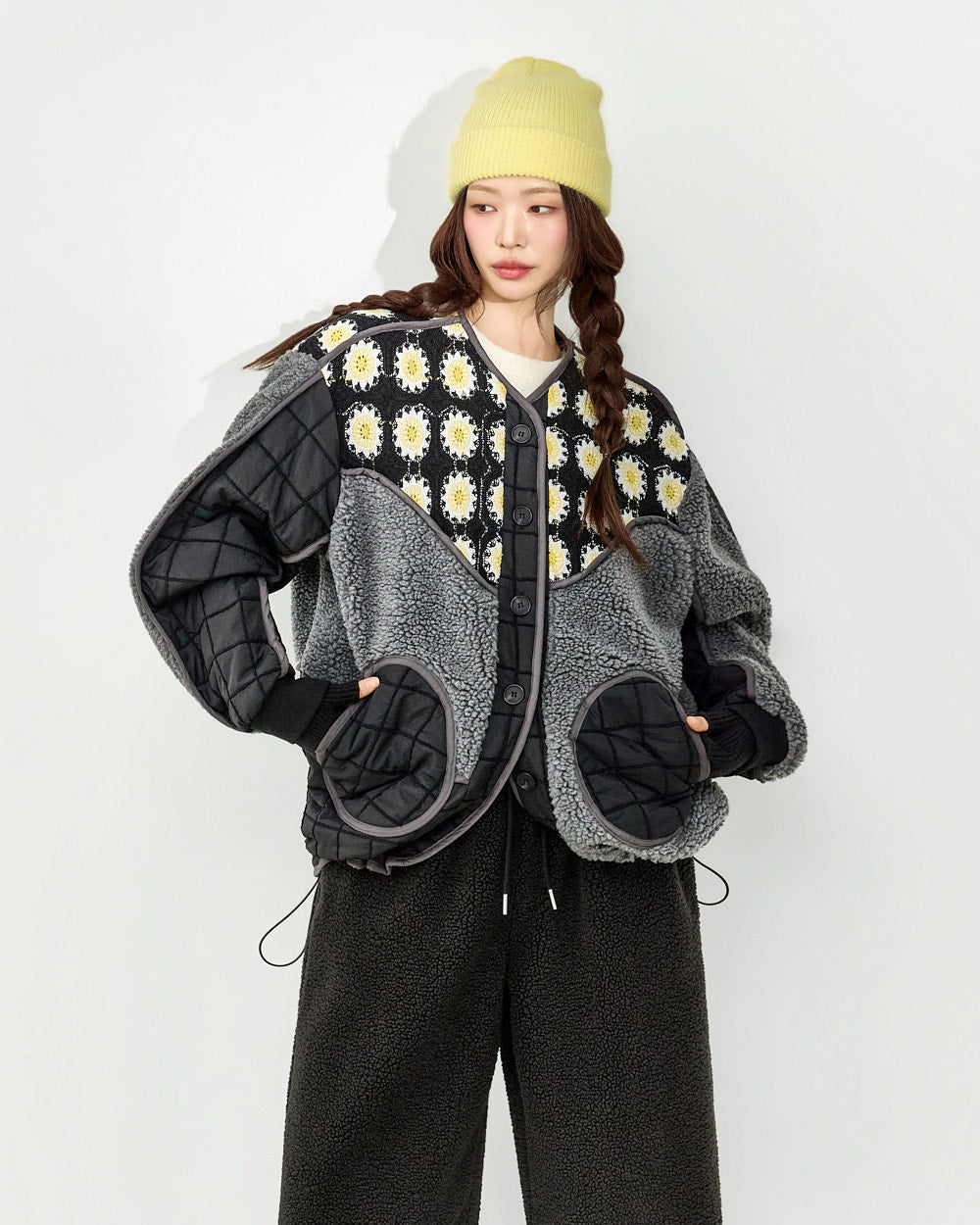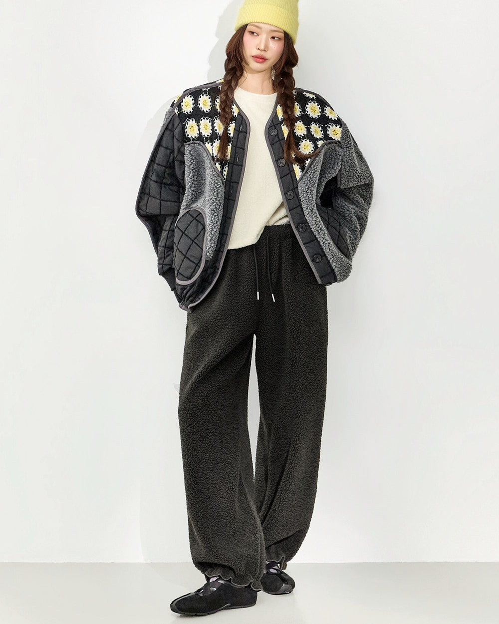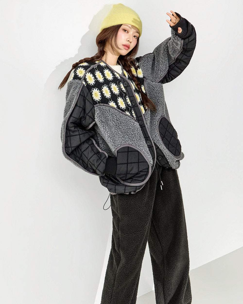 This casual floral sherpa mix jumper is a perfect accent for everyday casual looks.