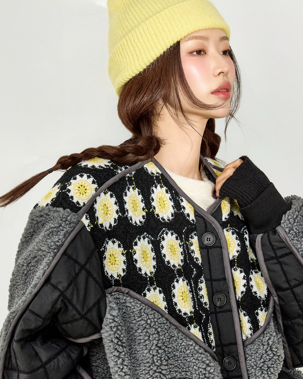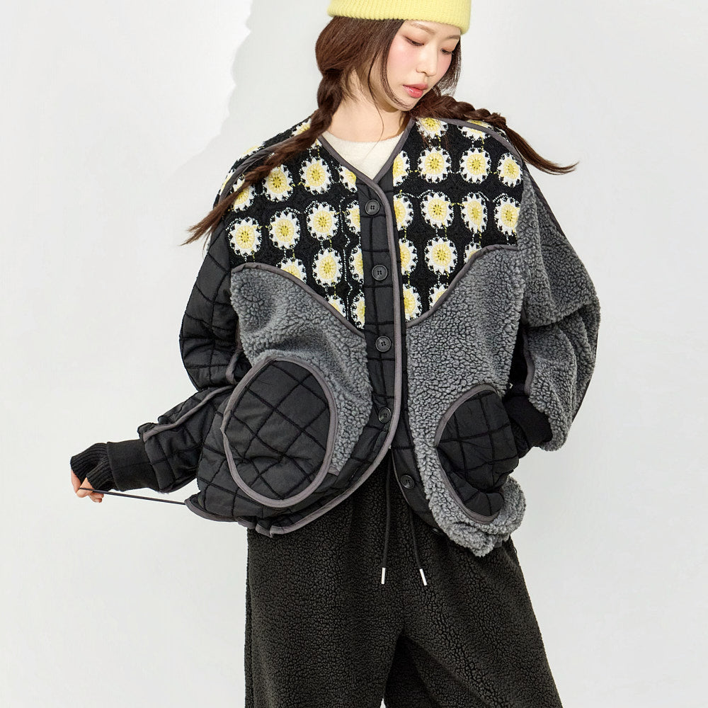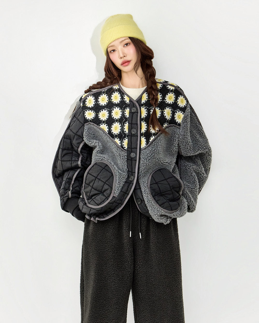 This casual floral sherpa mix jumper is a perfect accent for everyday casual looks.