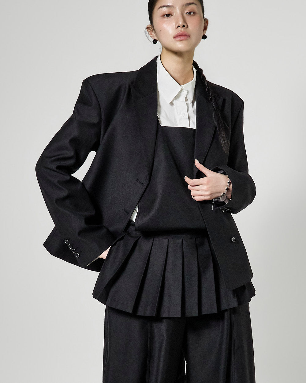 The 171cm model is wearing size ONE in BLACK.