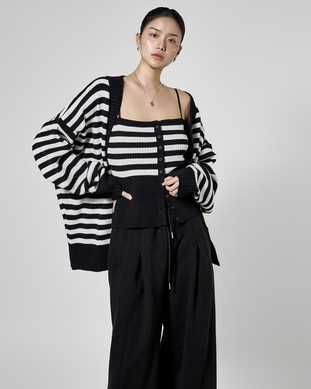 while the cardigan has a loose fit,