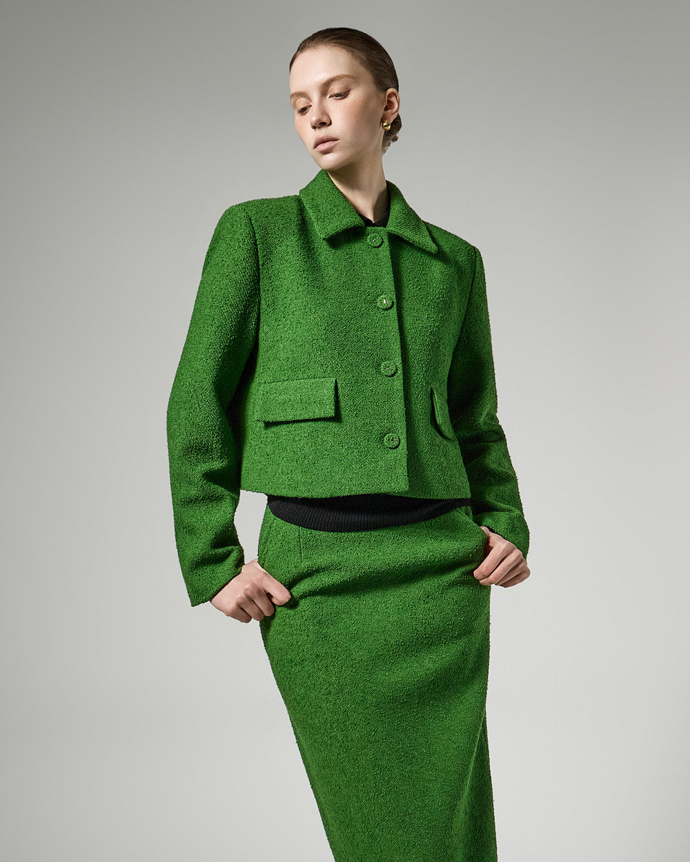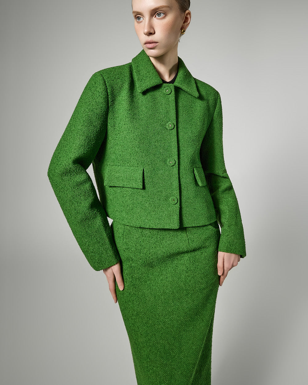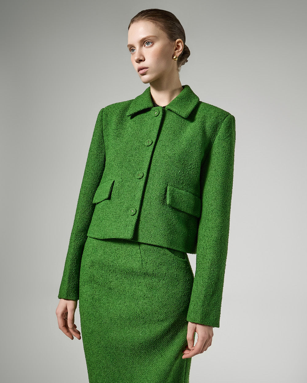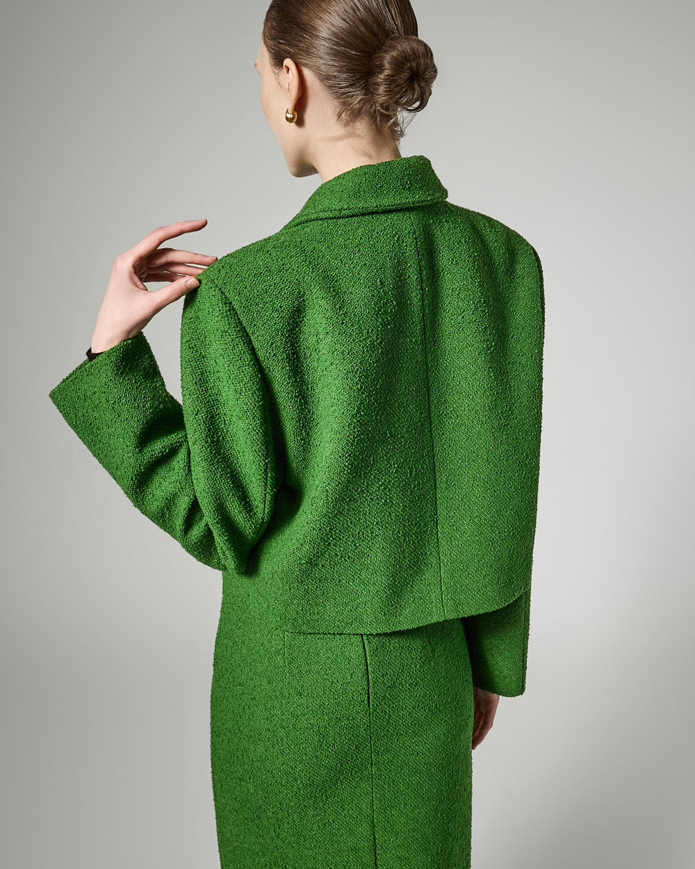 The short jacket design with a fitted silhouette