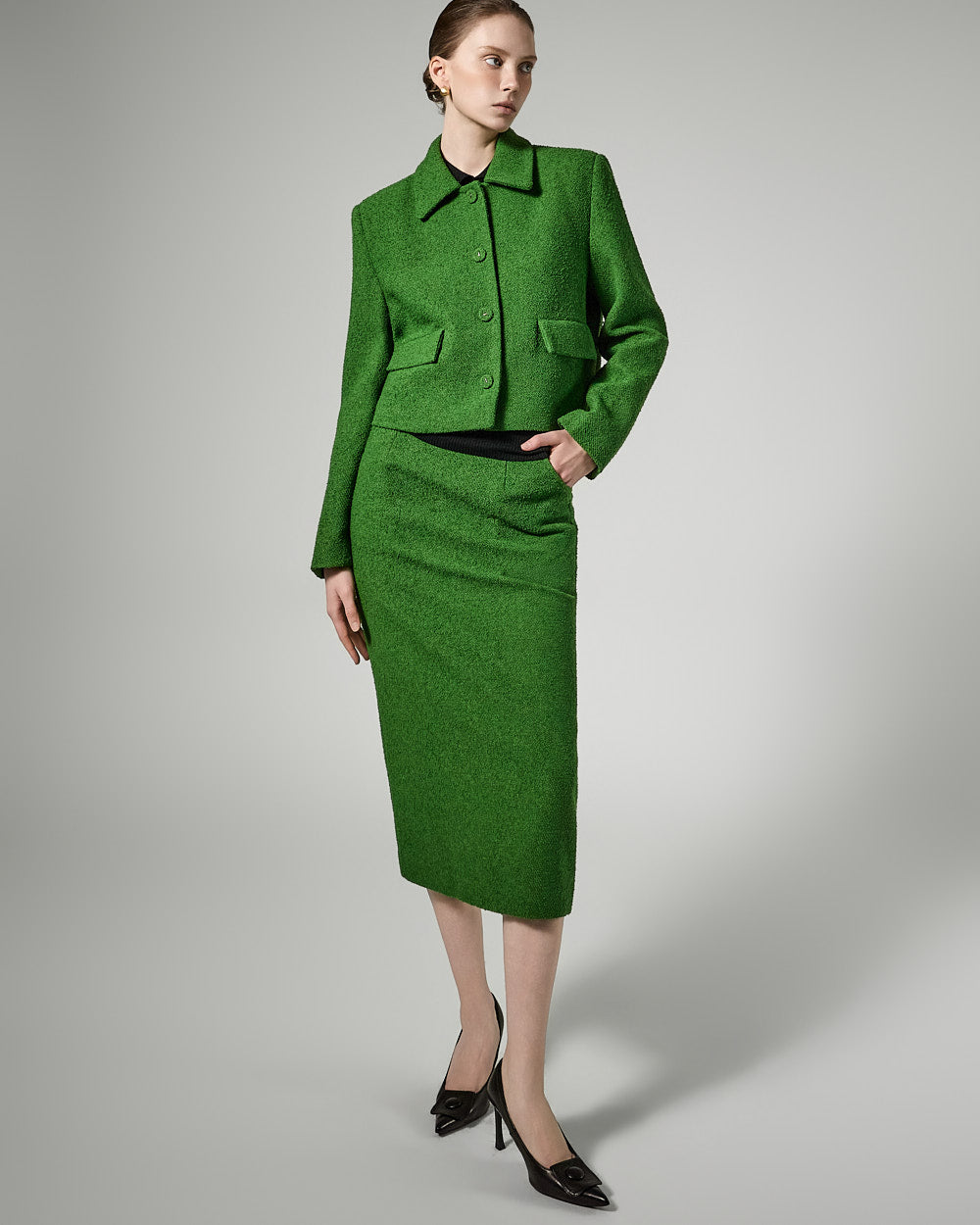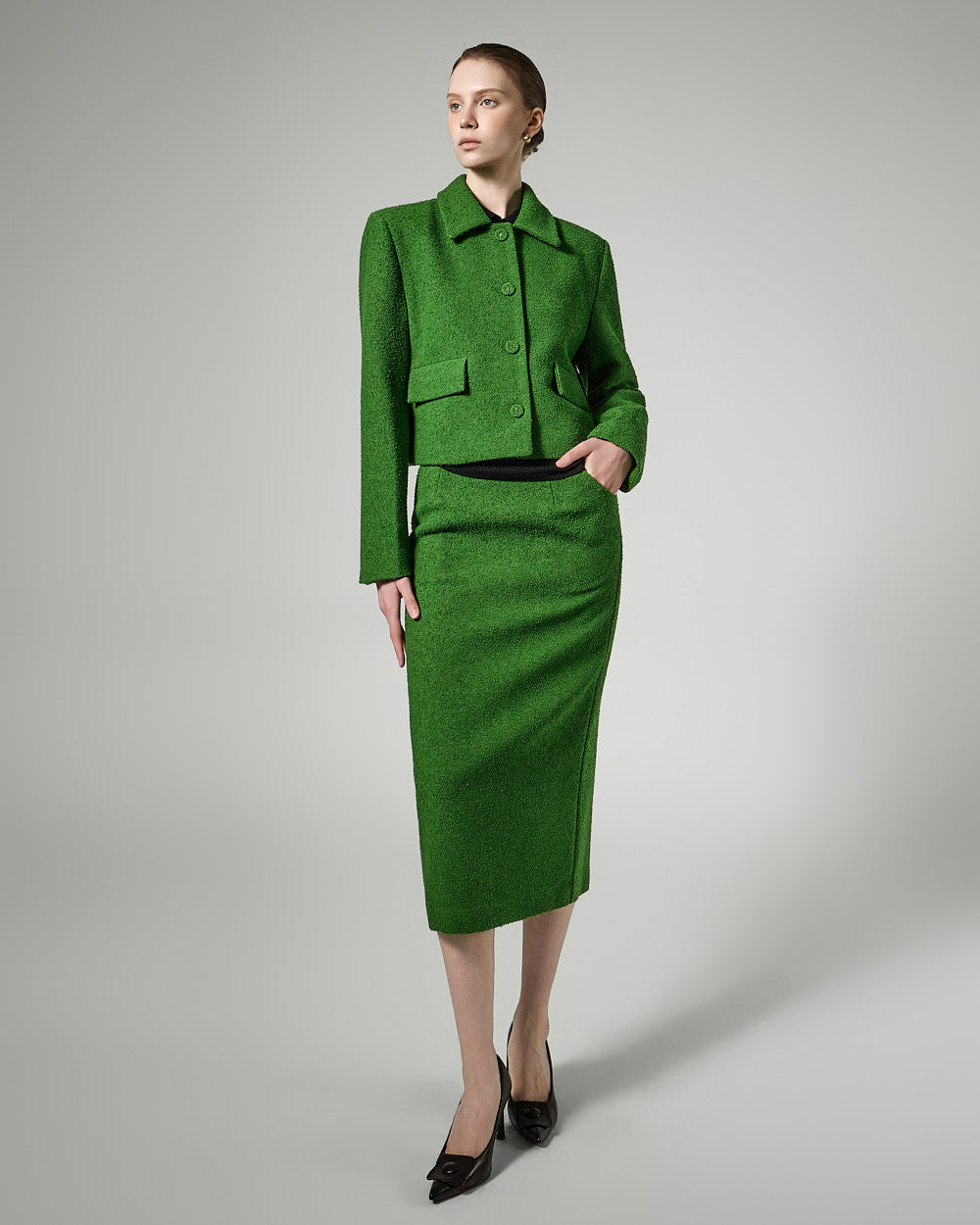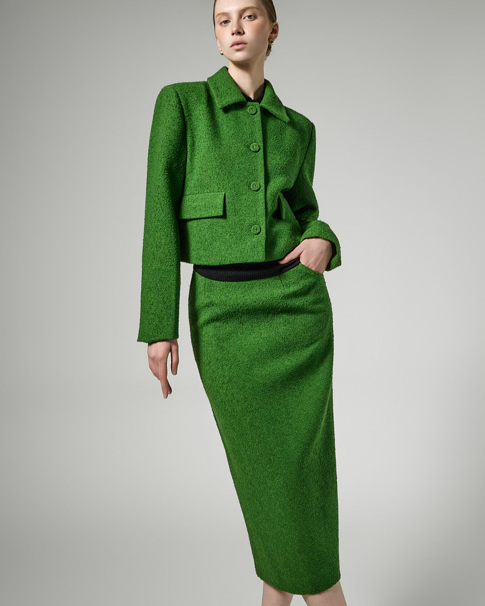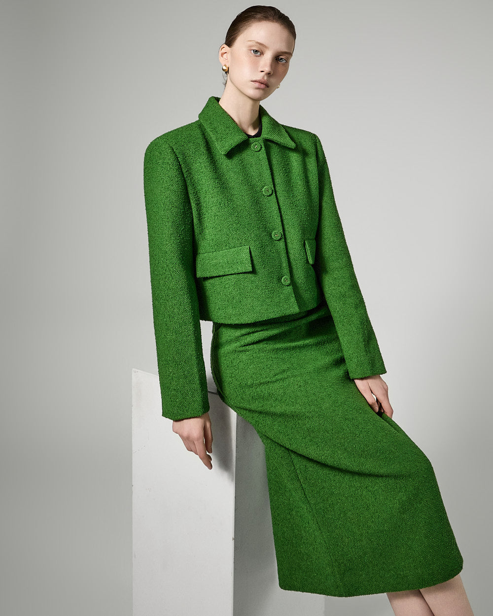The short jacket design with a fitted silhouette