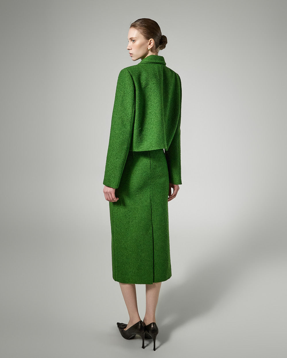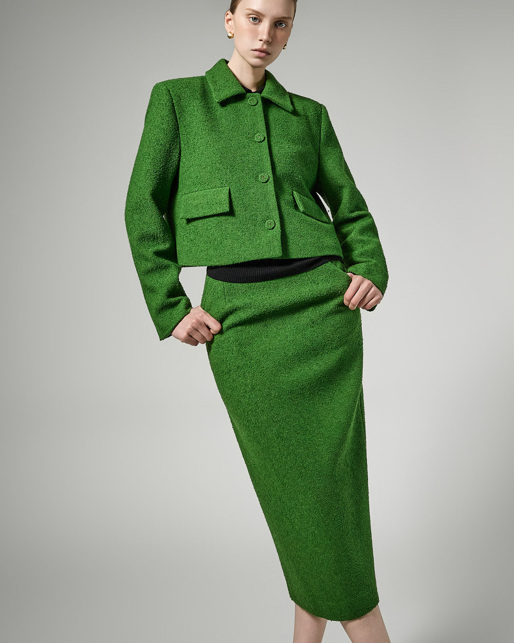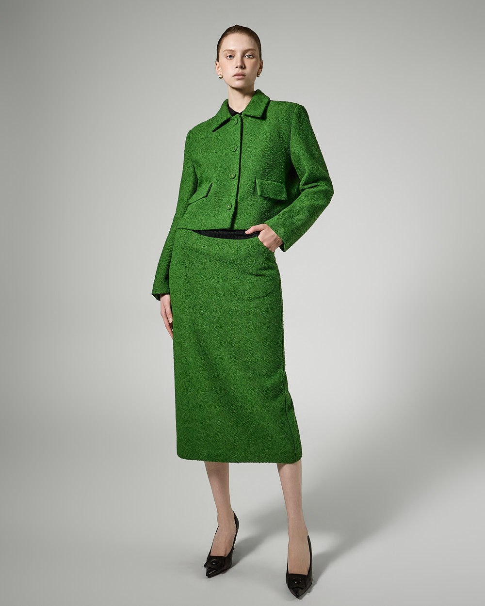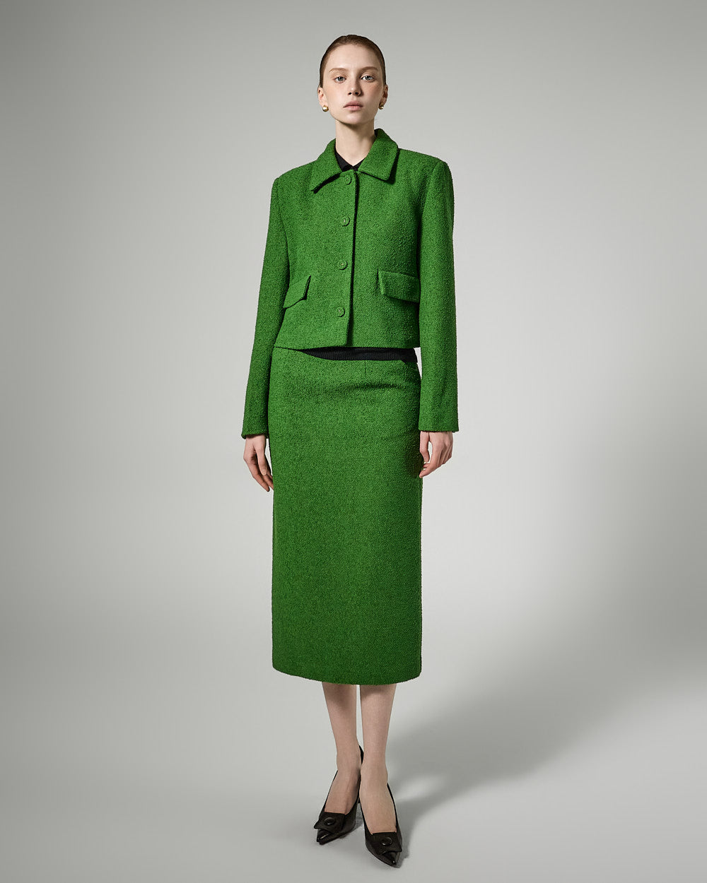 The short jacket design with a fitted silhouette