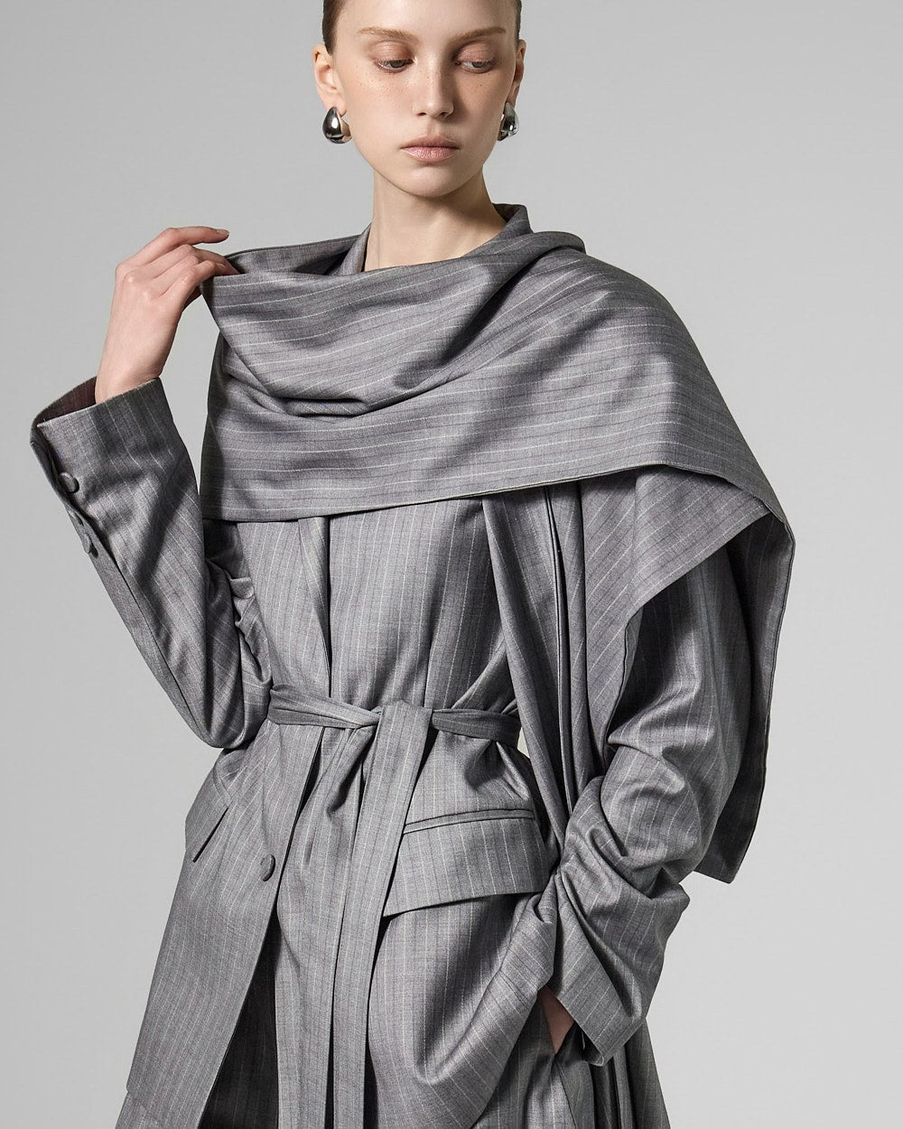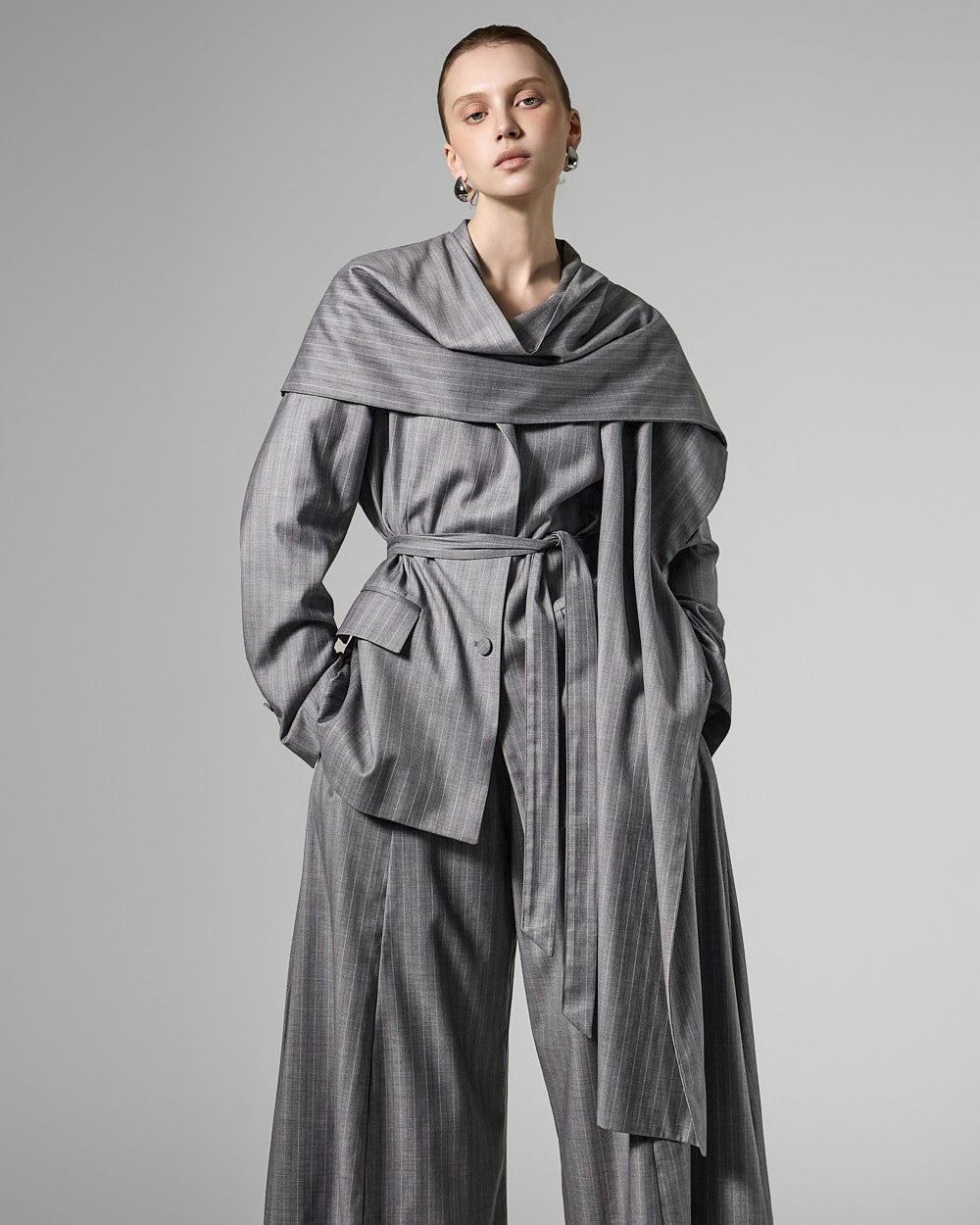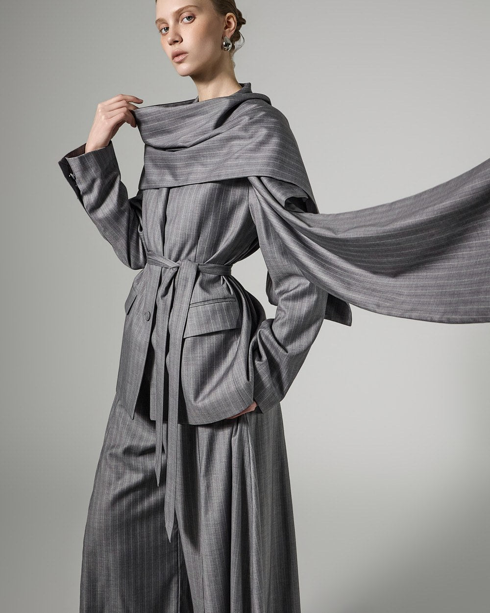 This scarf strap set jacket exudes a sophisticated and stylish vibe.