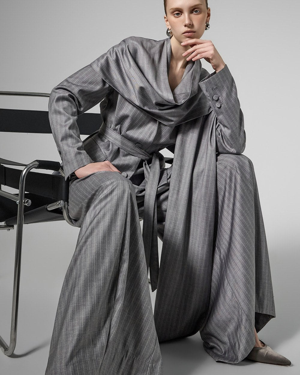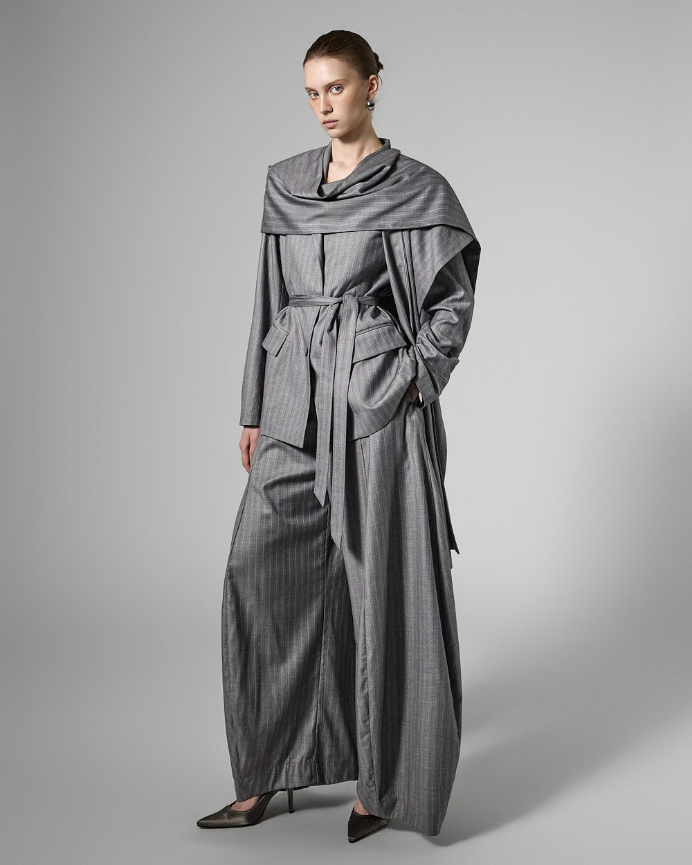 The 174cm model is wearing size ONE in GRAY.