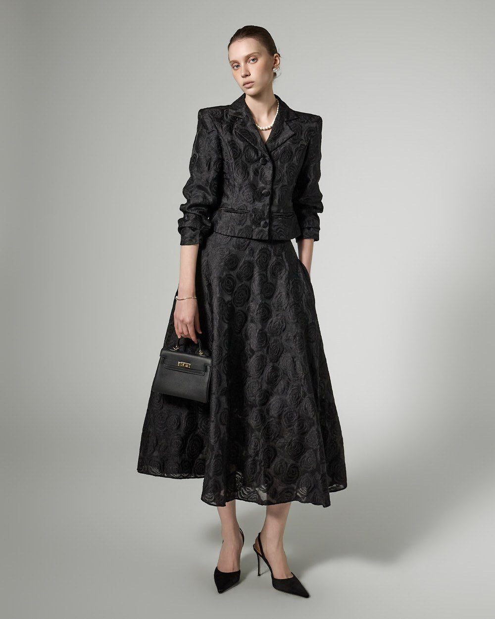 making it a versatile piece for feminine formal wear or wedding guest looks.