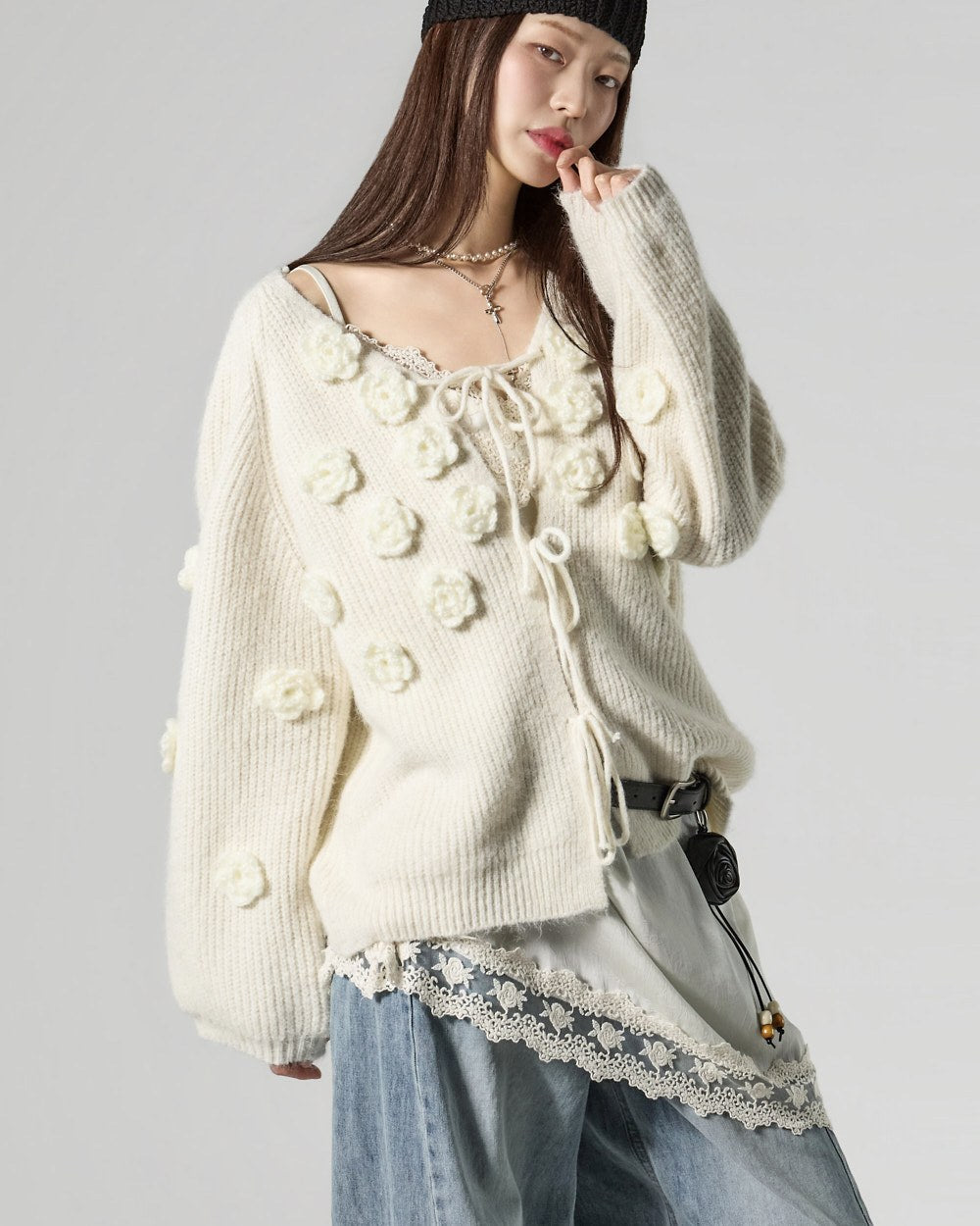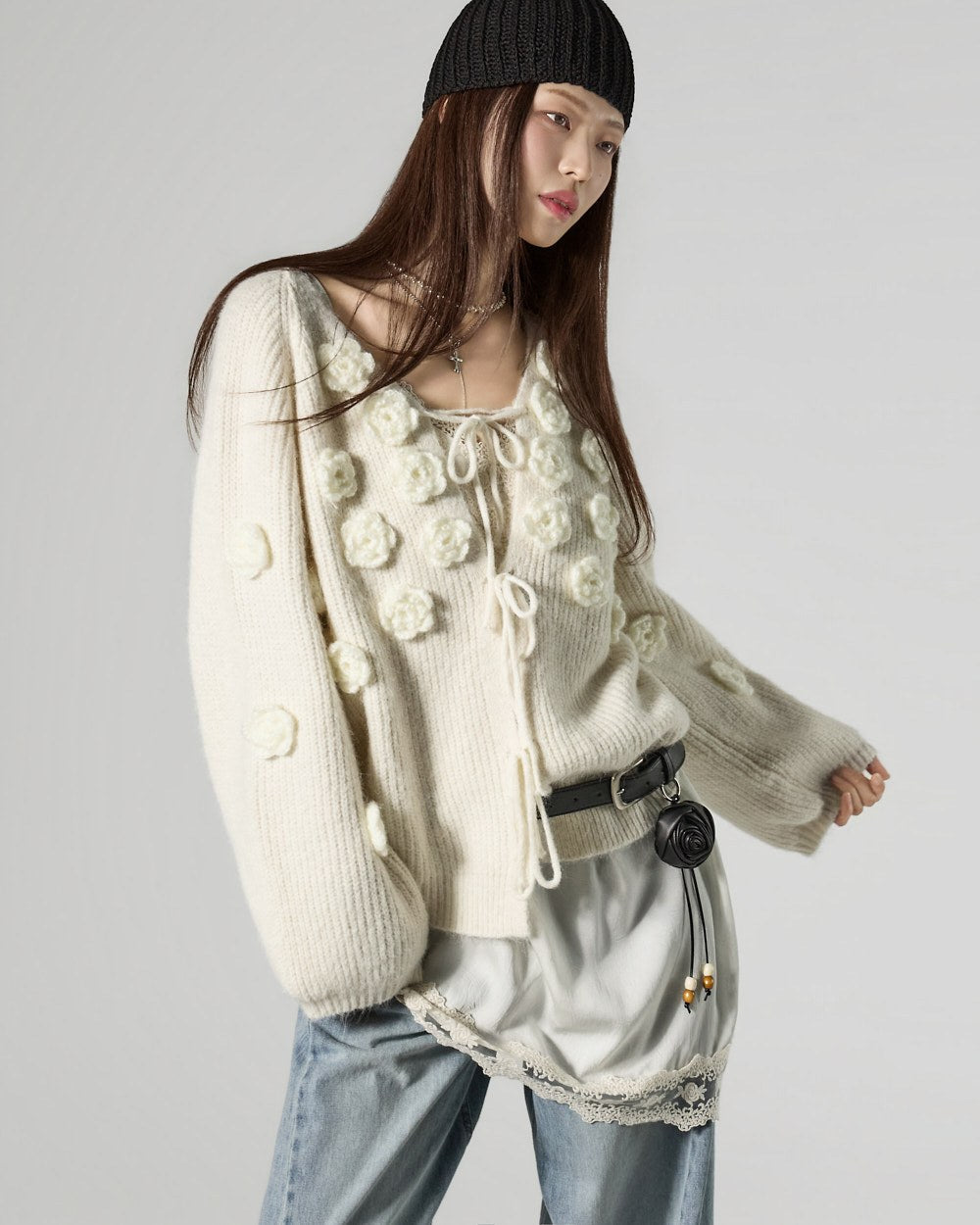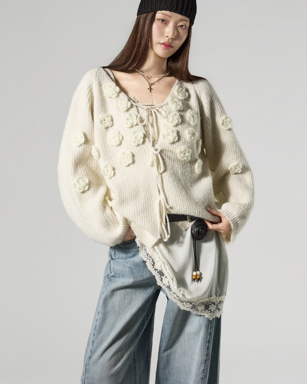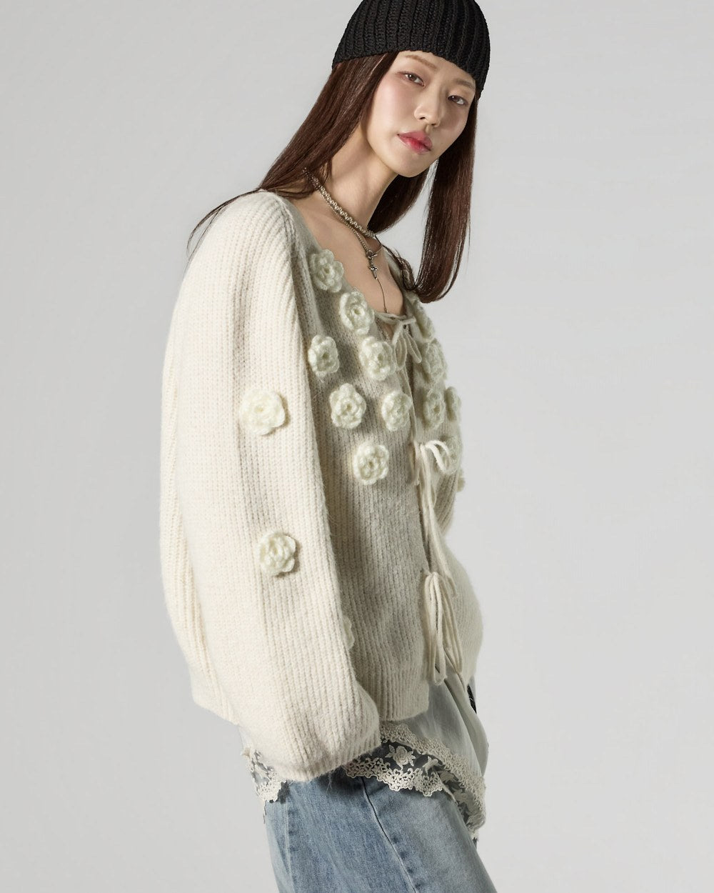 This lovely flower applique cardigan.