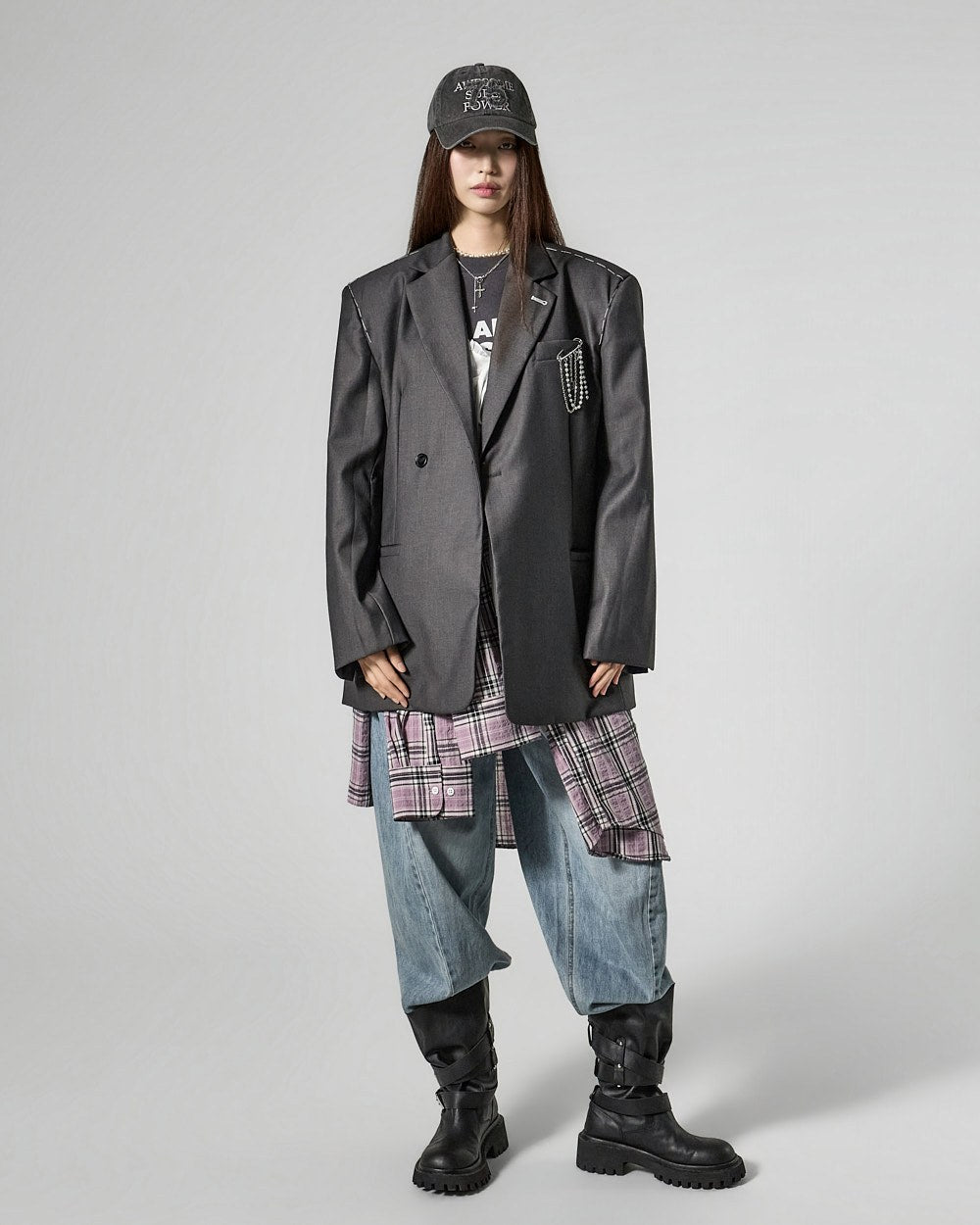 This stitch jacket exudes a stylish and sophisticated vibe.