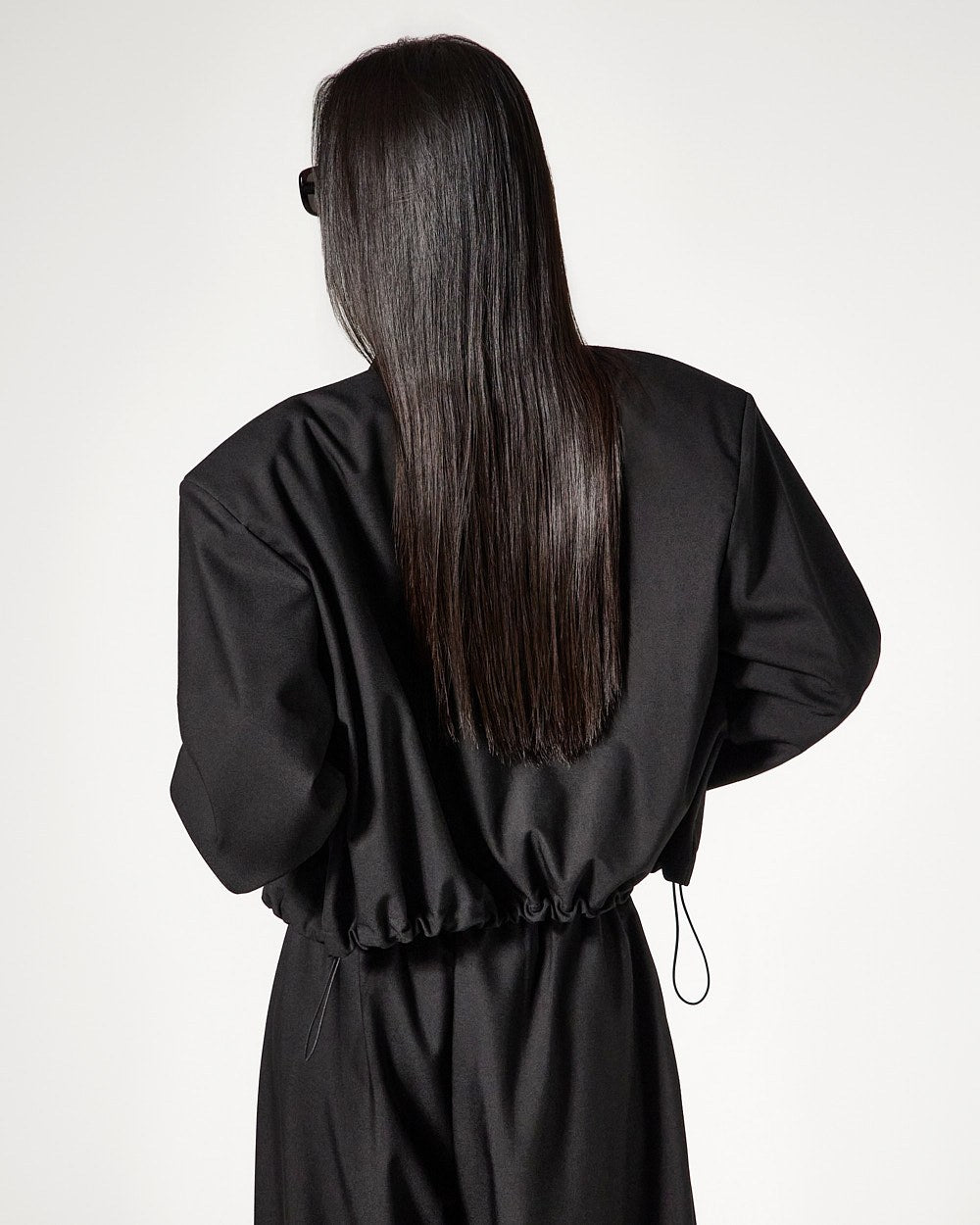 the drawstring detail at the hem allows for adjustable fit,