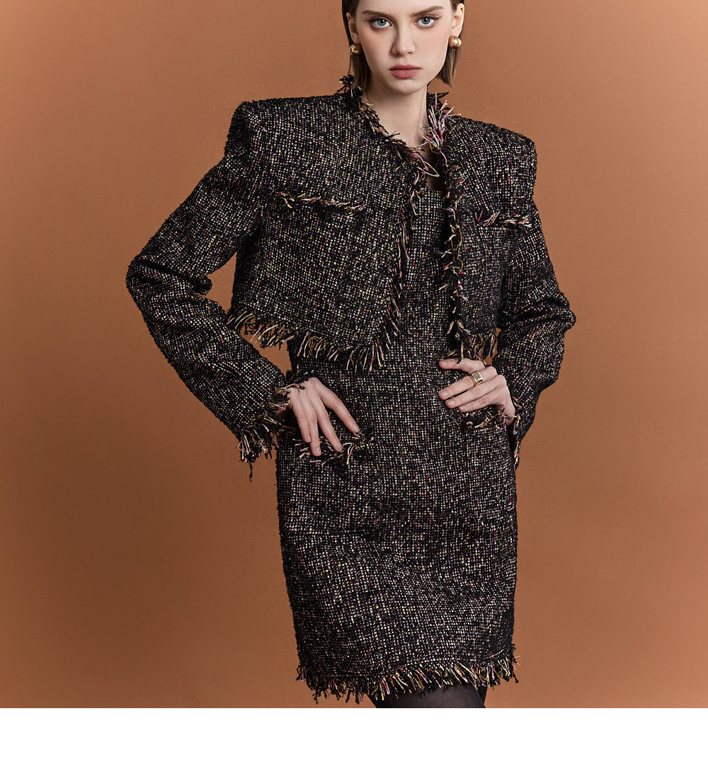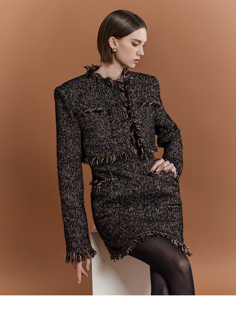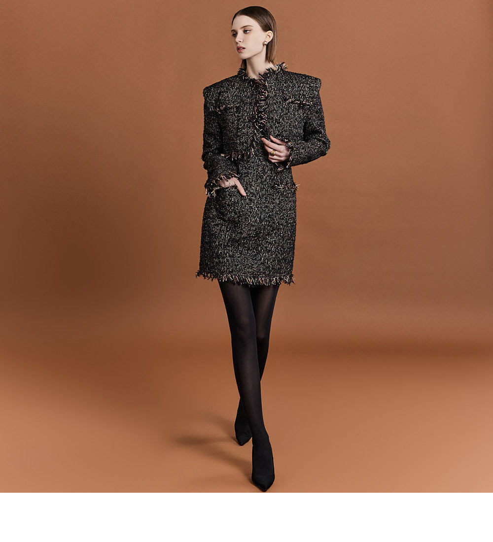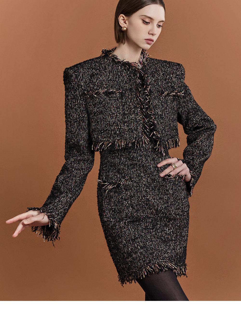 ツイード特有の魅力を際立たせ、洗練されたムードを演出します。