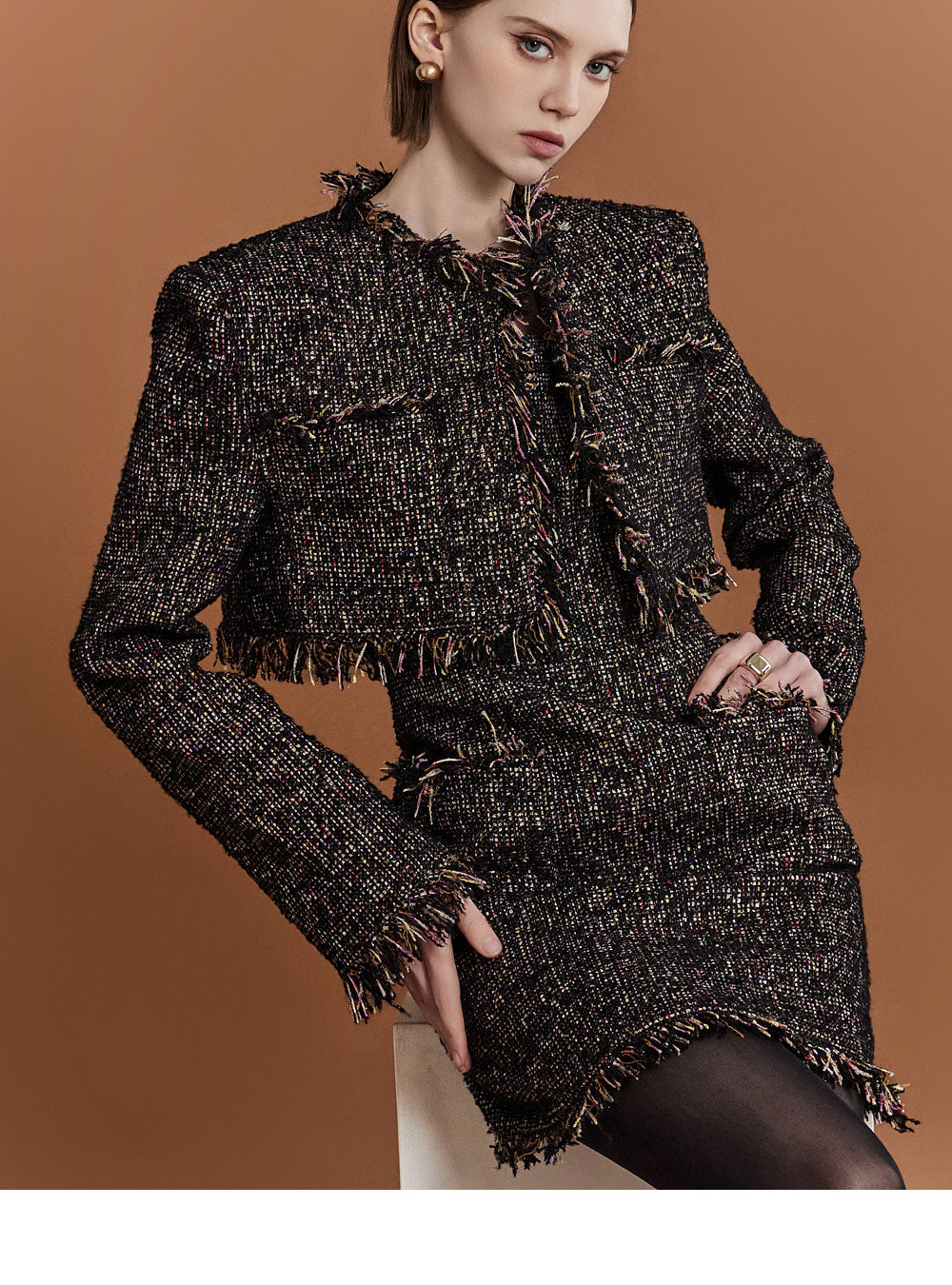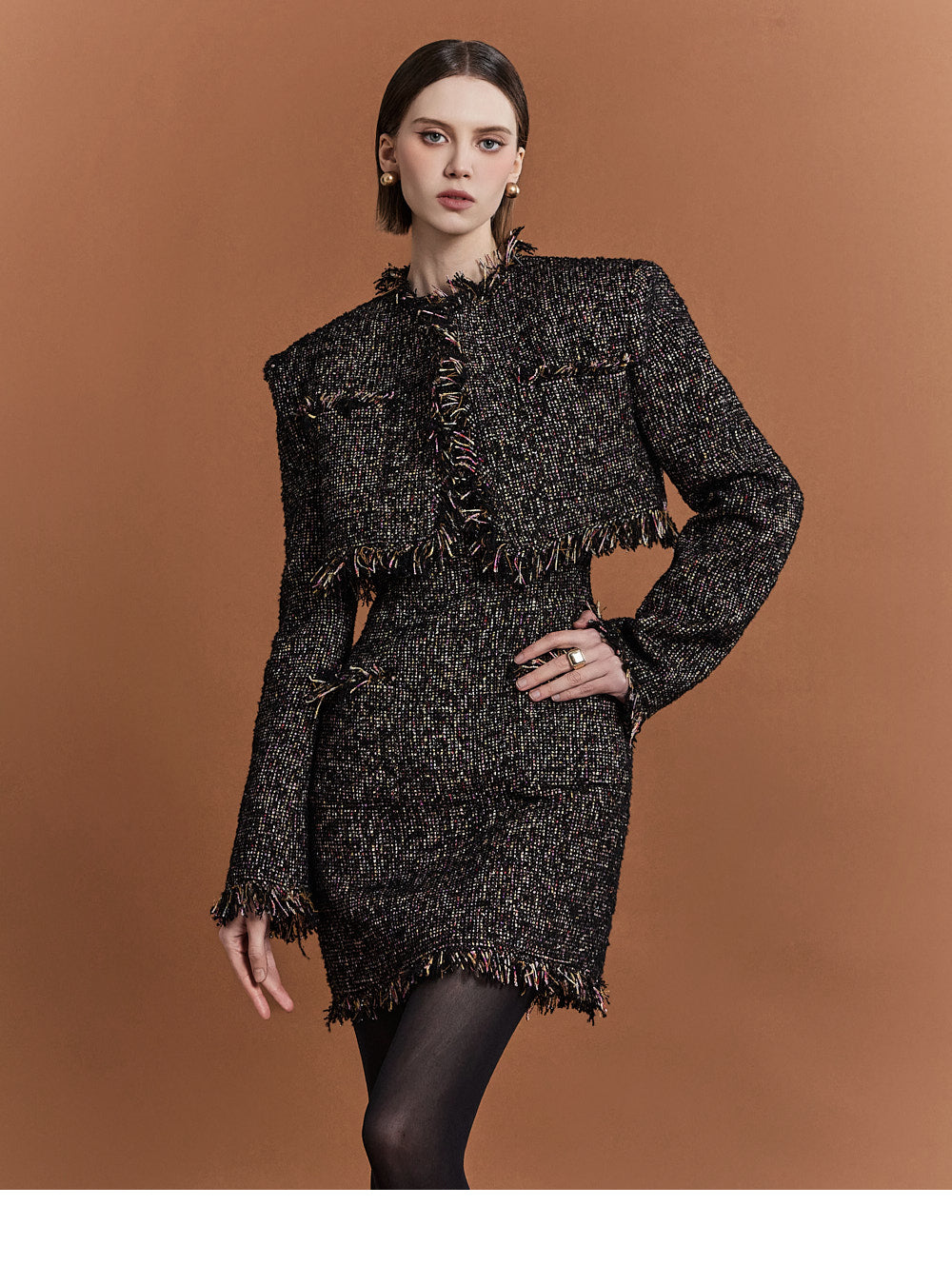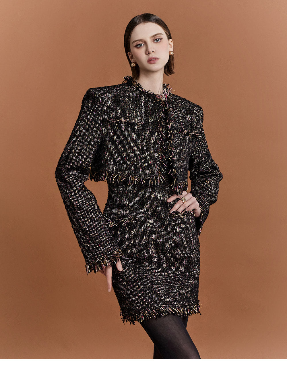 ツイード特有の魅力を際立たせ、洗練されたムードを演出します。