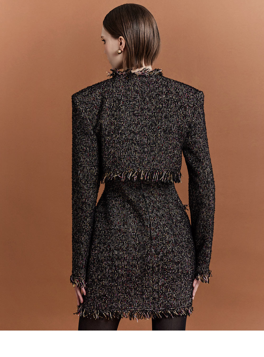 J9276 ツイードフリンジクロップパッドシングルジャケット